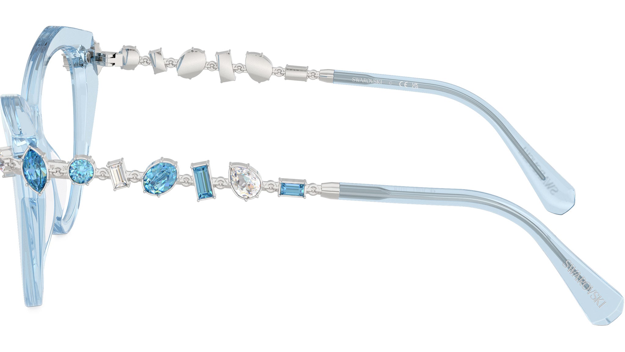 Occhiali da vista Swarovski SK2047 1078 donna, con montatura cat eye in acetato color azzurro trasparente e lenti demo. Vestibilità a ponte alto. Linea: Science of Facets. Codice modello: SK2047. Codice colore: 1078. Rivenditore autorizzato Swarovski Eyewear online. Ogni prodotto Swarovski viene consegnato con astuccio originale e accessori ed è coperto da garanzia del produttore di 12 mesi.