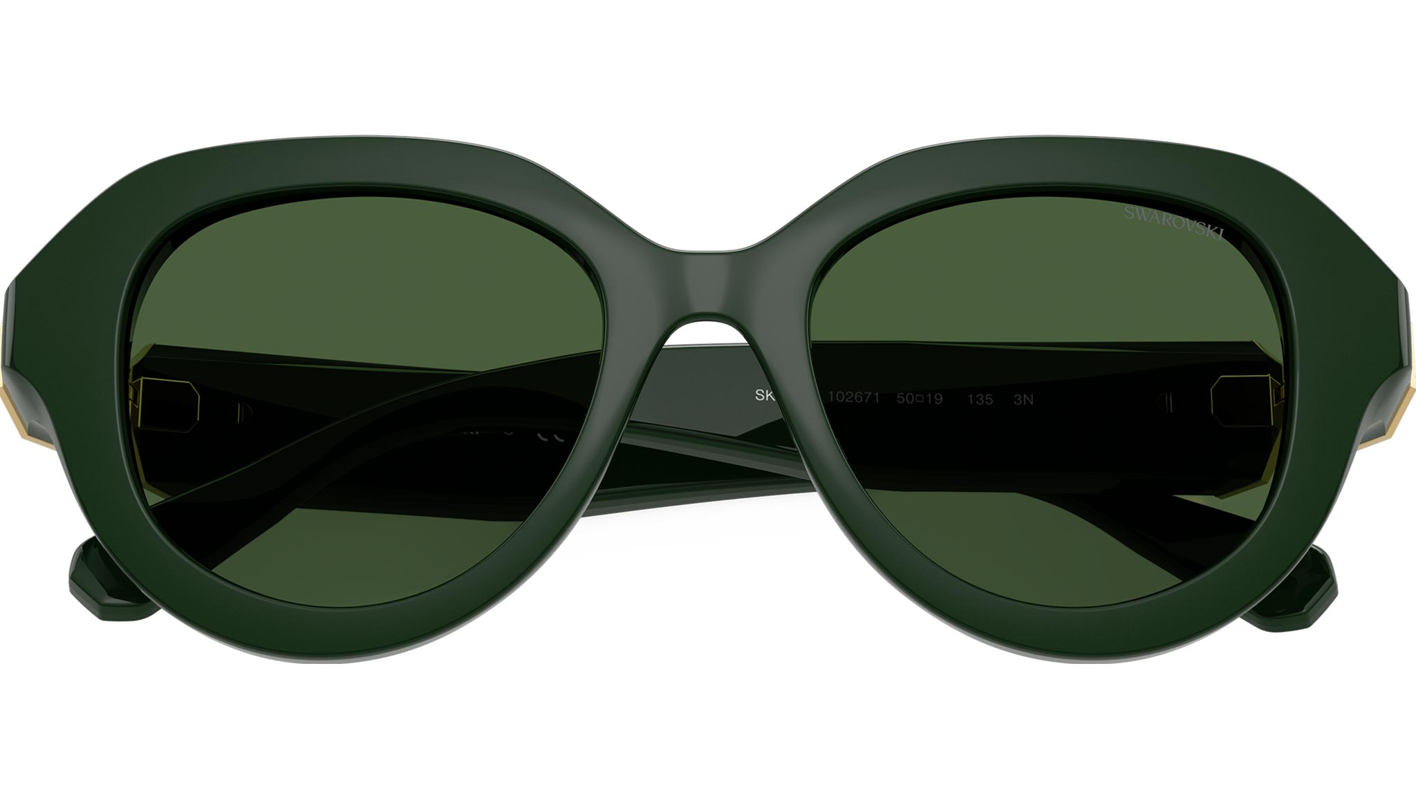 Occhiali da sole Swarovski SK6037 102671 donna, con montatura rotonda in Injected color verde solido e lenti verde scuro in poliammide. Vestibilità a ponte alto. Linea: Science of Facets. Codice modello: SK6037. Codice colore: 102671. Rivenditore autorizzato Swarovski Eyewear online. Ogni prodotto Swarovski viene consegnato con astuccio originale e accessori ed è coperto da garanzia del produttore di 12 mesi.