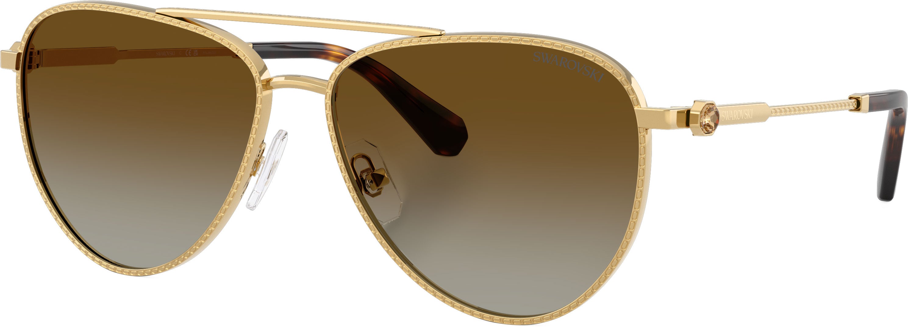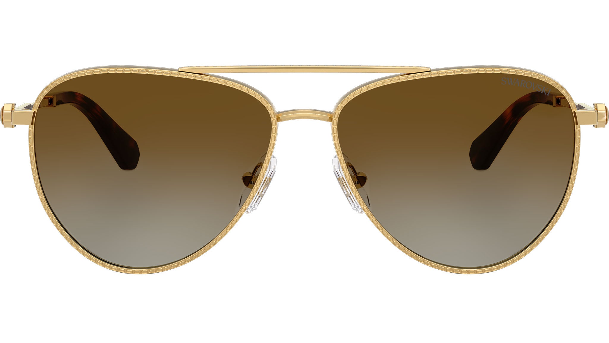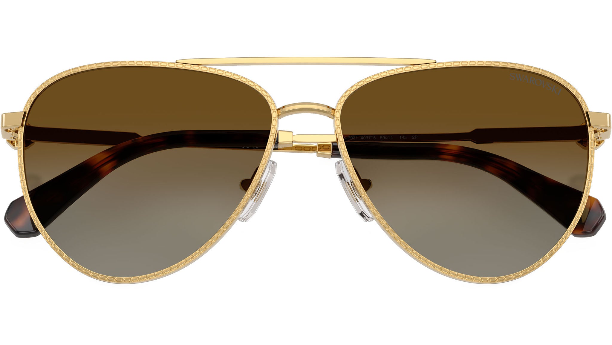 Occhiali da sole Swarovski SK7031 4037T5 donna, con montatura aviatore in metallo color oro e lenti marrone polarizzato sfumato in CR-39. Naselli regolabili. Linea: Science of Facets. Codice modello: SK7031. Codice colore: 4037T5. Rivenditore autorizzato Swarovski Eyewear online. Ogni prodotto Swarovski viene consegnato con astuccio originale e accessori ed è coperto da garanzia del produttore di 12 mesi.