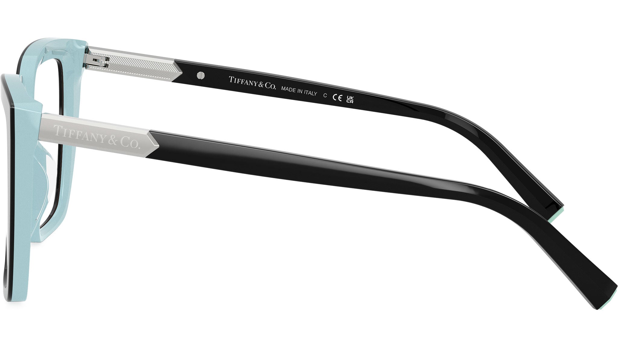 - Colore montatura nero su blu Tiffany