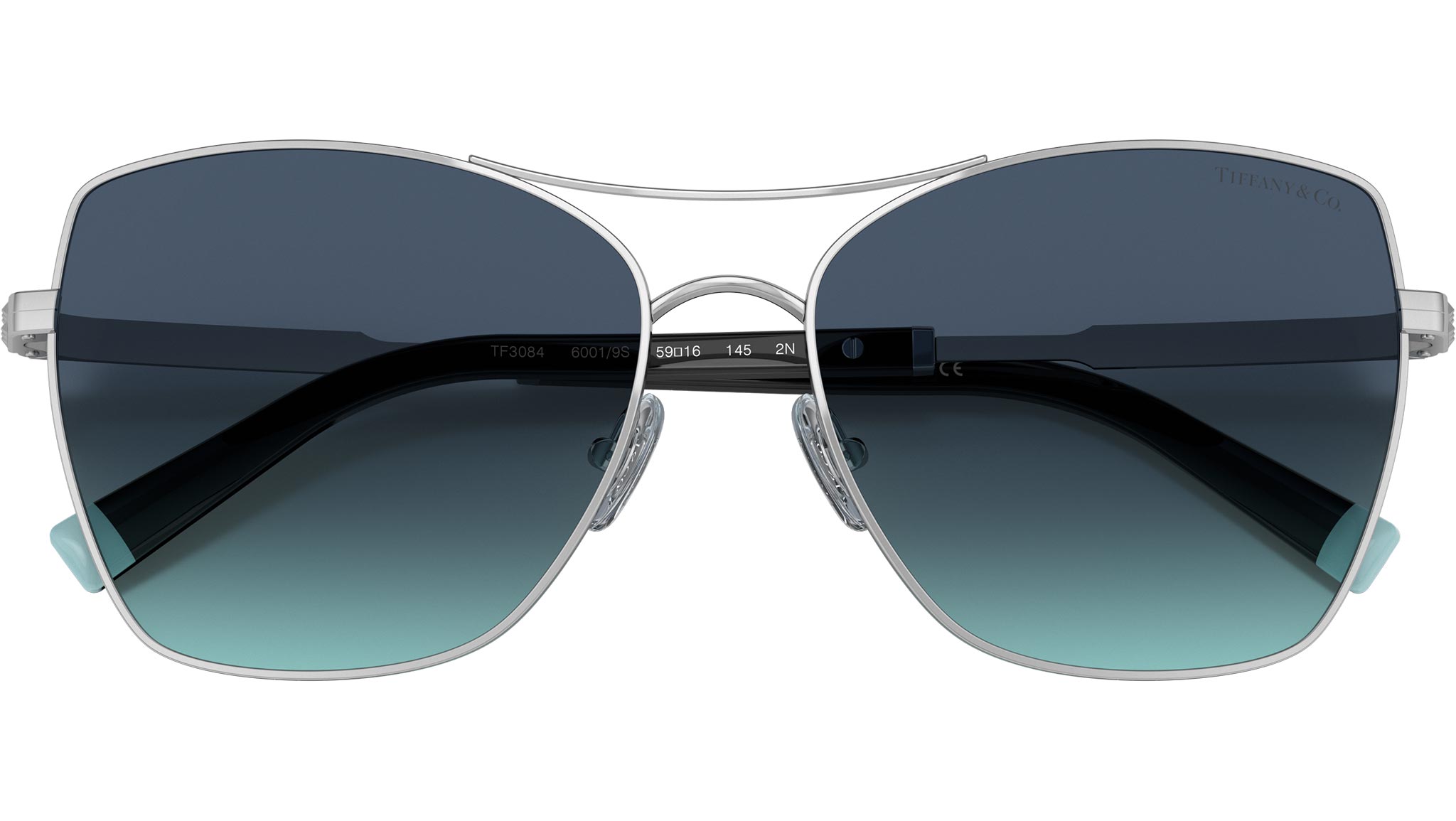 Occhiali da sole Tiffany donna modello TF3084 60019S con montatura squadrata in acciaio argento e lenti in poliammide blu azzurro sfumato base 4. Naselli regolabili. Linea: Motifs. Codice Brand: 0TF3084. Codice colore: 60019S. Rivenditore autorizzato online Tiffany Eyewear. Ogni prodotto Tiffany viene consegnato con astuccio originale e accessori ed è coperto da garanzia del produttore di 12 mesi.