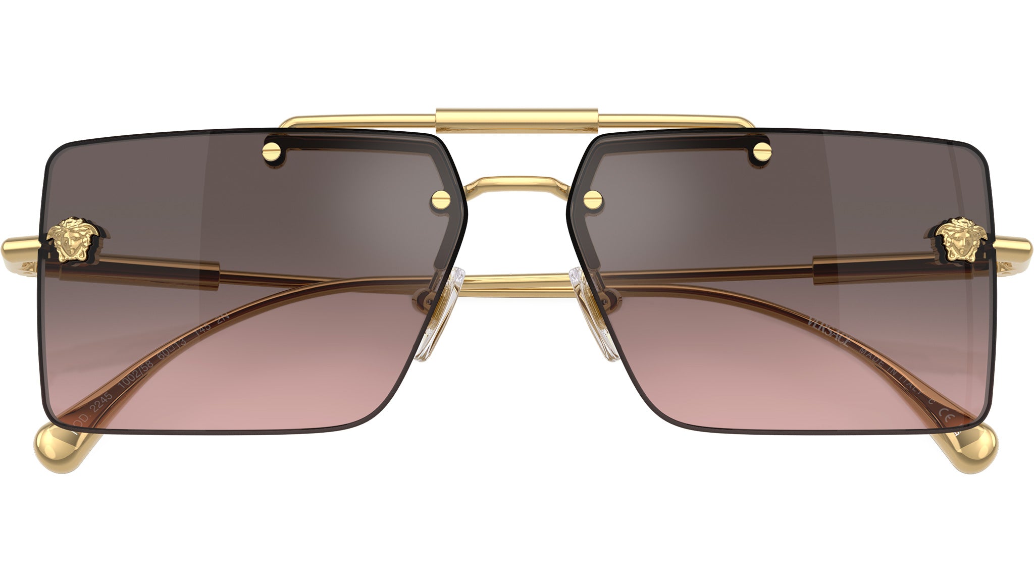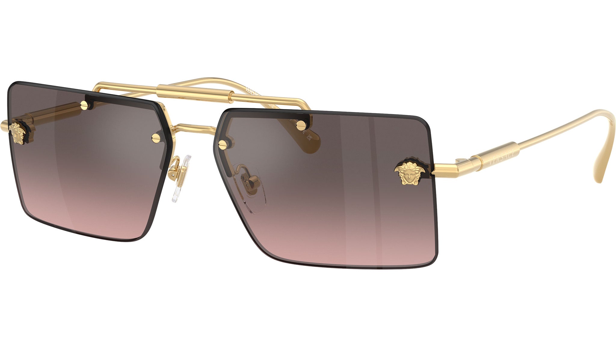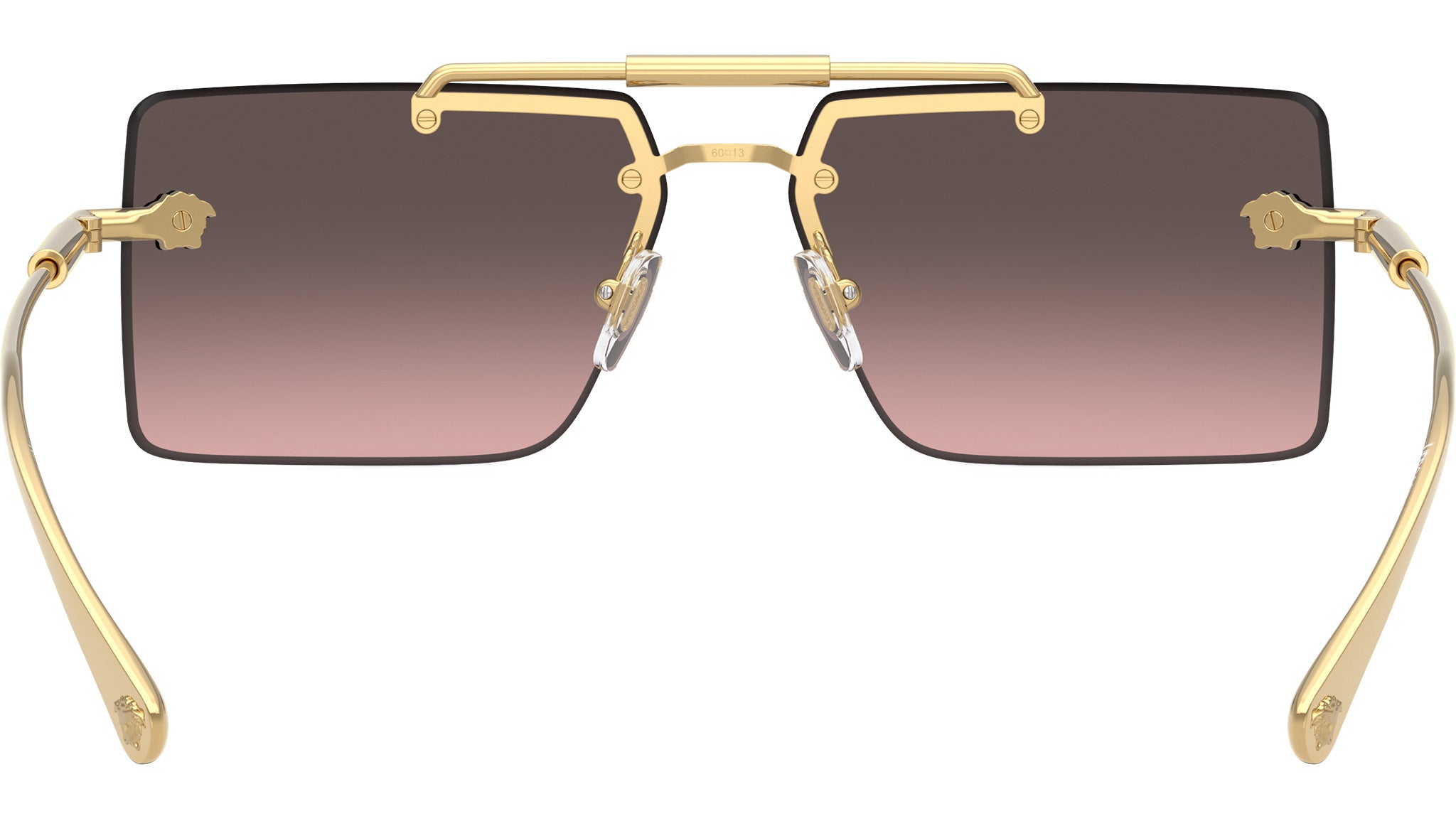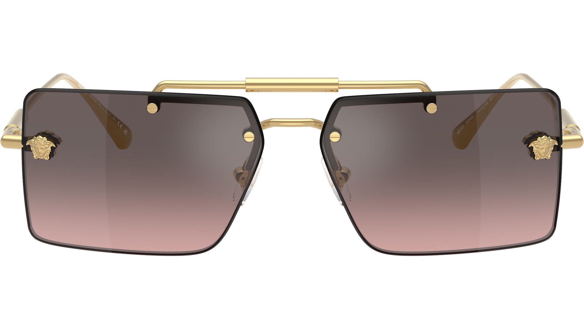 Occhiali da sole Versace donna modello VE2245 100258 con montatura rettangolare in metallo oro e lenti base 4 in bio poliammide rosa sfumato grigio flash argento. Naselli regolabili. Linea: Fashion Id. Codice Brand: 0VE2245. Codice colore: 100258. Rivenditore autorizzato online Versace Eyewear. Ogni prodotto Versace viene consegnato con astuccio originale e accessori ed è coperto da garanzia del produttore di 12 mesi.
