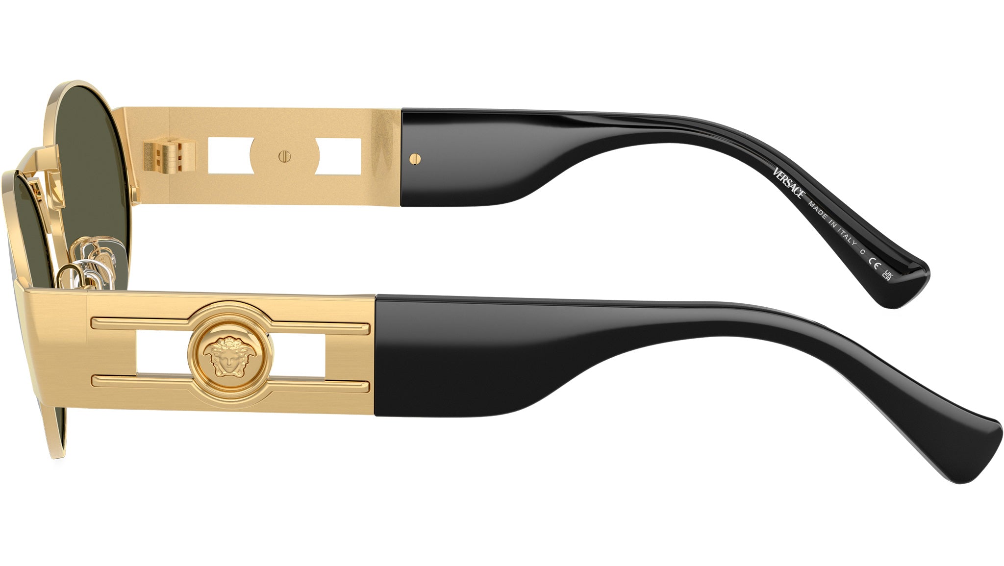 Occhiali da sole Versace uomo modello VE2264 100230 con montatura ovale in acciaio oro e lenti base 4 in policarbonato verde a specchio argento. Naselli regolabili. Linea: Iconic. Codice Brand: 0VE2264. Codice colore: 100230. Rivenditore autorizzato online Versace Eyewear. Ogni prodotto Versace viene consegnato con astuccio originale e accessori ed è coperto da garanzia del produttore di 12 mesi.