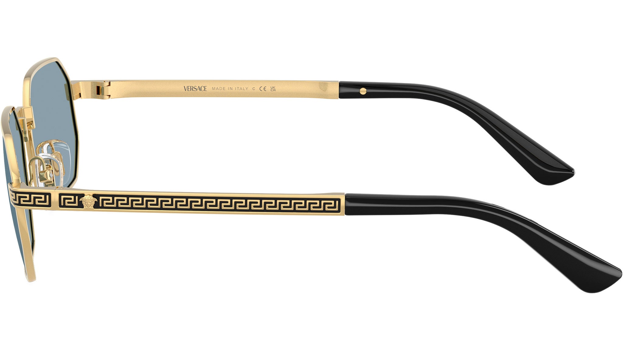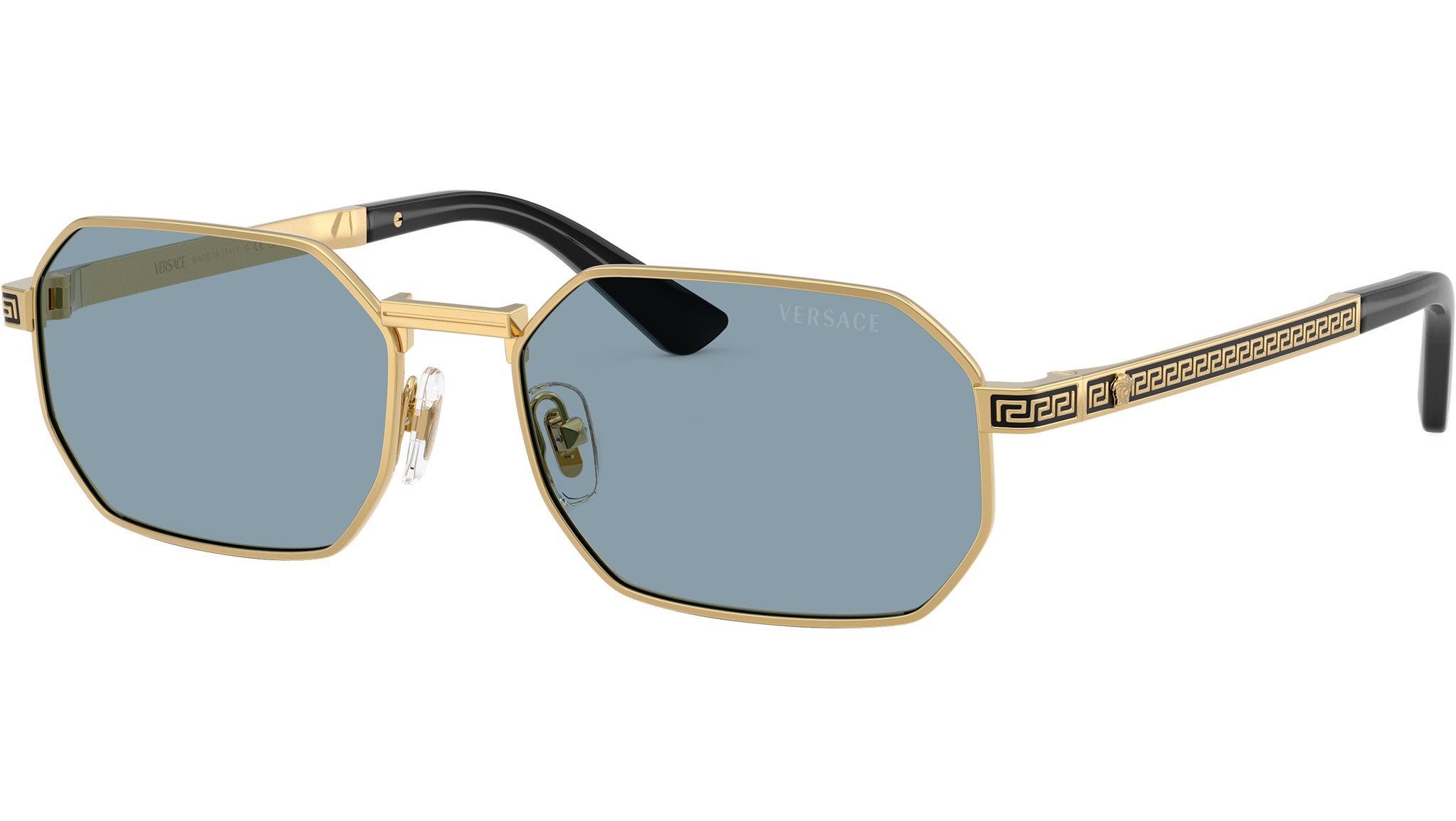 Occhiali da sole Versace uomo modello VE2297 100280 con montatura rettangolare in metallo oro e lenti base 4 in policarbonato azzurro. Naselli regolabili. Linea: Daily Heritage. Codice Brand: 0VE2297. Codice colore: 100280. Rivenditore autorizzato online Versace Eyewear. Ogni prodotto Versace viene consegnato con astuccio originale e accessori ed è coperto da garanzia del produttore di 12 mesi.