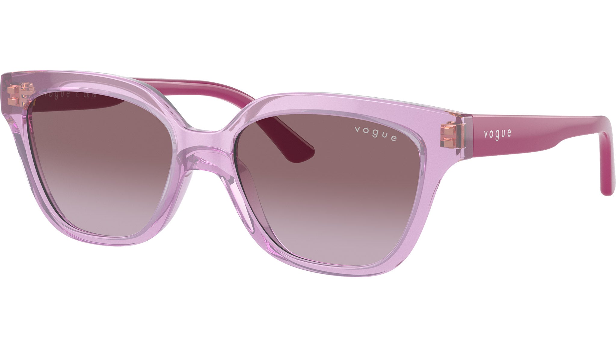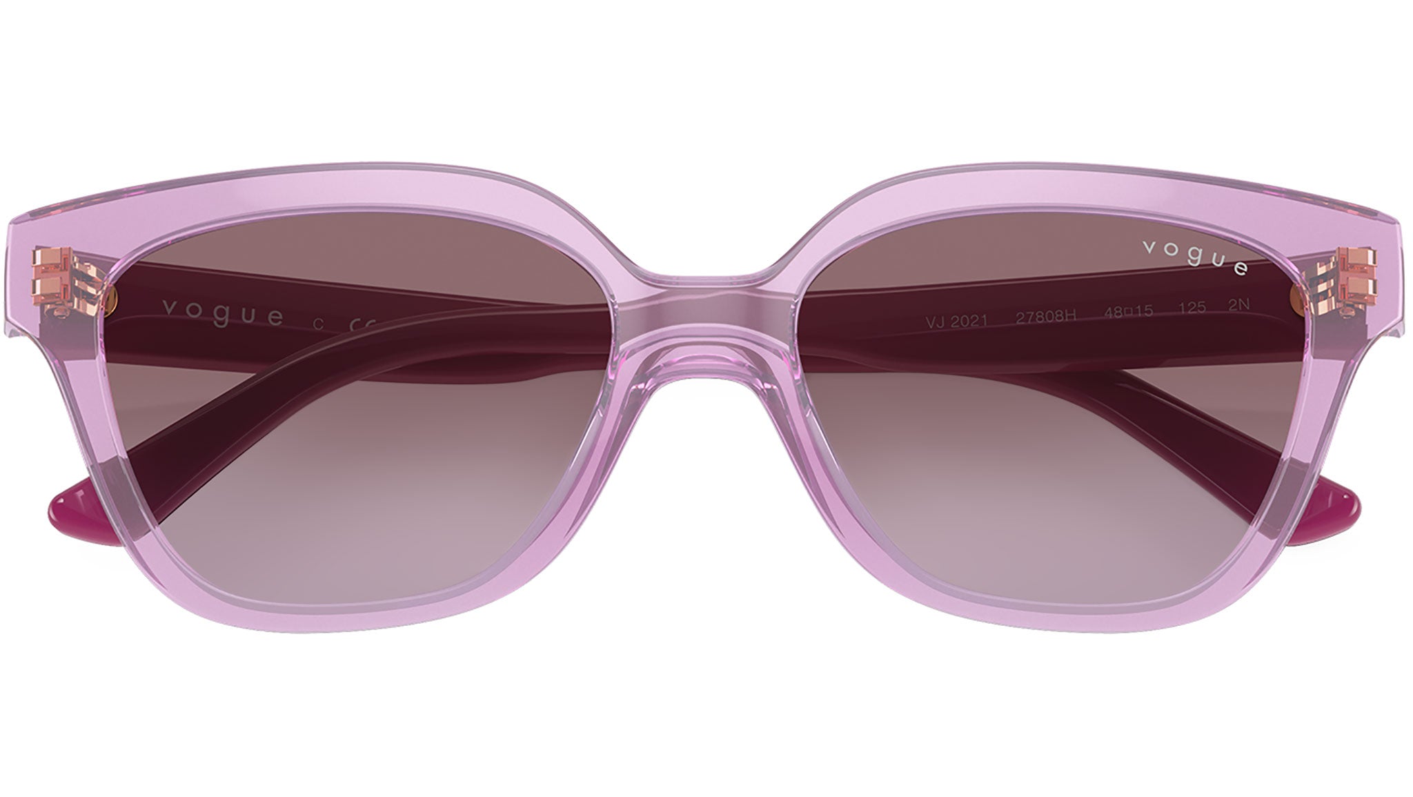 Occhiali da sole Vogue bambina modello VJ2021 27808H con montatura geometrica in nylon pink trasparente e lenti base 4 in bio poliammide sfumato viola. Vestibilità a ponte alto. Linea: Kids. Codice Brand: 0VJ2021. Codice colore: 27808H. Rivenditore autorizzato online Vogue Kids. Ogni prodotto Vogue viene consegnato con astuccio originale e accessori ed è coperto da garanzia del produttore di 12 mesi.