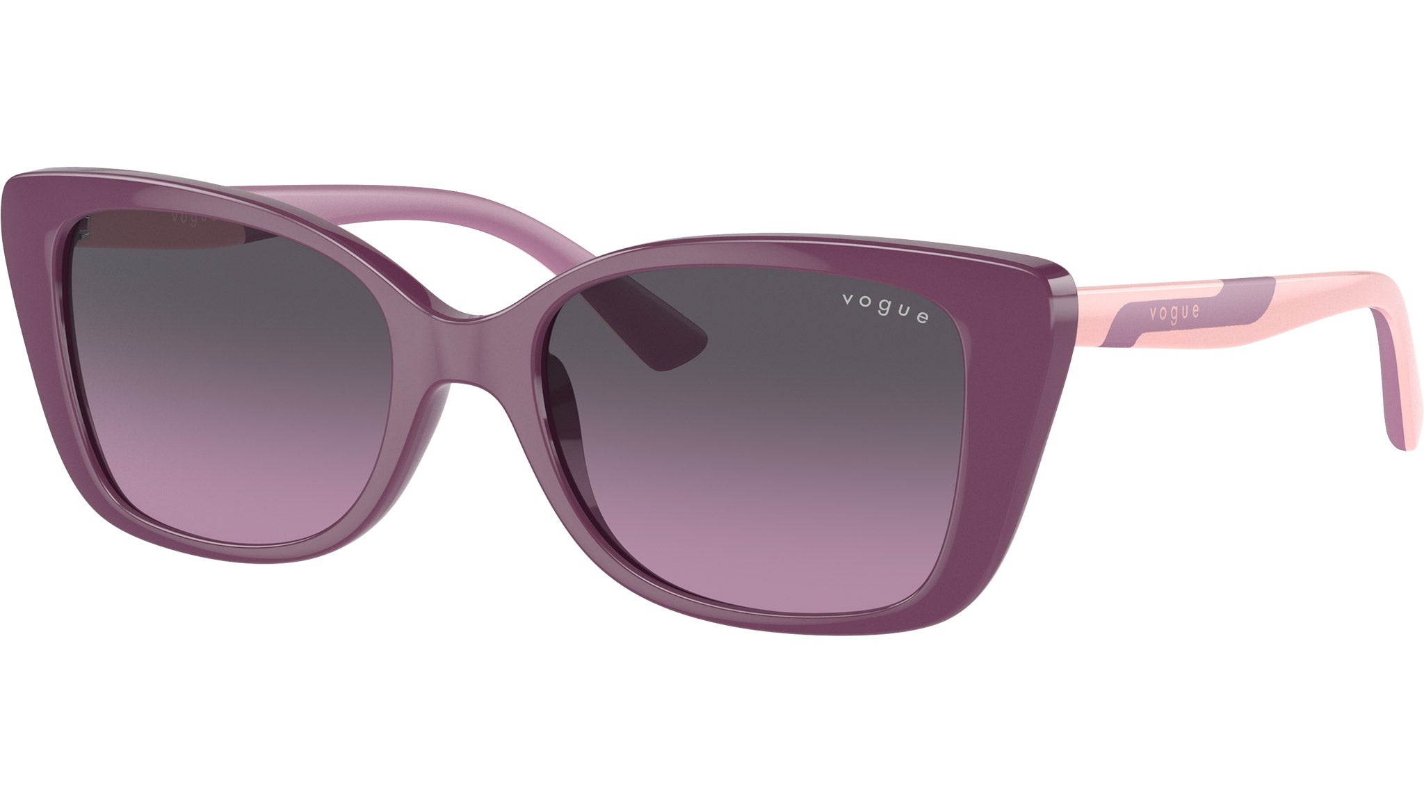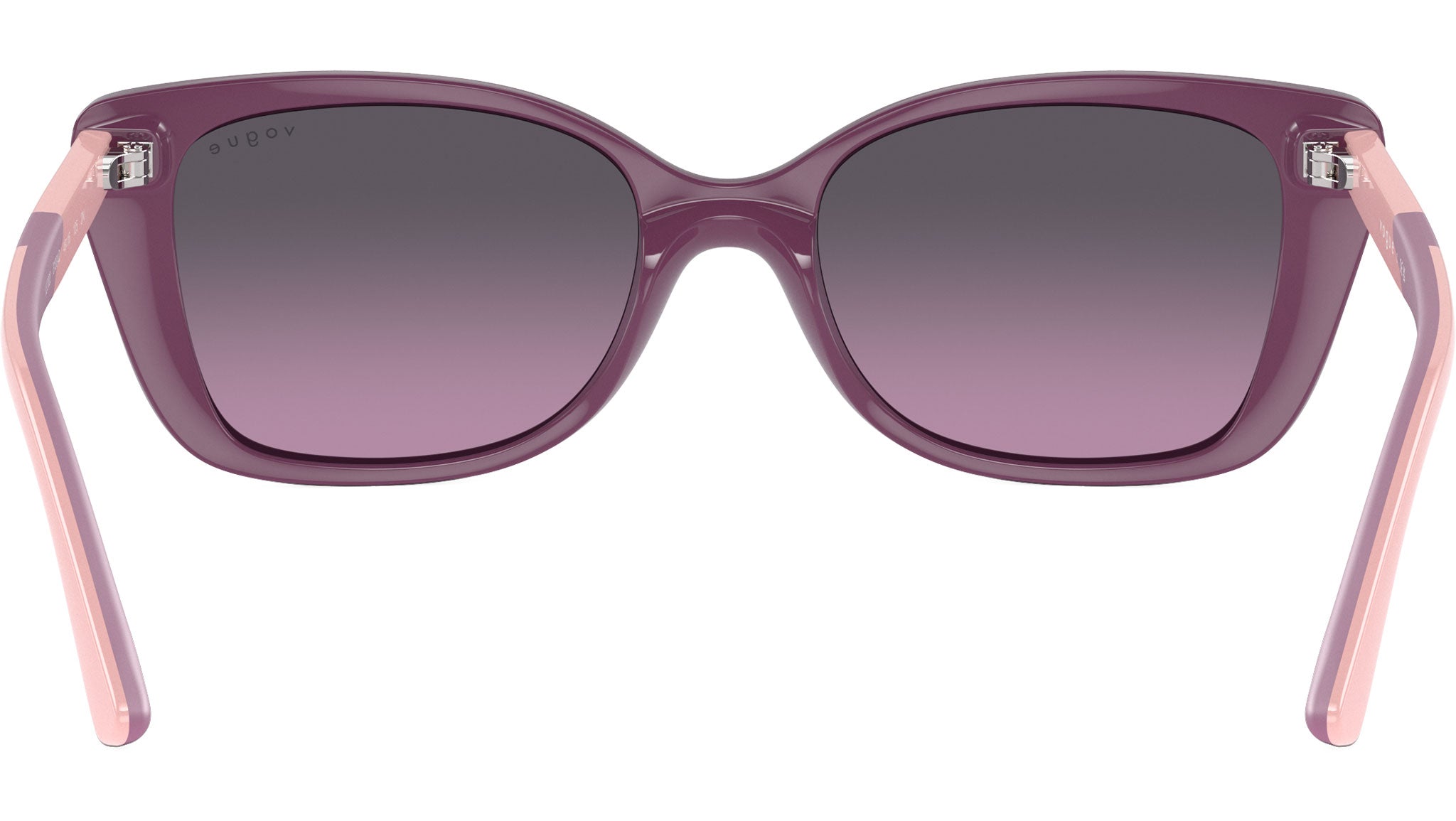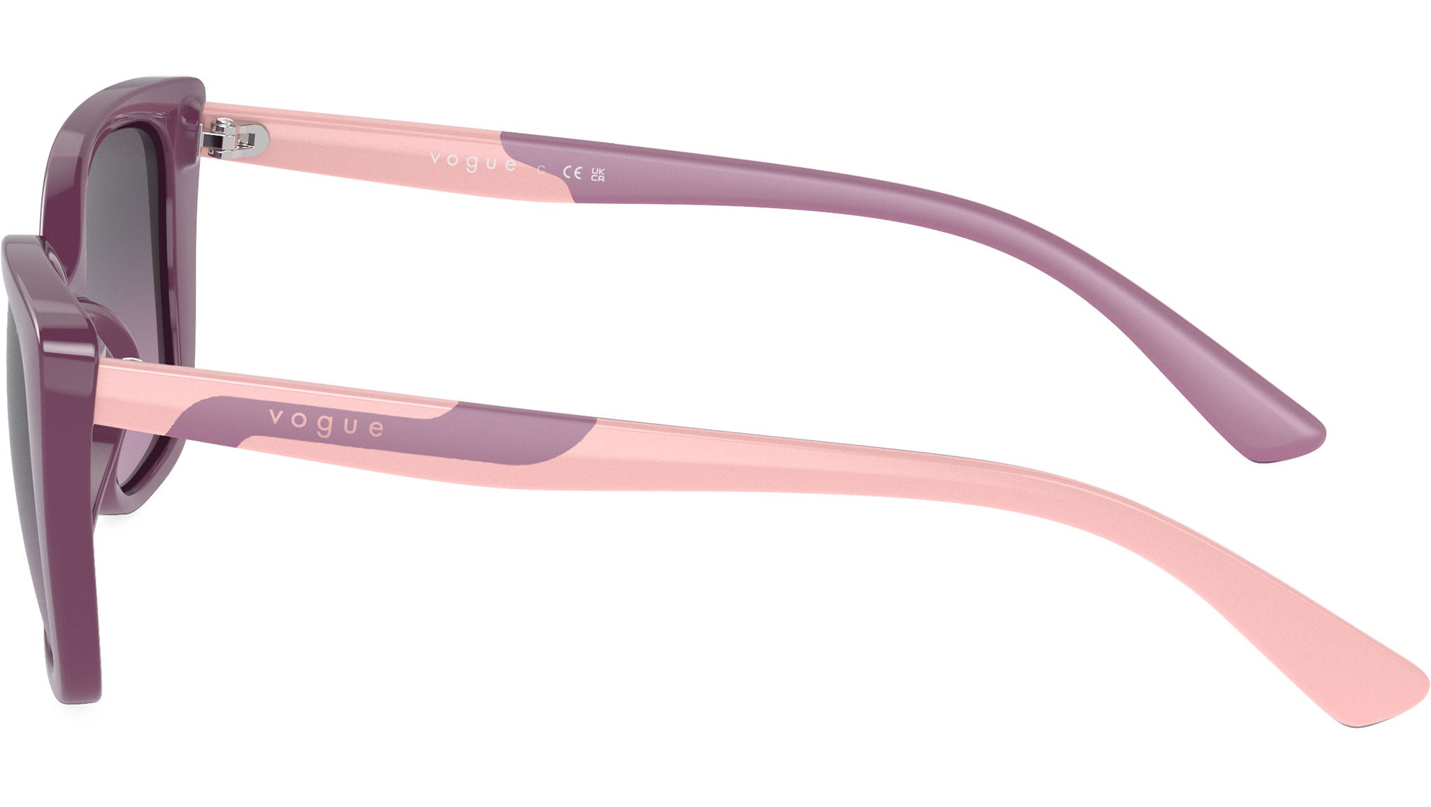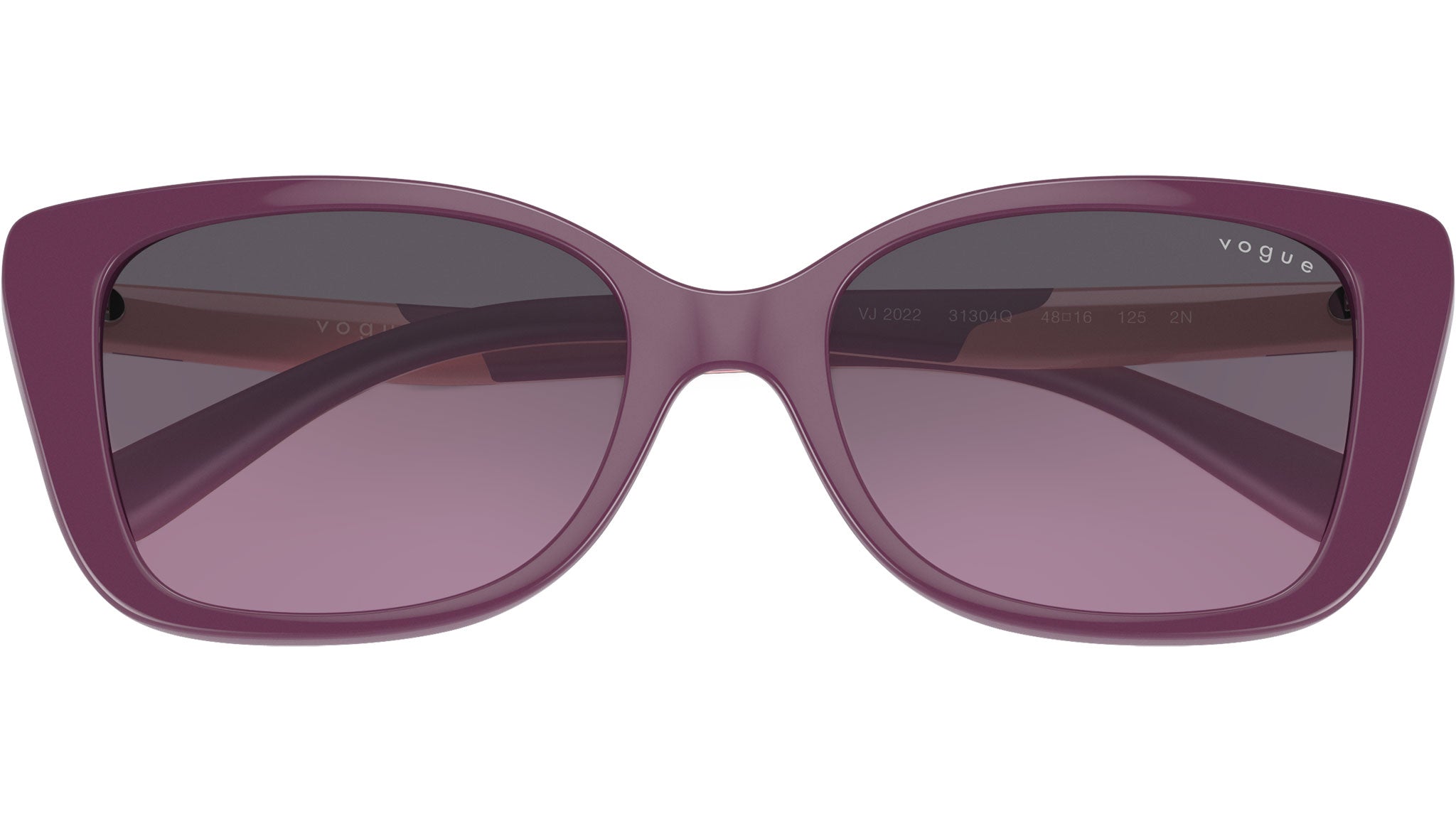 Occhiali da sole Vogue bambina modello VJ2022 31304Q con montatura a farfalla in nylon viola solido e lenti base 6 in bio poliammide viola chiaro sfumato grigio. Vestibilità a ponte alto. Linea: Kids. Codice Brand: 0VJ2022. Codice colore: 31304Q. Rivenditore autorizzato online Vogue Kids. Ogni prodotto Vogue viene consegnato con astuccio originale e accessori ed è coperto da garanzia del produttore di 12 mesi.