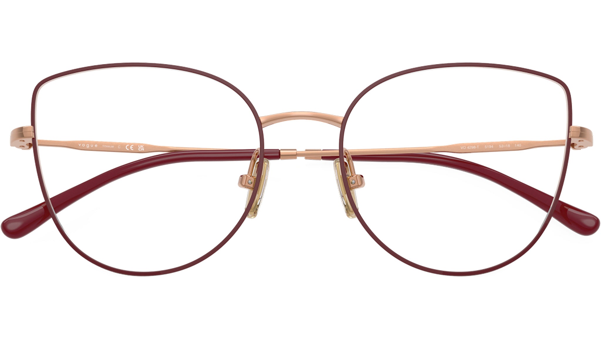 Montatura per occhiali da vista Vogue donna modello VO4298T 5194 con montatura cat eye in titanio borgogna e lenti demo base 4. Naselli regolabili. Linea: In Vogue. Codice Brand: 0VO4298T. Codice colore: 5194. Rivenditore autorizzato online Vogue Eyewear. Ogni prodotto Vogue viene consegnato con astuccio originale e accessori ed è coperto da garanzia del produttore di 12 mesi.