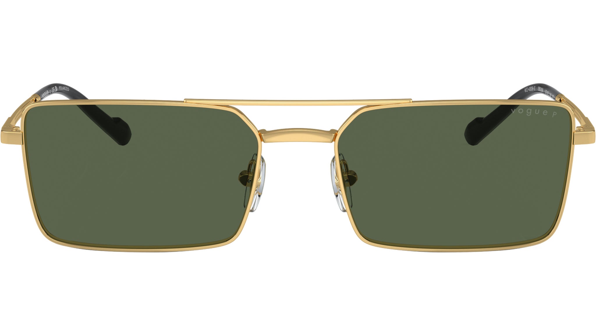 Occhiali da sole Vogue uomo modello VO4309S 280/9A con montatura rettangolare in metallo oro e lenti base 4 in policarbonato verde scuro polarizzato. Naselli regolabili. Linea: Man. Codice Brand: 0VO4309S. Codice colore: 280/9A. Rivenditore autorizzato online Vogue Eyewear. Ogni prodotto Vogue viene consegnato con astuccio originale e accessori ed è coperto da garanzia del produttore di 12 mesi.