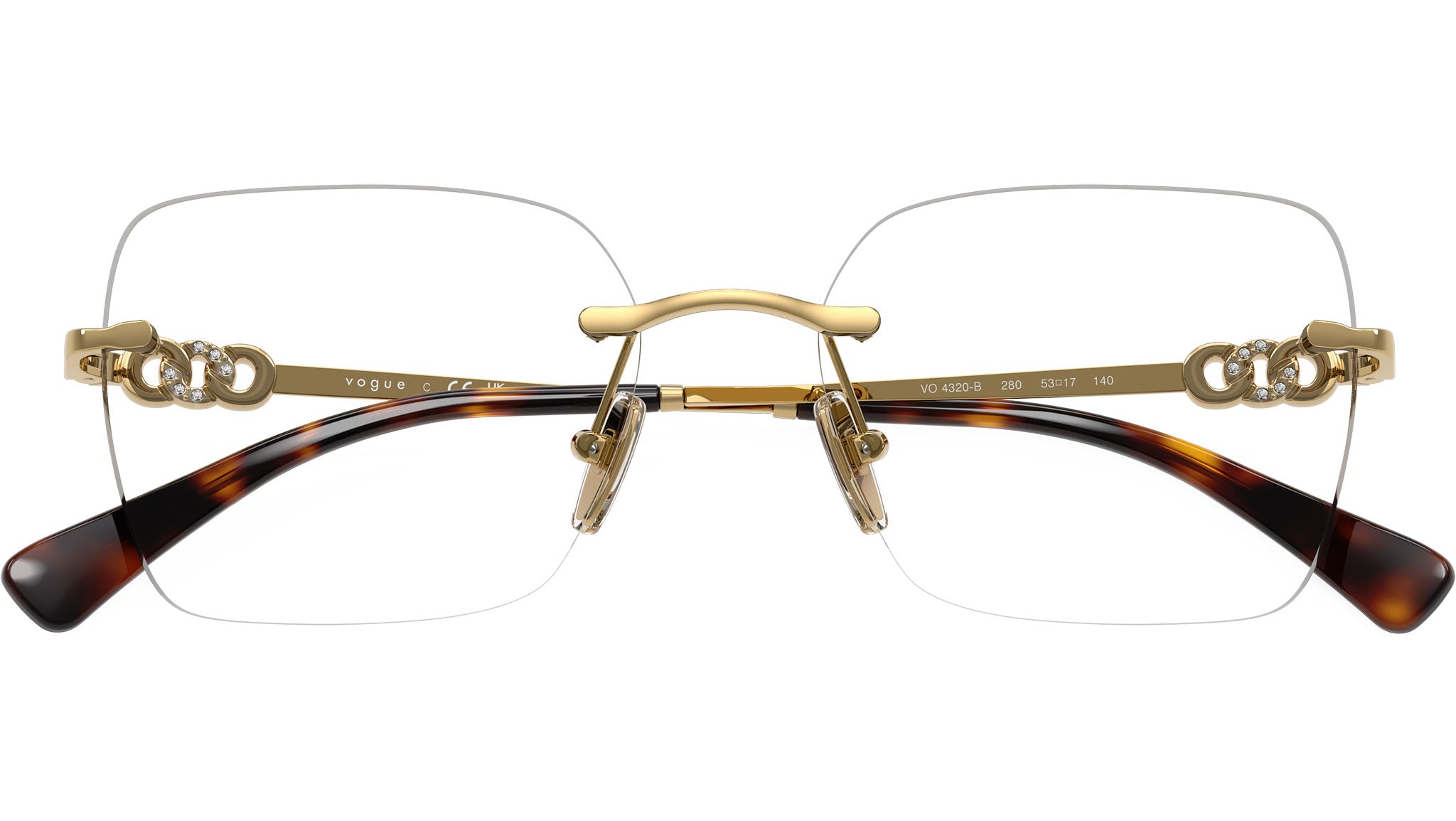 Montatura per occhiali da vista Vogue donna modello VO4320B 280 con montatura squadrata in metallo oro e lenti demo base 4. Naselli regolabili. Linea: Evergreen. Codice Brand: 0VO4320B. Codice colore: 280. Rivenditore autorizzato online Vogue Eyewear. Ogni prodotto Vogue viene consegnato con astuccio originale e accessori ed è coperto da garanzia del produttore di 12 mesi.