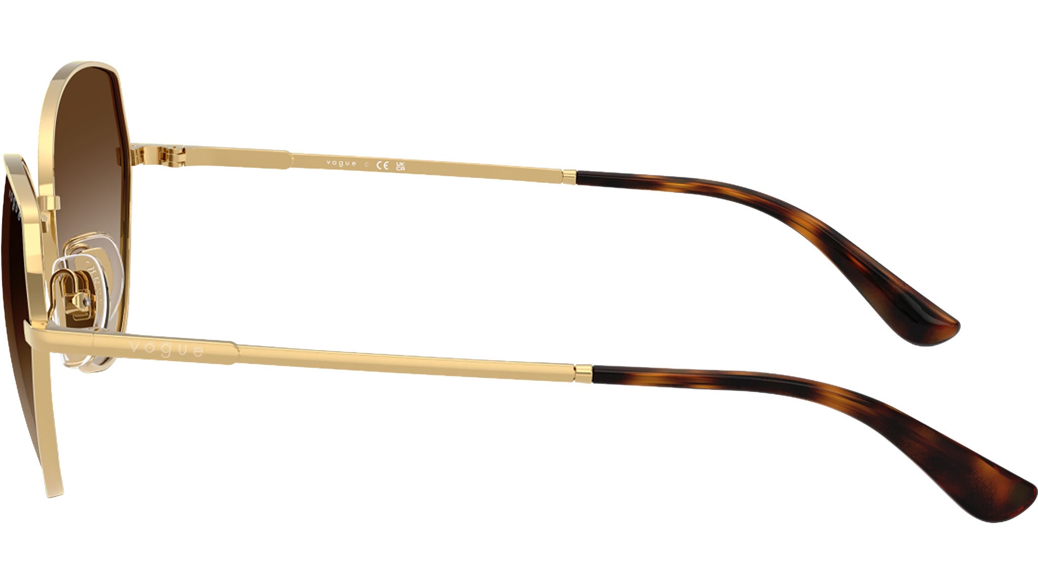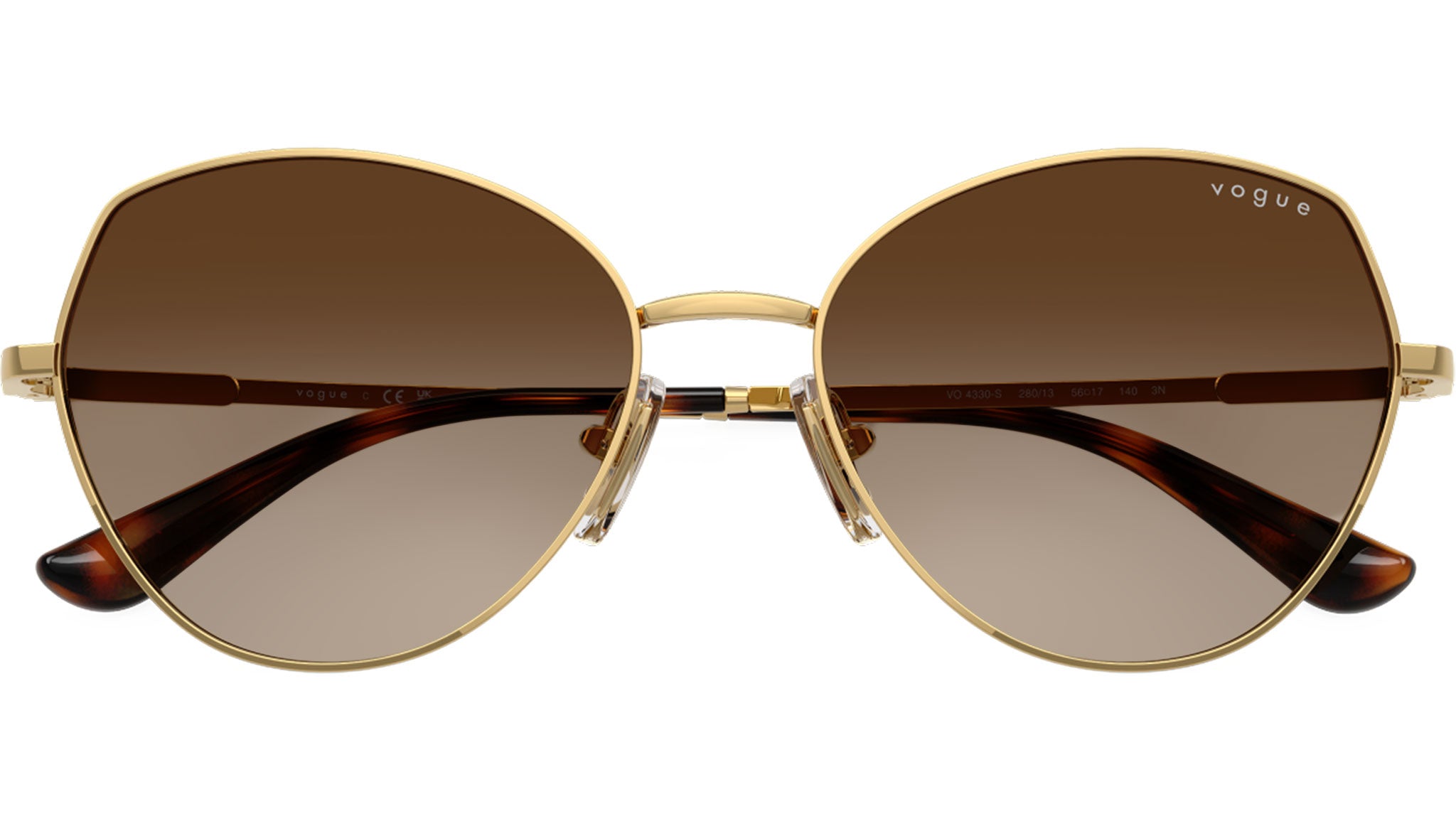 Occhiali da sole Vogue donna modello VO4330S 280/13 con montatura geometrica in metallo oro e lenti base 6 in policarbonato marrone sfumato. Naselli regolabili. Linea: In Vogue. Codice Brand: 0VO4330S. Codice colore: 280/13. Rivenditore autorizzato online Vogue Eyewear. Ogni prodotto Vogue viene consegnato con astuccio originale e accessori ed è coperto da garanzia del produttore di 12 mesi.
