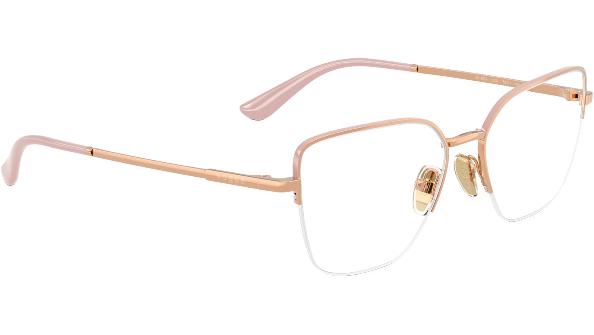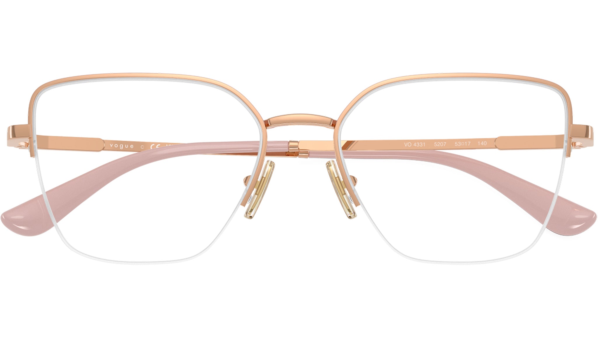 Montatura per occhiali da vista Vogue donna modello VO4331 5207 con montatura a farfalla in metallo oro rosa e lenti demo base 4. Naselli regolabili. Linea: In Vogue. Codice Brand: 0VO4331. Codice colore: 5207. Rivenditore autorizzato online Vogue Eyewear. Ogni prodotto Vogue viene consegnato con astuccio originale e accessori ed è coperto da garanzia del produttore di 12 mesi.
