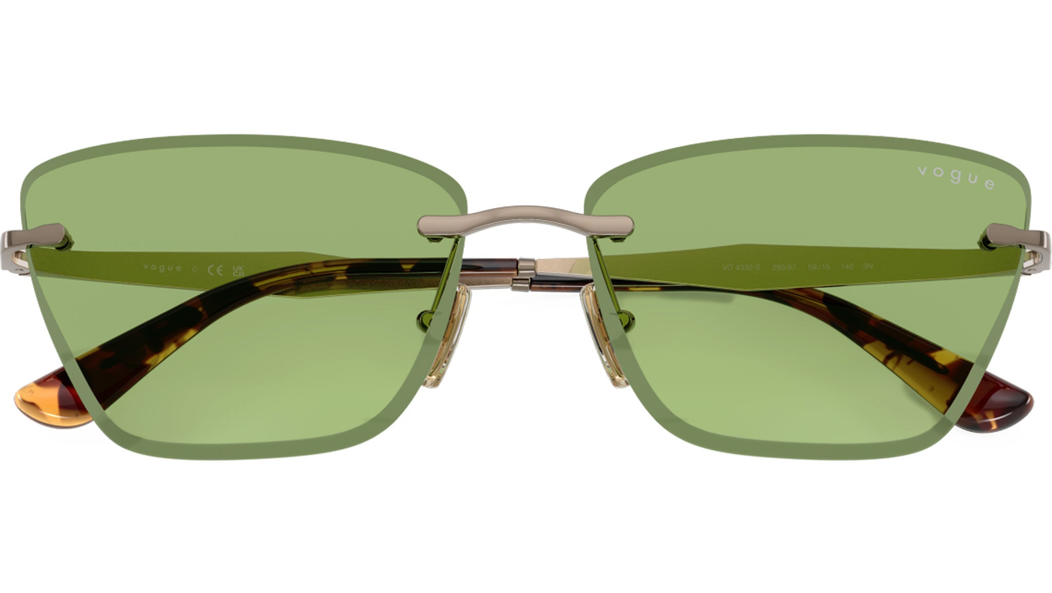 Occhiali da sole Vogue donna modello VO4332S 5138/2 con montatura cat eye in metallo marrone chiaro e lenti base 4 in bio poliammide verde. Naselli regolabili. Linea: In Vogue. Codice Brand: 0VO4332S. Codice colore: 5138/2. Rivenditore autorizzato online Vogue Eyewear. Ogni prodotto Vogue viene consegnato con astuccio originale e accessori ed è coperto da garanzia del produttore di 12 mesi.