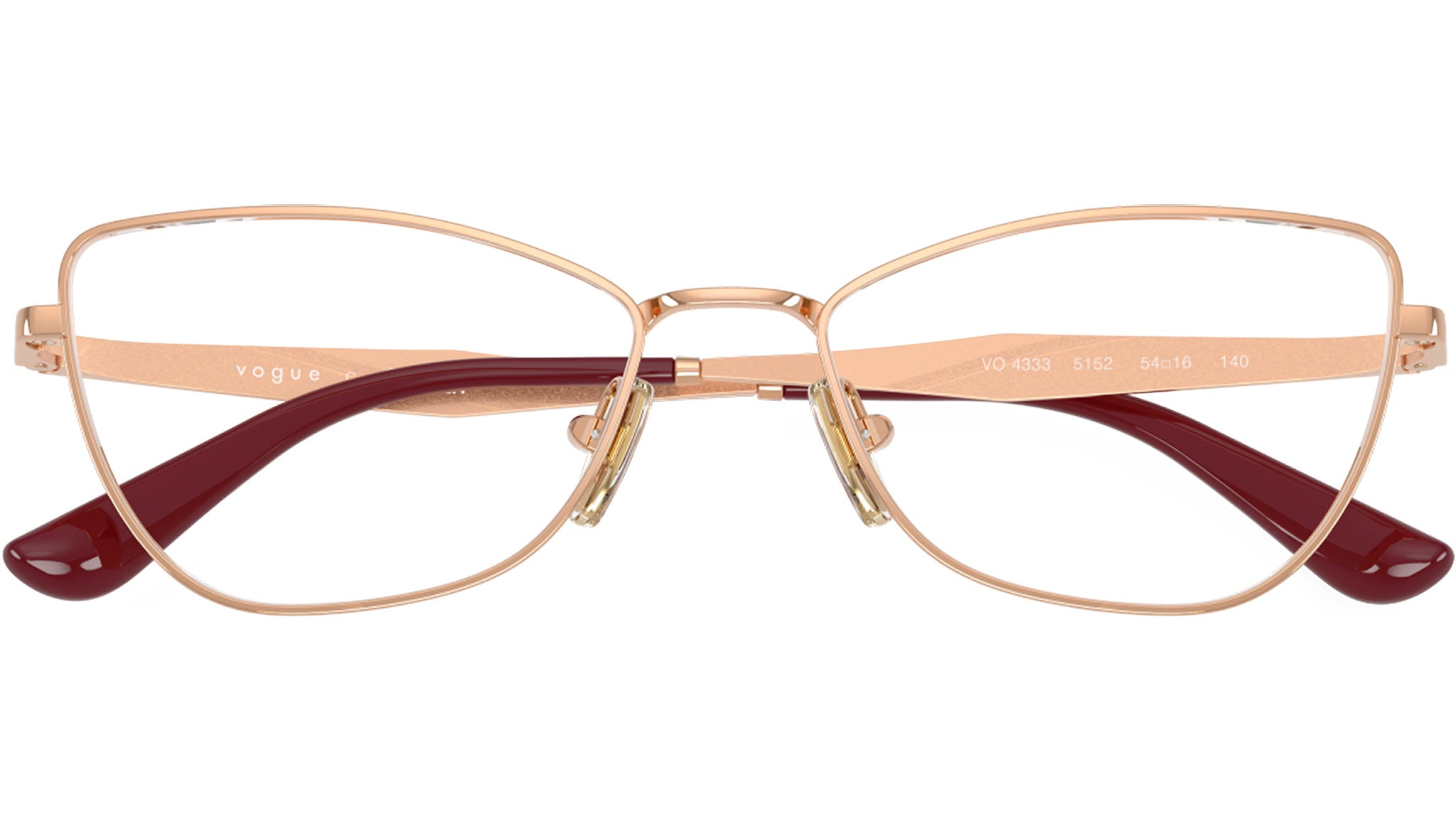 Montatura per occhiali da vista Vogue donna modello VO4333 5152 con montatura a farfalla in metallo oro rosa e lenti demo base 4. Naselli regolabili. Linea: In Vogue. Codice Brand: 0VO4333. Codice colore: 5152. Rivenditore autorizzato online Vogue Eyewear. Ogni prodotto Vogue viene consegnato con astuccio originale e accessori ed è coperto da garanzia del produttore di 12 mesi.