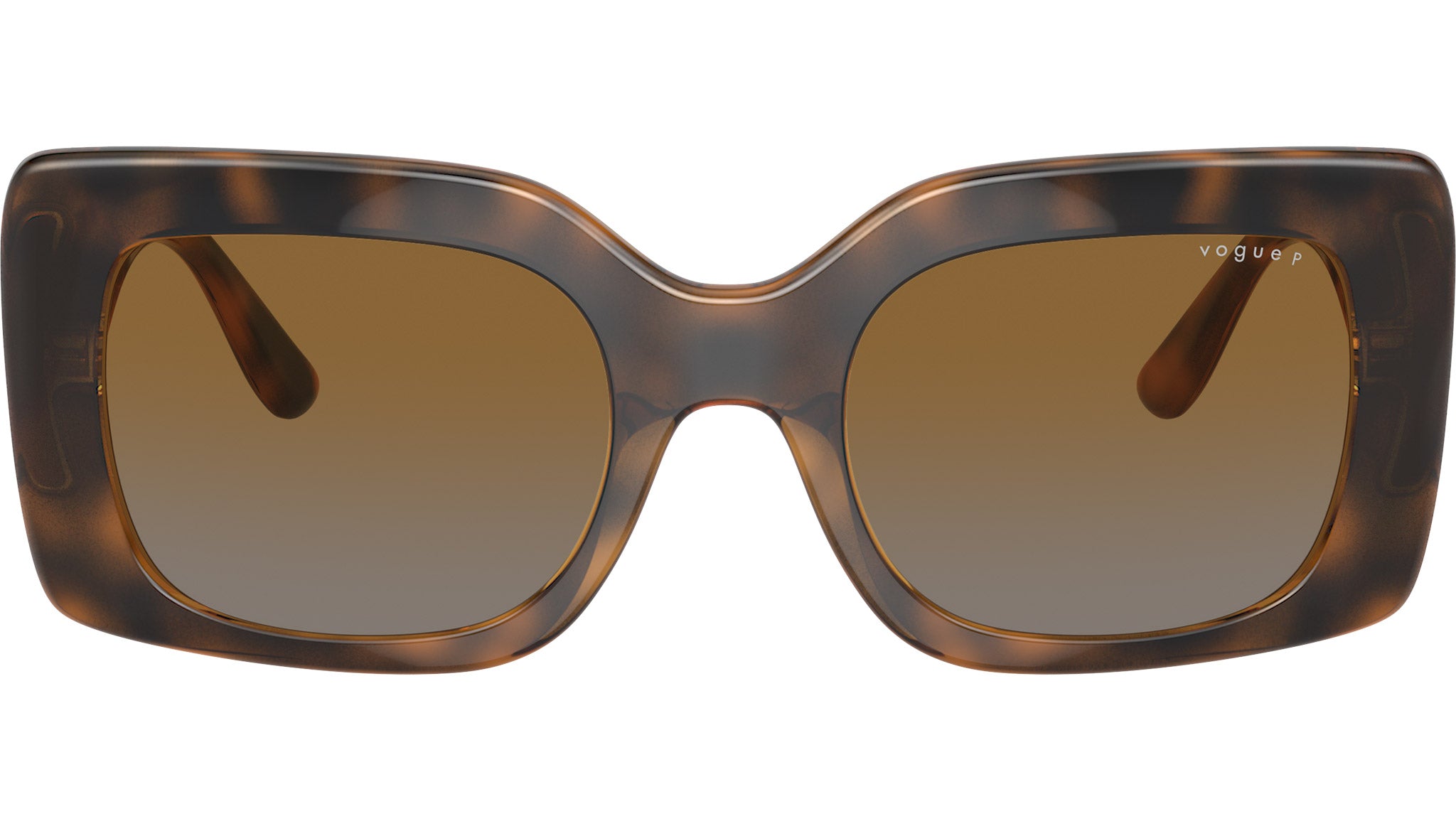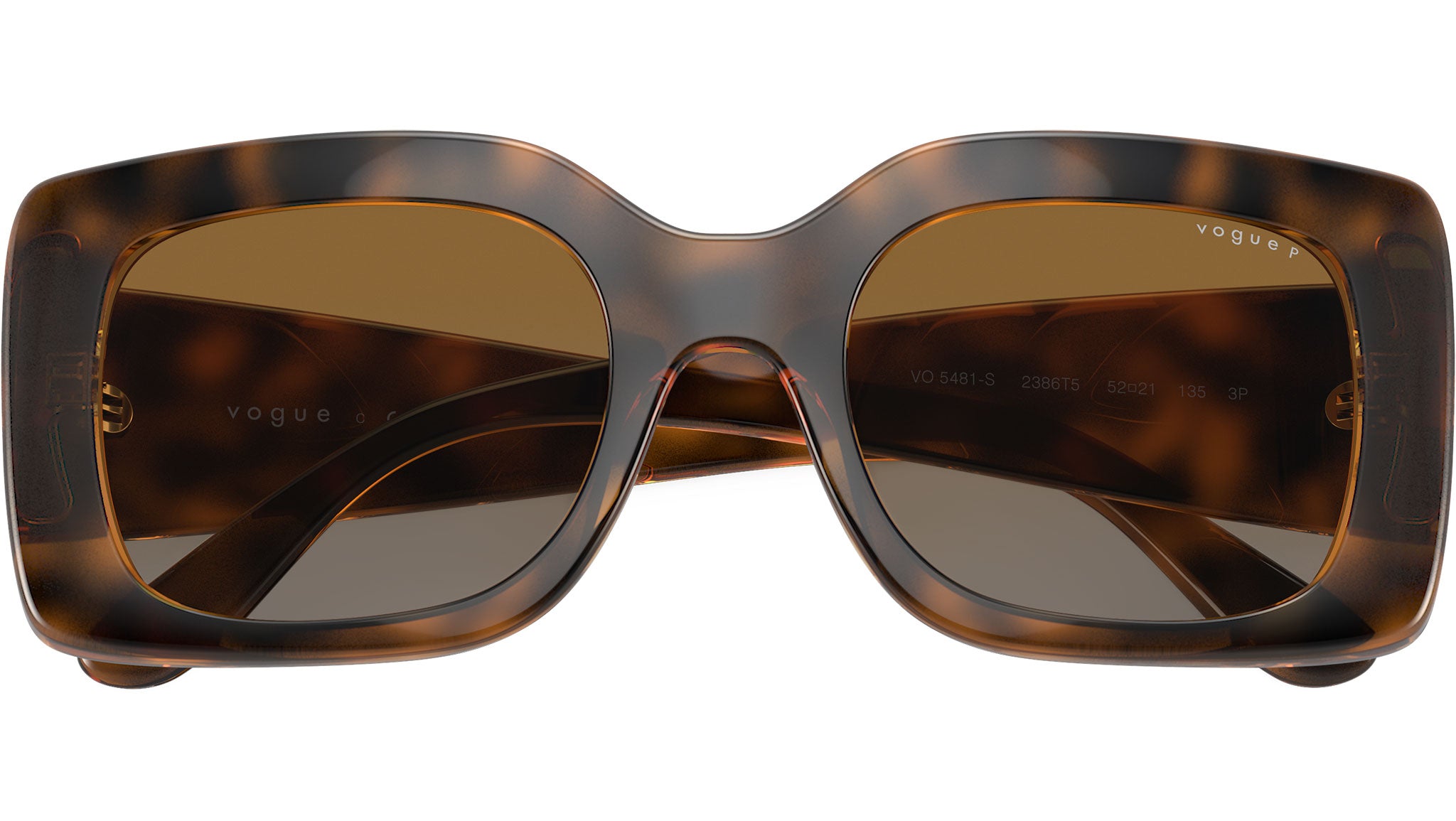 Occhiali da sole Vogue donna modello VO5481S 2386T5 con montatura rettangolare in iniettato avana e lenti base 6 in policarbonato grigio sfumato marrone polarizzato. Vestibilità a ponte alto. Linea: In Vogue. Codice Brand: 0VO5481S. Codice colore: 2386T5. Rivenditore autorizzato online Vogue Eyewear. Ogni prodotto Vogue viene consegnato con astuccio originale e accessori ed è coperto da garanzia del produttore di 12 mesi.