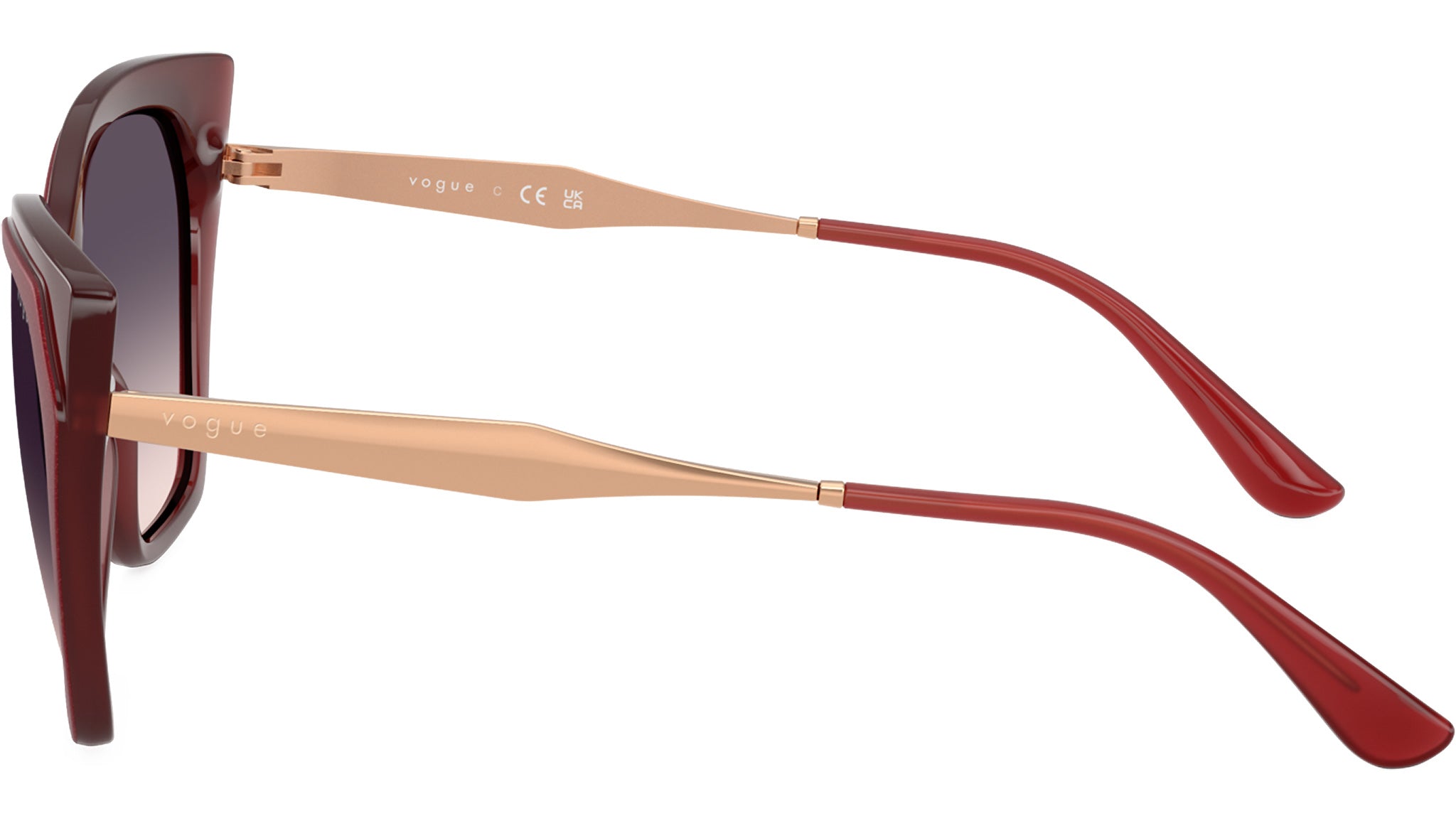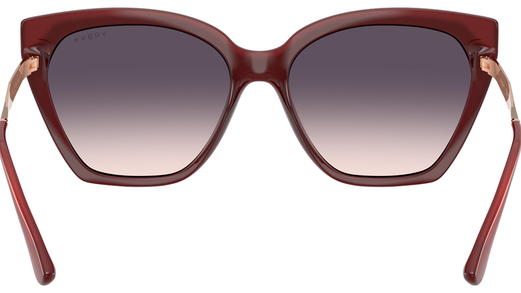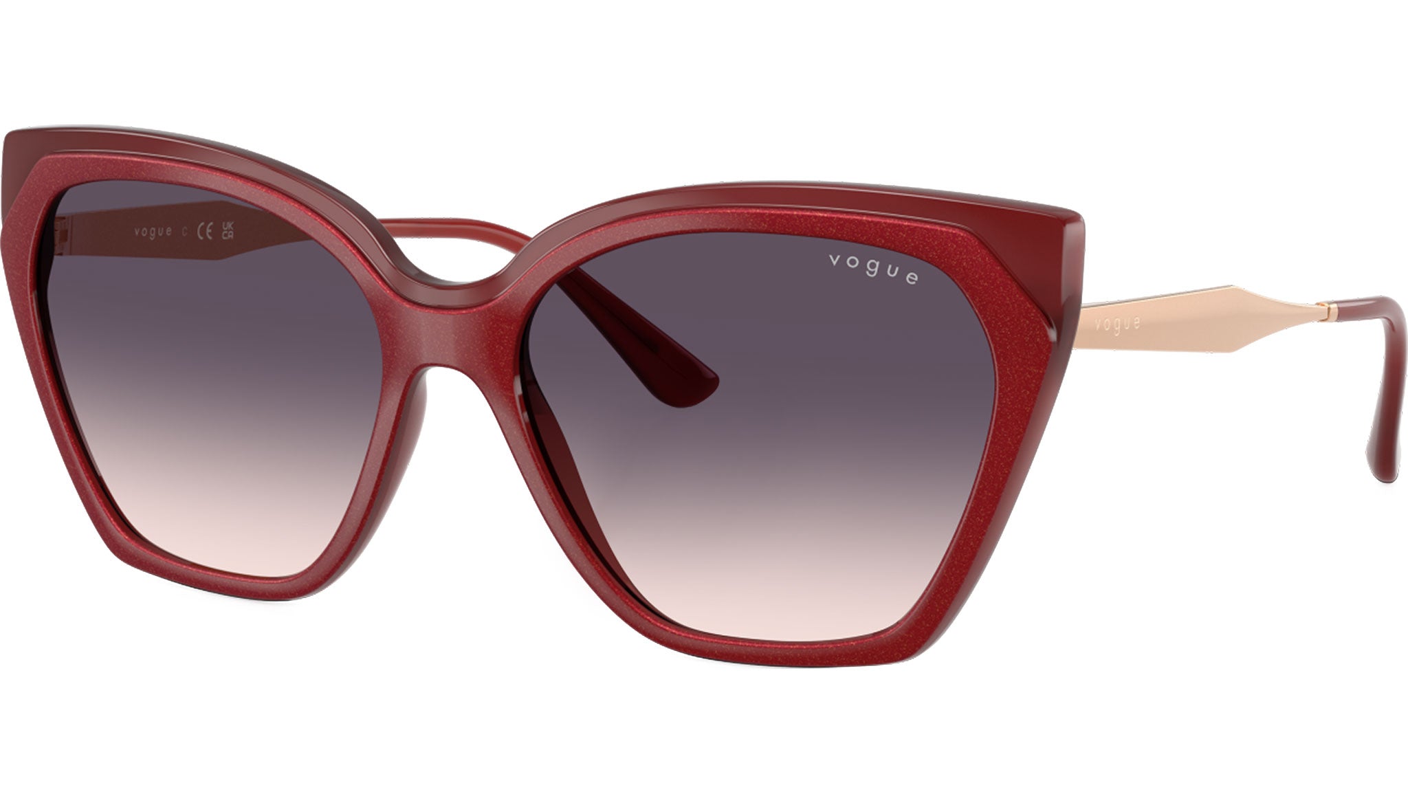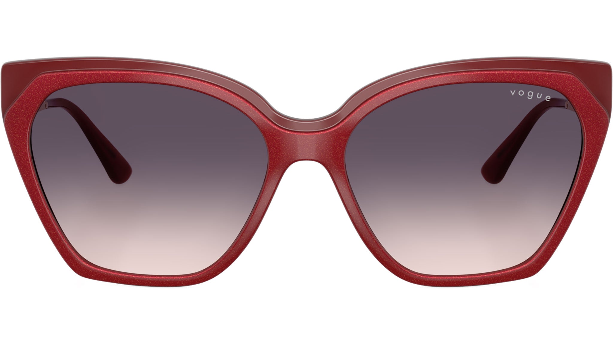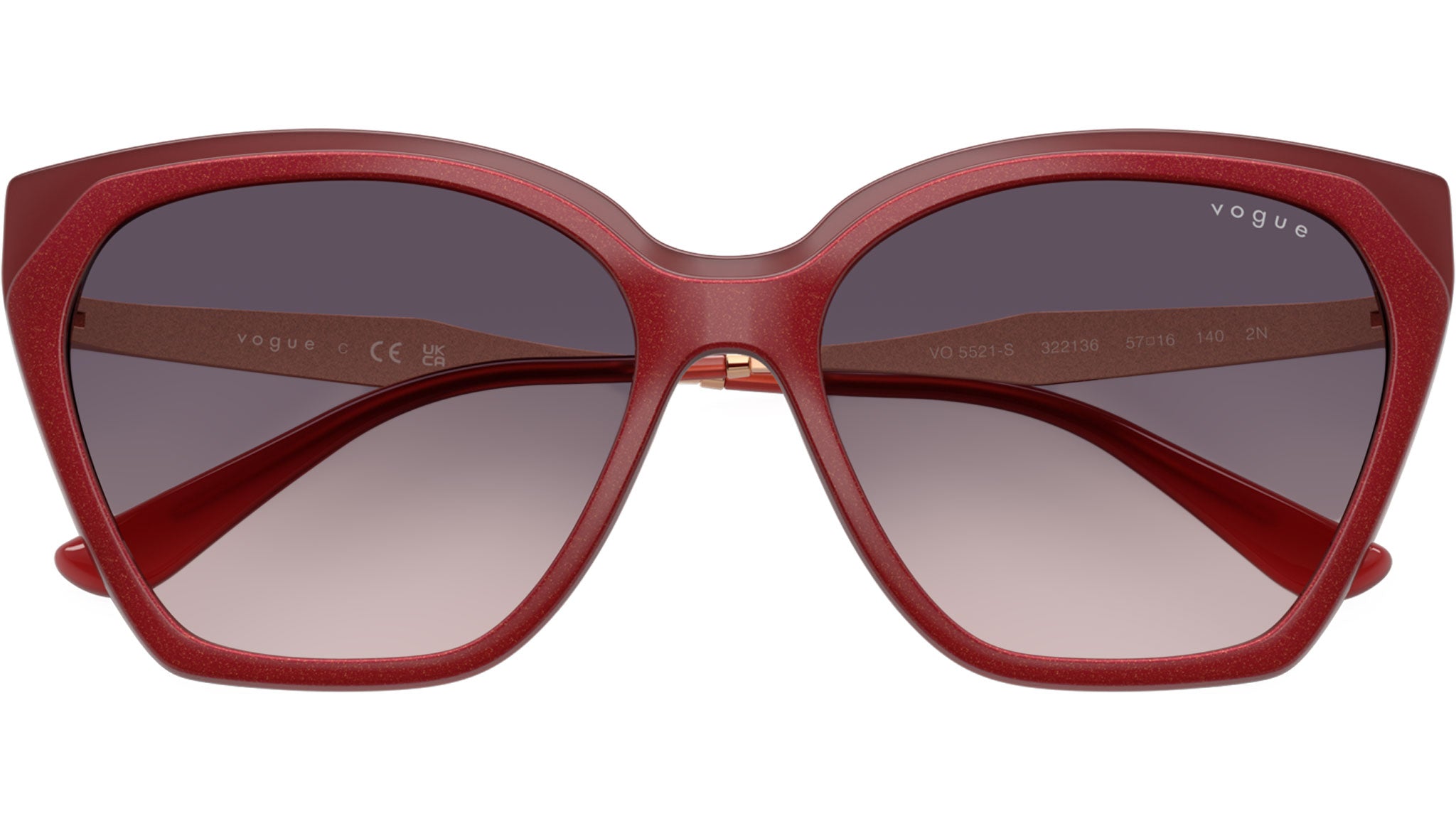 Occhiali da sole Vogue donna modello VO5521S 322136 con montatura cat eye in iniettato rosso e lenti base 4 in policarbonato rosa sfumato grigio scuro. Vestibilità a ponte alto. Linea: In Vogue. Codice Brand: 0VO5521S. Codice colore: 322136. Rivenditore autorizzato online Vogue Eyewear. Ogni prodotto Vogue viene consegnato con astuccio originale e accessori ed è coperto da garanzia del produttore di 12 mesi.