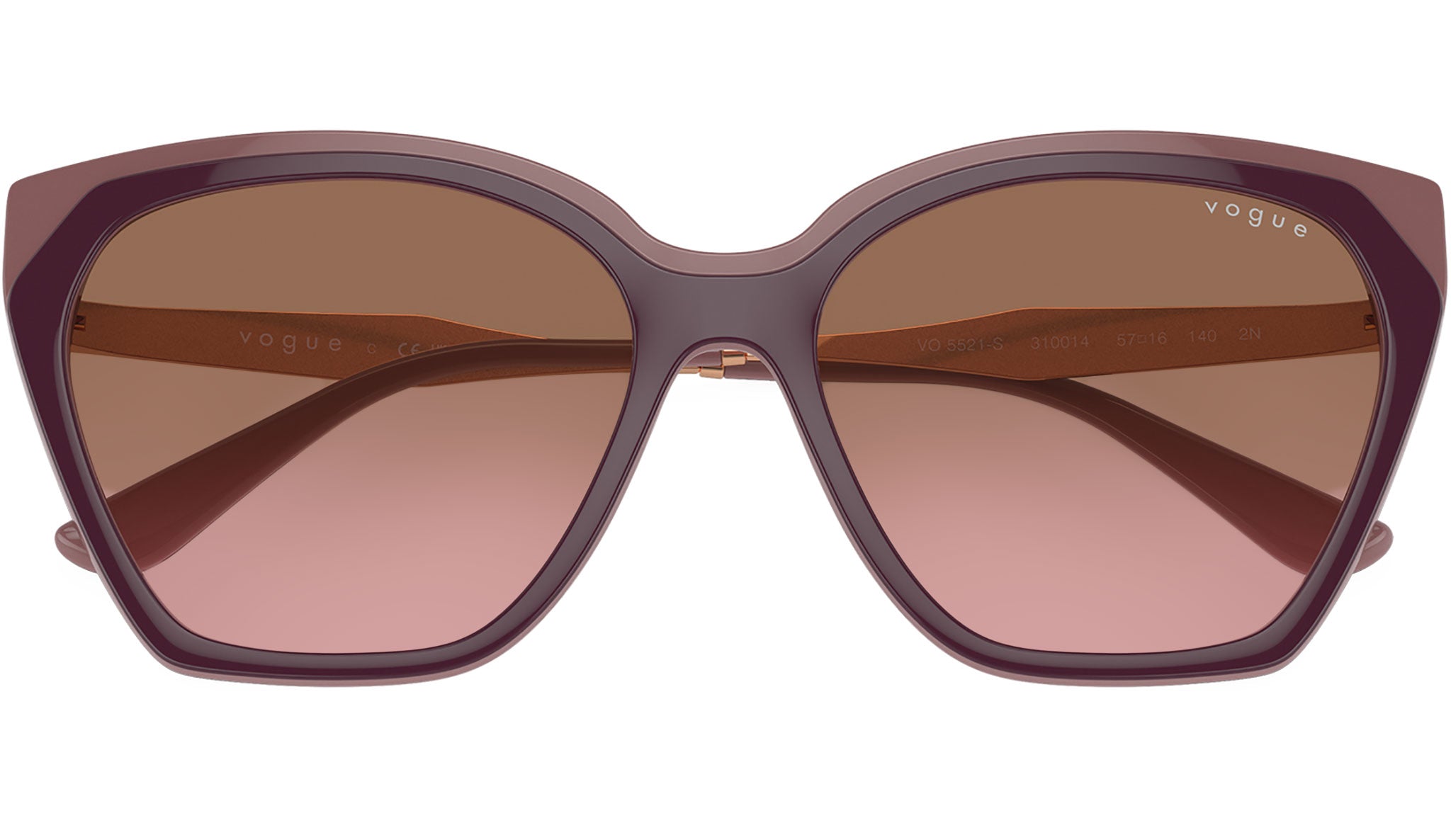 Occhiali da sole Vogue donna modello VO5521S 310014 con montatura cat eye in iniettato rosso viola e lenti base 4 in policarbonato rosa sfumato marrone. Vestibilità a ponte alto. Linea: In Vogue. Codice Brand: 0VO5521S. Codice colore: 310014. Rivenditore autorizzato online Vogue Eyewear. Ogni prodotto Vogue viene consegnato con astuccio originale e accessori ed è coperto da garanzia del produttore di 12 mesi.