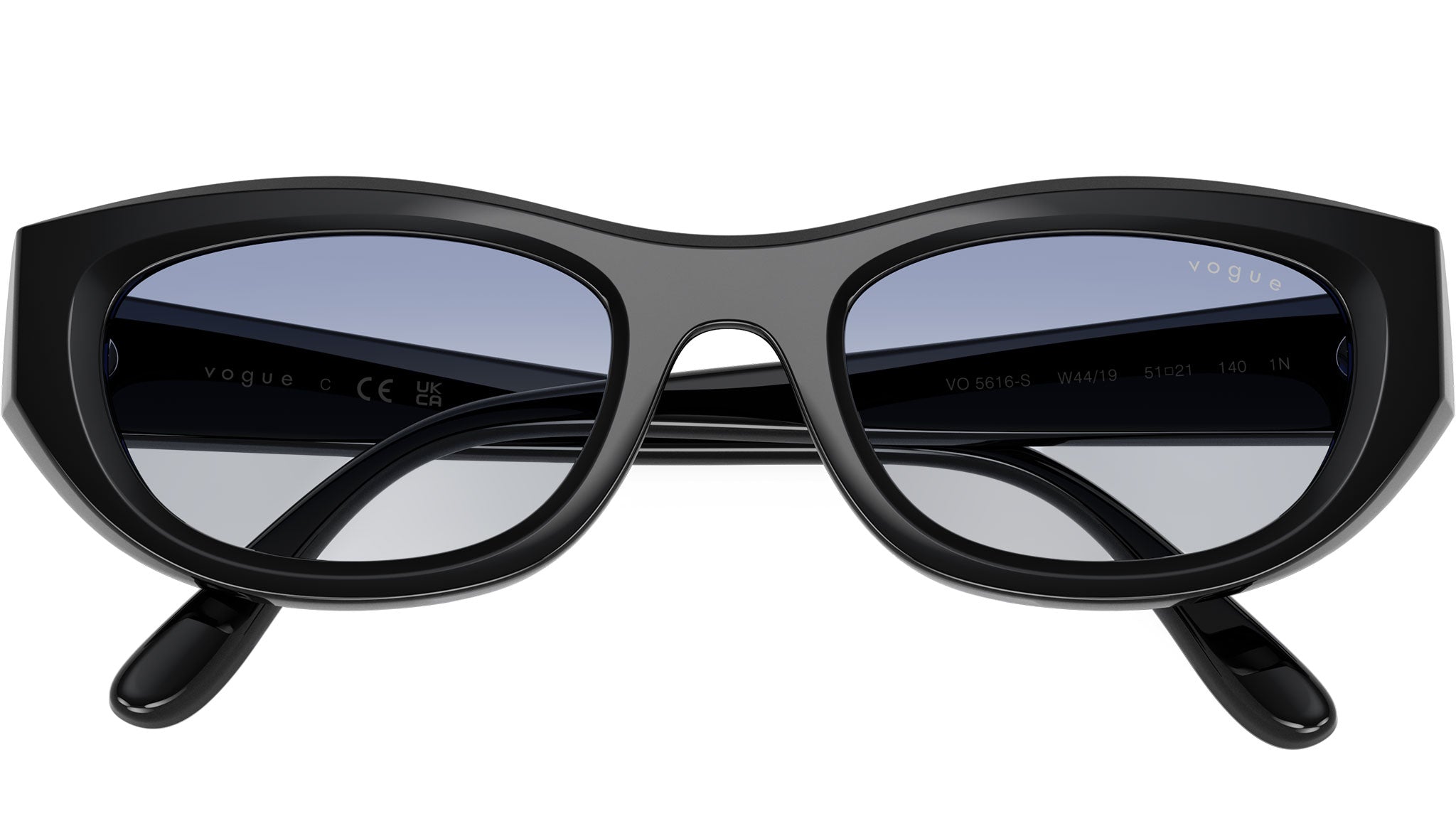 Occhiali da sole Vogue donna modello VO5616S W44/19 con montatura cat eye in nylon nero e lenti base 4 in policarbonato gradiente trasparente azzurro chiaro. Vestibilità a ponte alto. Linea: Forerunner. Codice Brand: 0VO5616S. Codice colore: W44/19. Rivenditore autorizzato online Vogue Eyewear. Ogni prodotto Vogue viene consegnato con astuccio originale e accessori ed è coperto da garanzia del produttore di 12 mesi.