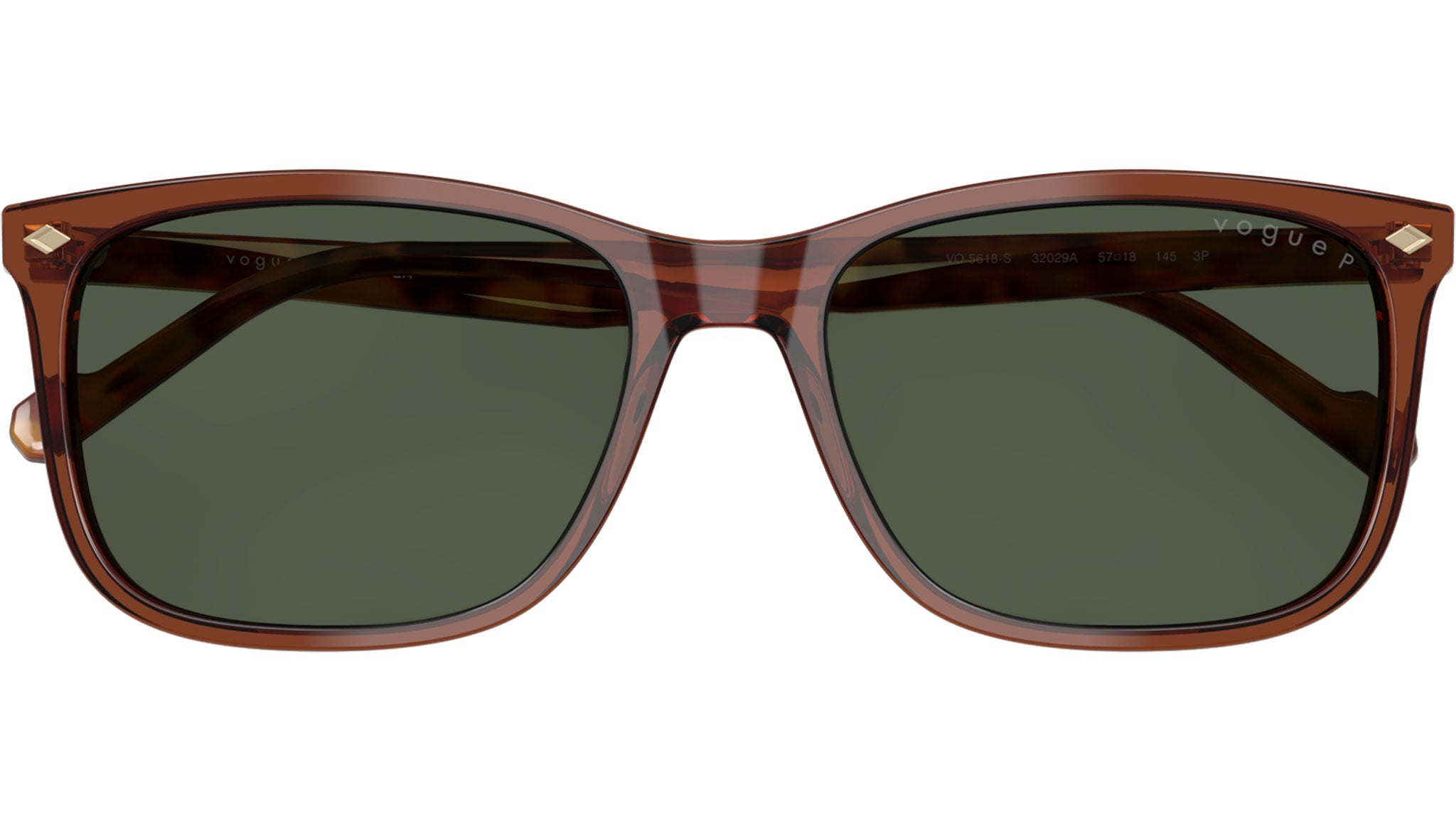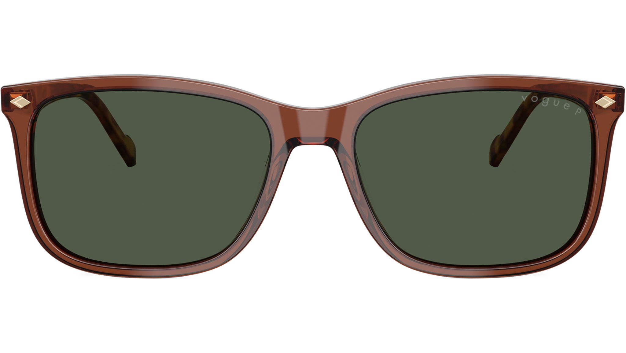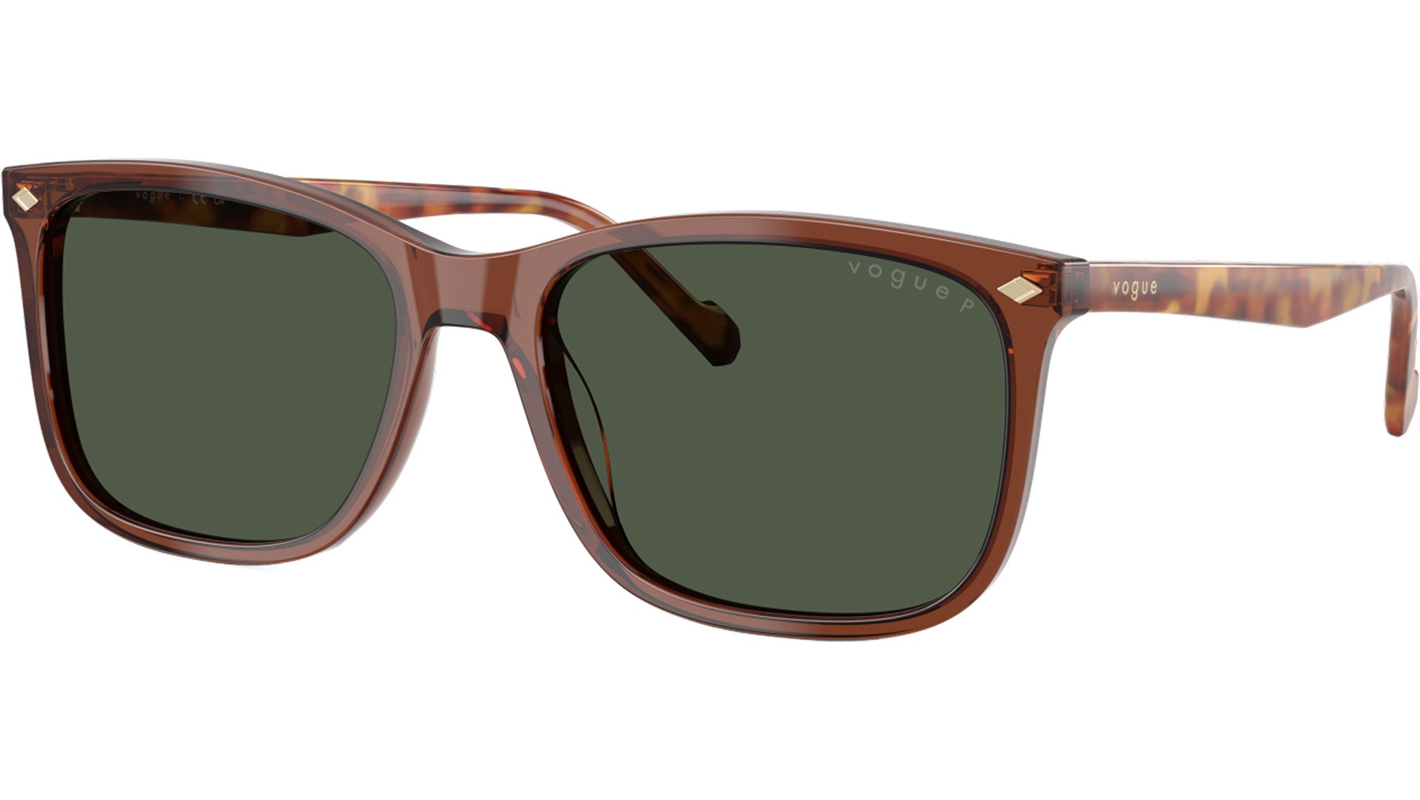 Occhiali da sole Vogue uomo modello VO5618S 32029A con montatura d-frame in acetato marrone trasparente e lenti base 4 in CR-39 verde scuro polarizzato. Vestibilità a ponte alto. Linea: Man. Codice Brand: 0VO5618S. Codice colore: 32029A. Rivenditore autorizzato online Vogue Eyewear. Ogni prodotto Vogue viene consegnato con astuccio originale e accessori ed è coperto da garanzia del produttore di 12 mesi.