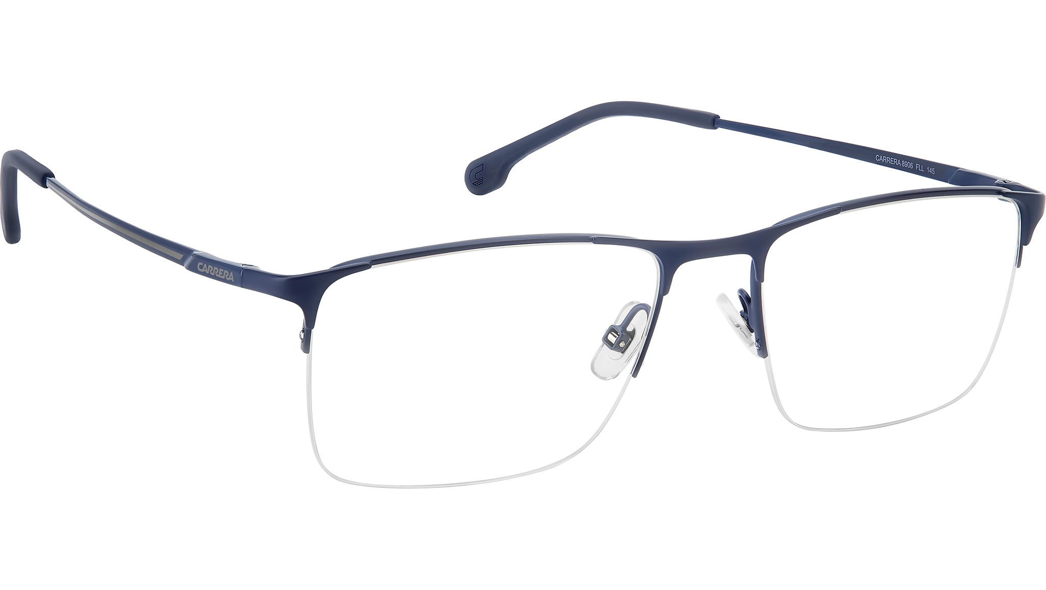 Occhiali da vista Carrera 8906 FLL uomo con montatura rettangolare in metallo blu opaco e lenti demo. La coolness Carrera traspare anche nei modelli più tecnici e pratici, come un occhiale da vista dalla silhouette rettangolare. Le lenti sono sostenute da una montatura in acciaio inossidabile e da un sottile filo di nylor, anche in versione bi-color. Il ponte e le aste sono in Memory Metal, un’innovativa lega metallica che torna alla sua forma di partenza anche quando viene piegata. Disponibile in due calibri. Linea: Sport. Codice modello: 108128. Codice colore: FLL. Rivenditore autorizzato Carrera online. Gli occhiali vengono consegnati con custodia e accessori originali e sono coperti dalla garanzia ufficiale di 12 mesi del produttore.