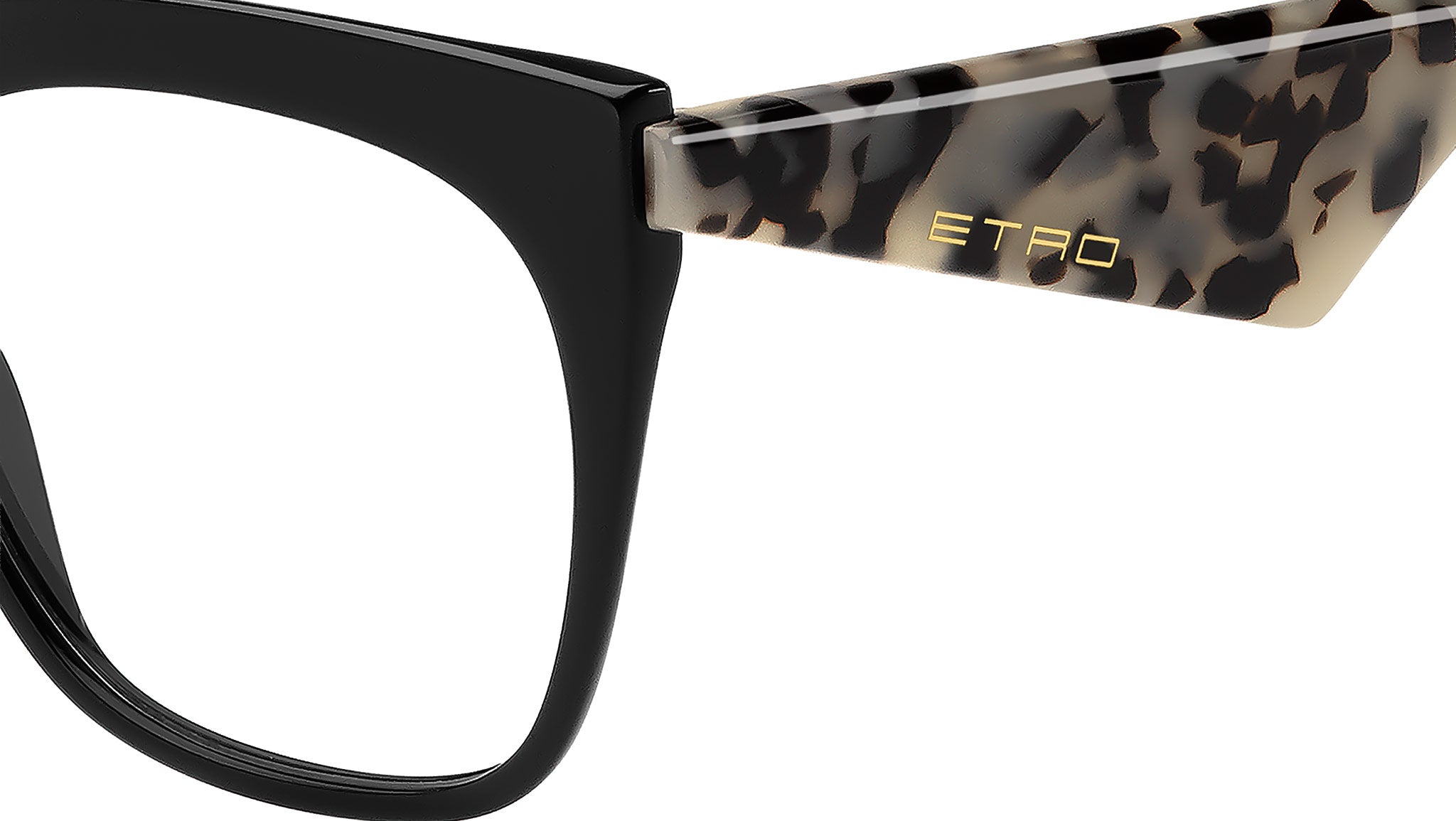 Occhiali da vista Etro 0047 TCB donna con montatura rettangolare in acetato nero bianco avana e lenti demo. Brillante, dinamica e ribelle, la collezione di occhiali "ETRO Tailoring" si rinnova con una nota contemporanea. Questi occhiali da vista interpretano i temi della collezione attraverso volumi generosi e forme sinuose. Accuratamente realizzati in acetato ultraleggero, il profilo leggermente curvo è completato da aste triangolari d'ispirazione vintage. I terminali iconici della Maison e il micro logo sono dettagli senza tempo che non passeranno mai di moda. Linea: Tailoring. Codice modello: 108766. Codice colore: TCB. Rivenditore autorizzato Etro online. Gli occhiali vengono consegnati con custodia e accessori originali e sono coperti dalla garanzia ufficiale di 12 mesi del produttore.