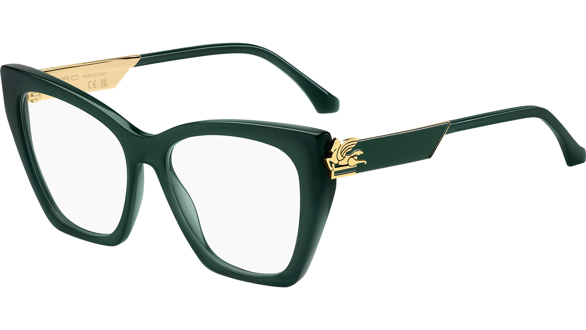 Occhiali da vista Etro 0042 1ED donna con montatura rettangolare in acetato verde e lenti demo. Temi mitologici e futuristici si combinano nella linea di occhiali "Bold Pegaso" di ETRO, un omaggio alla figura dell'omonimo cavallo alato, simbolo della Maison. Destinati a trasformare ogni look in una dichiarazione di stile, questi occhiali da vista presentano un frontale in acetato smussato e aste in metallo dall'appeal glamour: sono decorate con l'intricata fantasia floreale di ETRO e accuratamente laccate per un look prezioso, simile a un gioiello. I terminali dalla forma iconica completano la montatura con un inconfondibile tocco di eleganza. Linea: Etromania. Codice modello: 108769. Codice colore: 1ED. Rivenditore autorizzato Etro online. Gli occhiali vengono consegnati con custodia e accessori originali e sono coperti dalla garanzia ufficiale di 12 mesi del produttore.