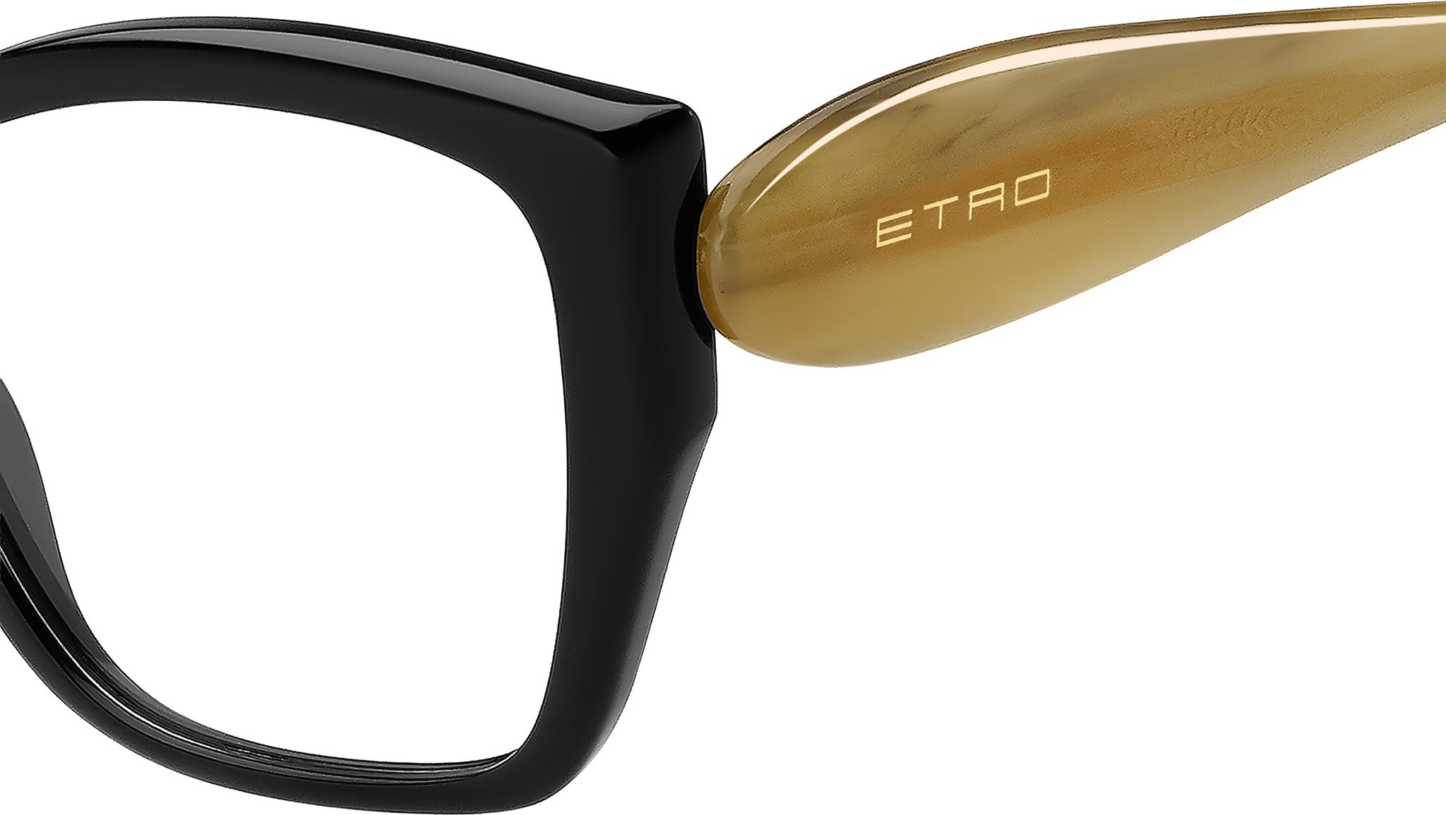 Occhiali da vista Etro 0059 71C donna con montatura rettangolare in acetato nero giallo e lenti demo. La linea eyewear "Etropaisley" interpreta il classico motivo Paisley in una inaspettata chiave grafica. Questi occhiali da vista in acetato richiamano l'eleganza opulenta ed eclettica di ETRO attraverso volumi audaci, forme geometriche e una palette di colori sofisticata. La montatura, apparentemente semplice ed essenziale, si distingue per le aste dal design unico, ispirato alle linee iconiche del Paisley. Il logo metallico su entrambi i lati completa il modello con un tocco di eleganza minimale. Linea: Etromania. Codice modello: 108774. Codice colore: 71C. Rivenditore autorizzato Etro online. Gli occhiali vengono consegnati con custodia e accessori originali e sono coperti dalla garanzia ufficiale di 12 mesi del produttore.