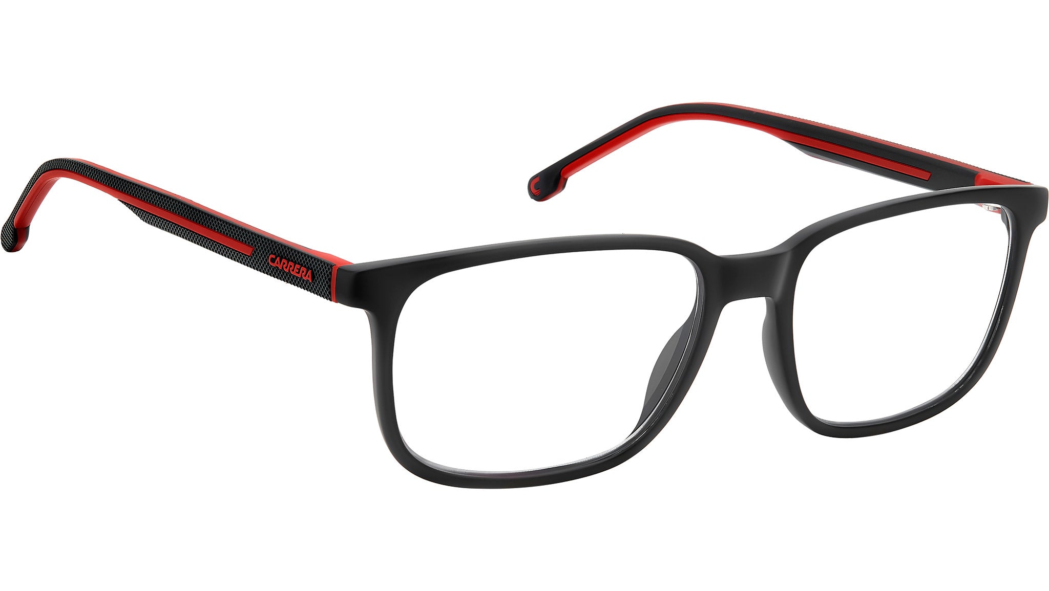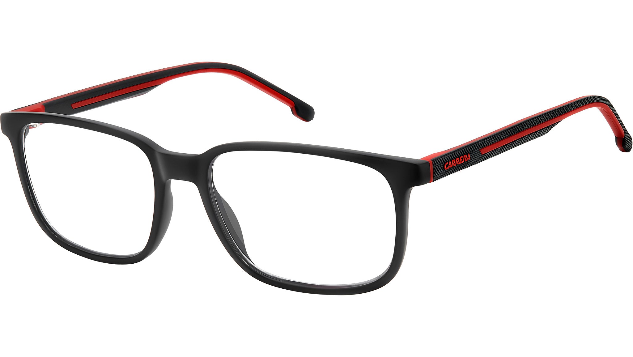 Occhiali da vista Carrera 8916 BLX uomo con montatura rettangolare in poliammide ecologica nero opaco rosso e lenti demo. Un occhiale da vista Carrera che conquista, con il design di ispirazione sportswear. Si compone di aste texturizzate con inserti gommati tono su tono oppure a contrasto - ovviamente anche in rosso, colore simbolo di Carrera. Classico frontale rettangolare, profili essenziali e vestibilità leggera: questo modello è l’accessorio passe-partout di ogni look, da quelli smart per l’ufficio a quelli casual del weekend. Linea: Sport. Codice modello: 109493. Codice colore: BLX. Rivenditore autorizzato Carrera online. Gli occhiali vengono consegnati con custodia e accessori originali e sono coperti dalla garanzia ufficiale di 12 mesi del produttore.