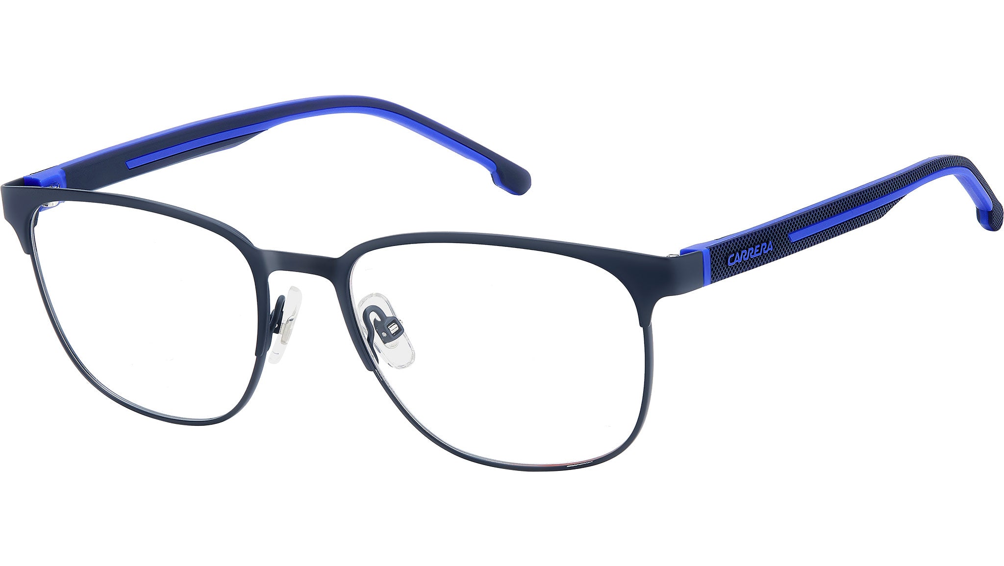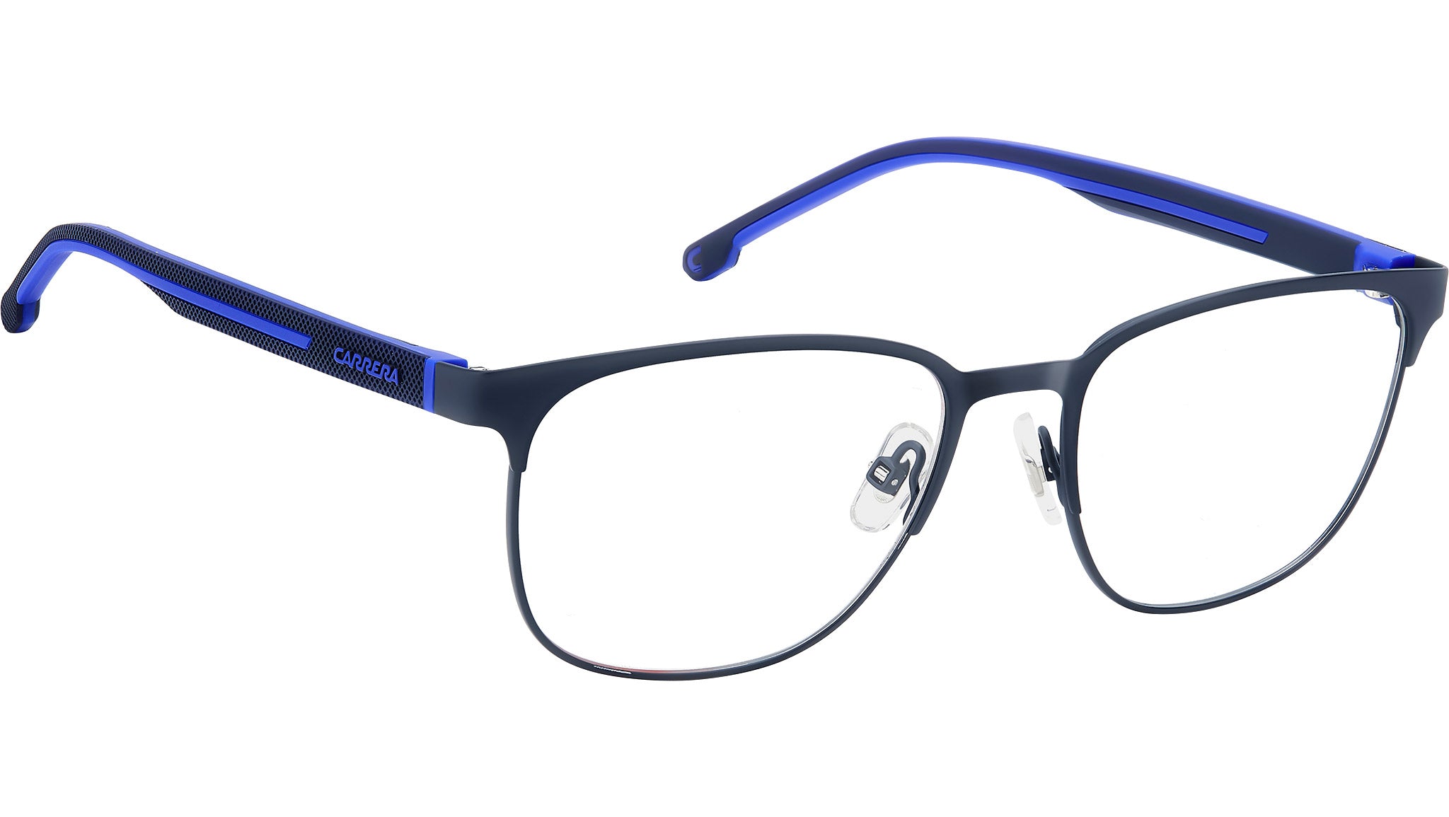 Occhiali da vista Carrera 8917 PJP uomo con montatura rettangolare in metallo blu e lenti demo. Occhiali da vista Carrera di ispirazione activewear, perfetti per sentirsi sempre on the move. Cosa li rende speciali? Sicuramente le aste bi-iniettate dalla superficie texturizzata, con logo Carrera in rilievo e inserti gommati. Da scegliere in versione monocromatica, per un look più minimale, oppure con colore a contrasto per una nota decisa. Il frontale è in acciaio inossidabile, con naselli da regolare sul naso assecondando la propria fisionomia. Linea: Sport. Codice modello: 109494. Codice colore: PJP. Rivenditore autorizzato Carrera online. Gli occhiali vengono consegnati con custodia e accessori originali e sono coperti dalla garanzia ufficiale di 12 mesi del produttore.