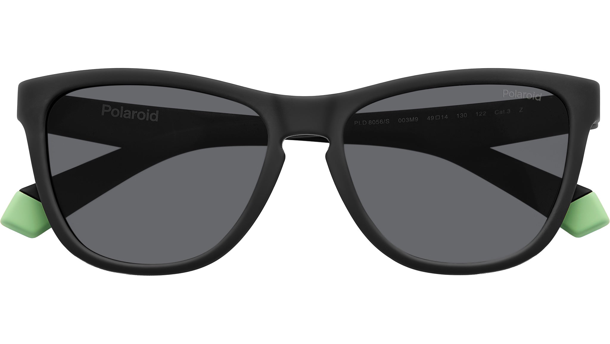 Occhiali da sole Polaroid Kids PLD 8056/S 003 M9 junior con montatura in plastica nero opaco e lenti grigio polarizzate. Scoprire il mondo è un divertimento senza fine con questi occhiali da sole Polaroid per bambine dai 7 ai 10 anni di età. Comodità e sicurezza derivano dalla montatura in gomma: massima flessibilità e possibilità di torsione si abbinano a un grip sicuro e comodo sul volto. Le giovani esploratrici apprezzeranno la palette colori giocosa, ancora più irresistibile grazie agli inserti a contrasto sulle aste e sui terminali. Linea: Kids. Codice modello: 206363. Codice colore: 003 M9. Rivenditore autorizzato Polaroid Kids online. Gli occhiali vengono consegnati con custodia e accessori originali e sono coperti dalla garanzia ufficiale di 12 mesi del produttore.