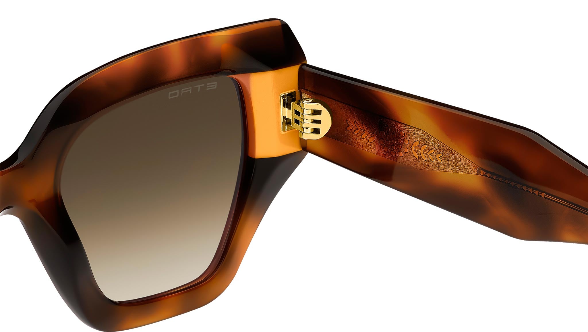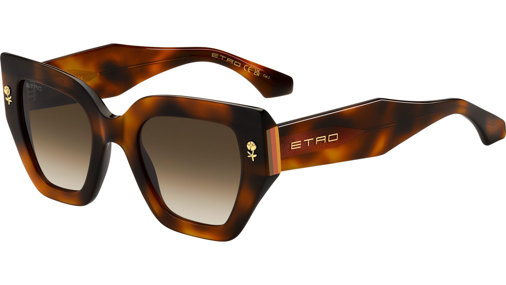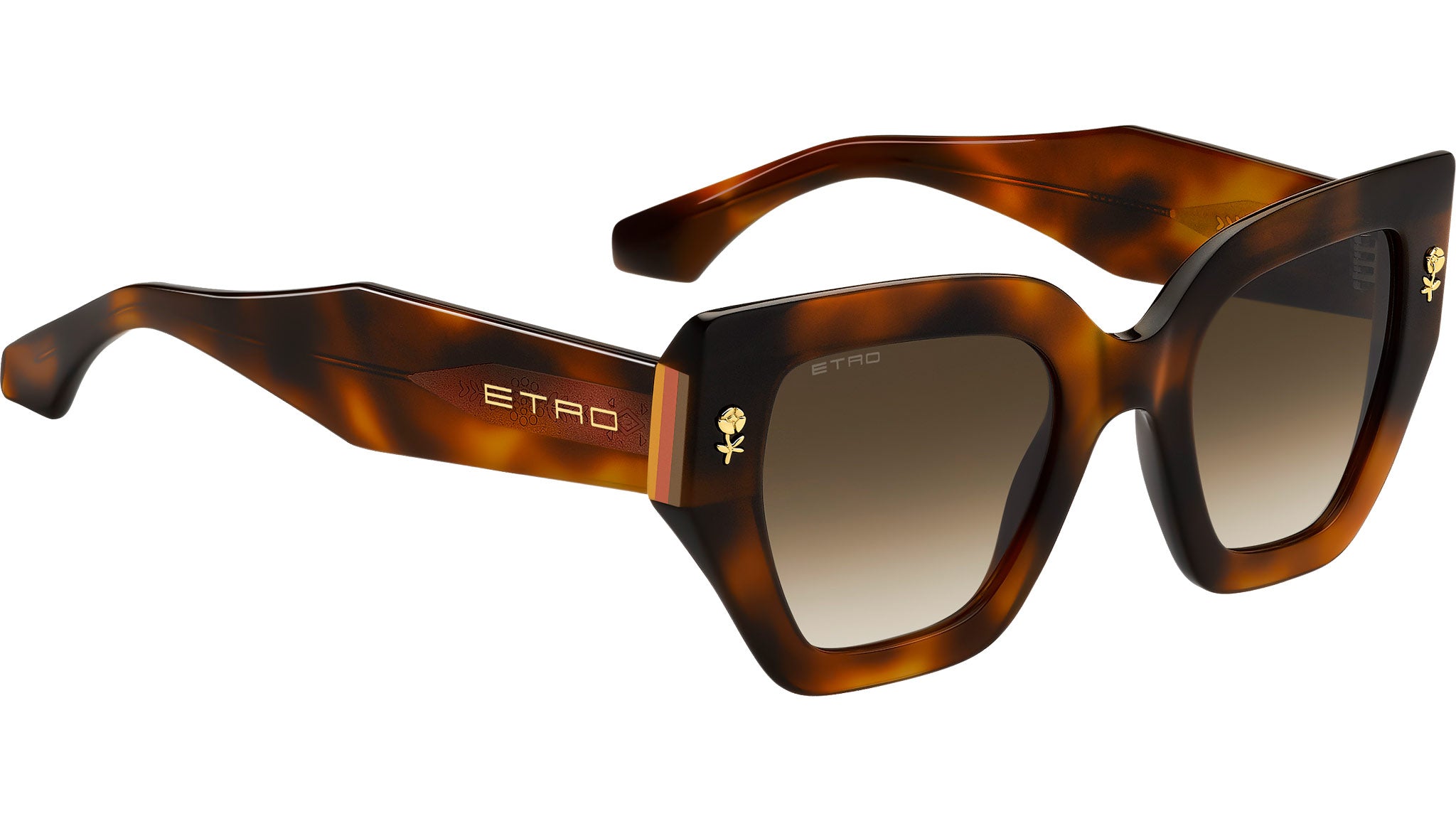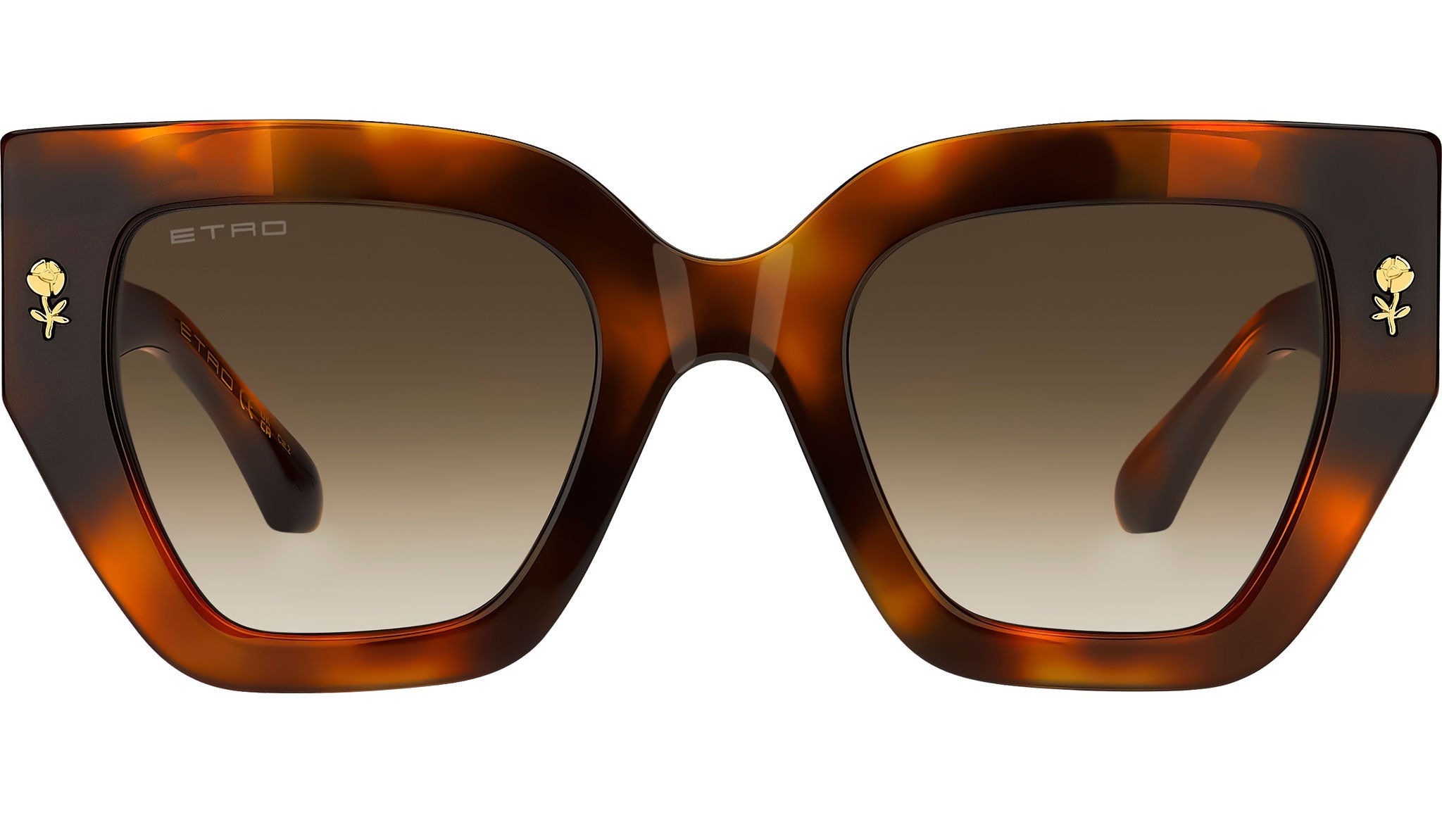 Occhiali da sole Etro 0010/S 05L HA donna con montatura squadrata in acetato avana e lenti in CR-39 marrone sfumato. Un omaggio ai motivi a righe e pattern floreali che contraddistinguono il codici stilistici di ETRO, la collezione eyewear "Colour Stripes" traduce i ricami e le stampe iconiche della Maison in occhiali da vista dall'estetica eclettica e innovativa. La montatura in acetato dai volumi audaci, rifinita con profili smussati, è arricchita da una preziosa decorazione in metallo a forma di fiore e da un inserto a righe multicolore sui lati. L’anima in metallo visibile attraverso le aste trasparenti aggiunge un tocco grafico. Il design dei terminali in acetato richiama la simmetria del logo ETRO. Linea: Etromania. Codice modello: 206848. Codice colore: 05L HA. Rivenditore autorizzato Etro online. Gli occhiali vengono consegnati con custodia e accessori originali e sono coperti dalla garanzia ufficiale di 12 mesi del produttore.