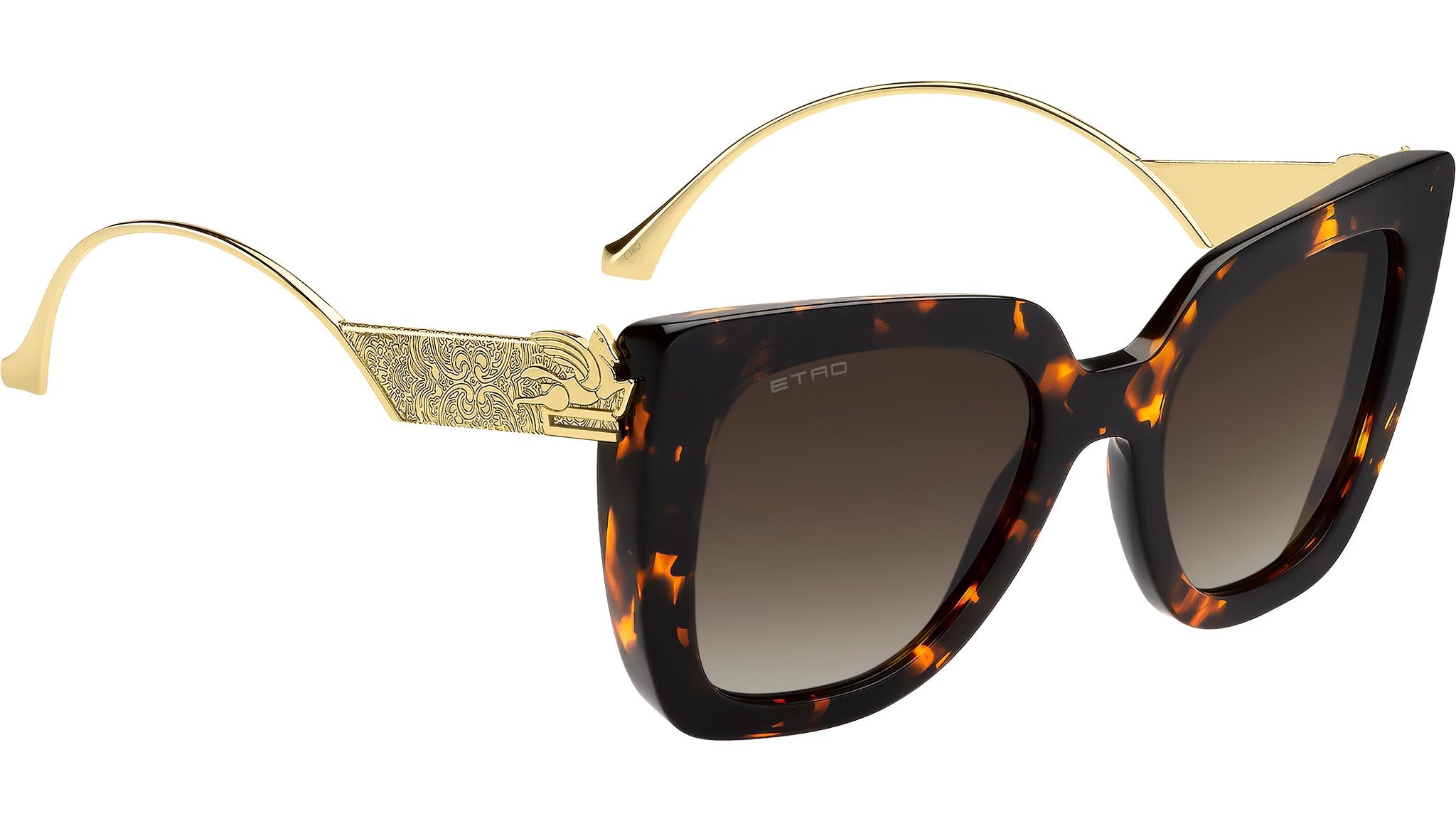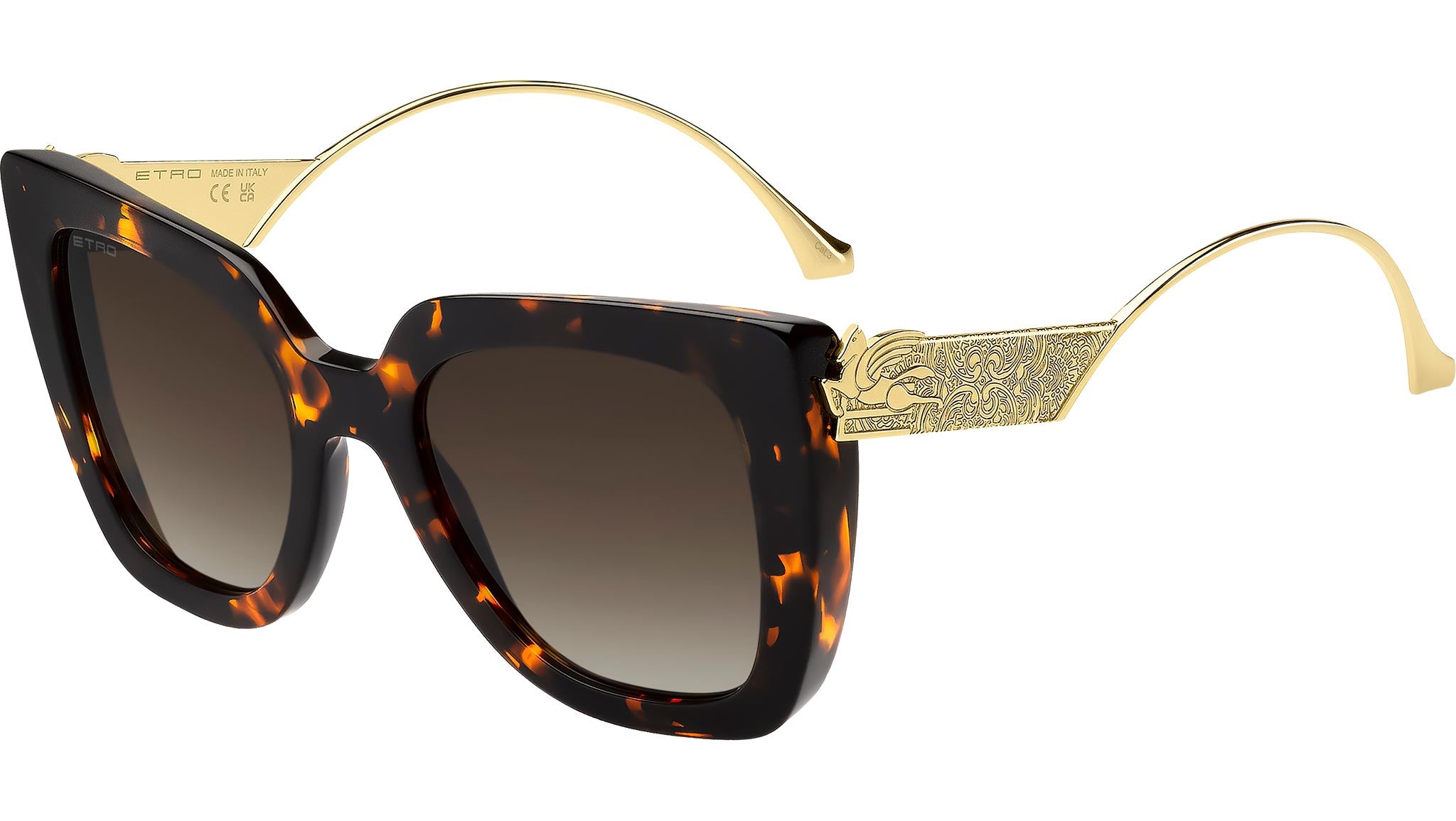 Occhiali da sole Etro 0040/S 086 HA donna con montatura squadrata in acetato avana e lenti in CR-39 marrone sfumato. Temi mitologici e futuristici si combinano nella linea di occhiali "Bold Pegaso" di ETRO, un omaggio alla figura dell'omonimo cavallo alato, simbolo della Maison. Destinati a trasformare ogni look in una dichiarazione di stile, questi occhiali da sole presentano un frontale in acetato smussato e aste in metallo dall'appeal glamour: sono decorate con l'intricata fantasia floreale di ETRO e accuratamente laccate per un look prezioso, simile a un gioiello. I terminali dalla forma iconica e il logo presente sulle lenti colorate completano la montatura con un inconfondibile tocco di eleganza. Linea: Etromania. Codice modello: 207311. Codice colore: 086 HA. Rivenditore autorizzato Etro online. Gli occhiali vengono consegnati con custodia e accessori originali e sono coperti dalla garanzia ufficiale di 12 mesi del produttore.