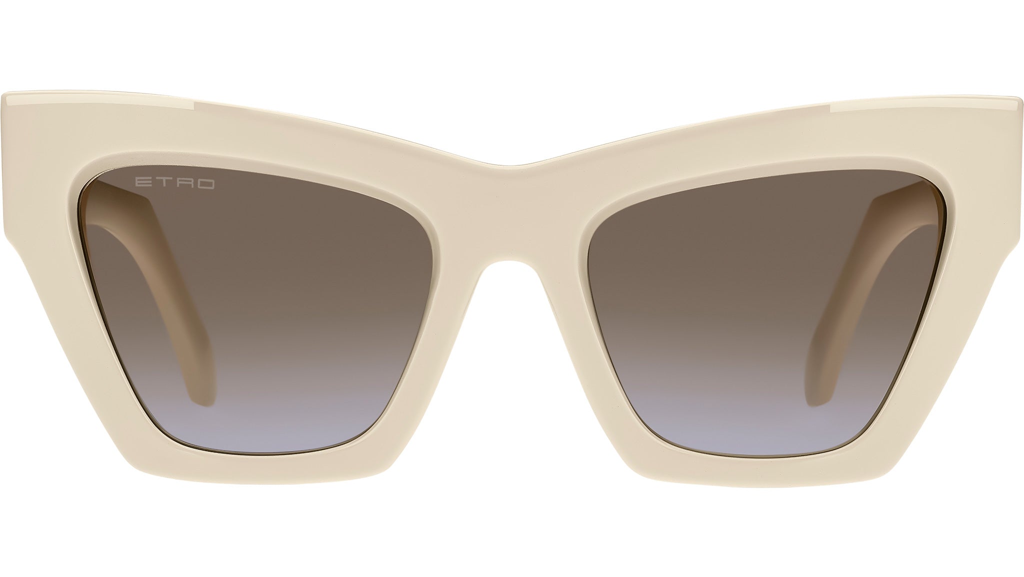Occhiali da sole Etro 0050/S SZJ QR donna con montatura rettangolare in nylon avorio e lenti in CR-39 marrone viola sfumato. Linee essenziali, tagli geometrici e una palette monocromatica si fondono nella collezione eyewear "Etroscreen" di ETRO. Ricercati e dal forte impatto grafico, questi occhiali da sole presentano una montatura leggera in iniettato, comoda da indossare tutto il giorno. Le aste dalla linea angolata bilanciano perfettamente le proporzioni del frontale, dando vita a un design inaspettato e accattivante da ogni angolazione. I terminali iconici di ETRO, il logo Pegaso in metallo e il lettering logo sulle lenti colorate completano questa selezione. Linea: Tailoring. Codice modello: 207321. Codice colore: SZJ QR. Rivenditore autorizzato Etro online. Gli occhiali vengono consegnati con custodia e accessori originali e sono coperti dalla garanzia ufficiale di 12 mesi del produttore.