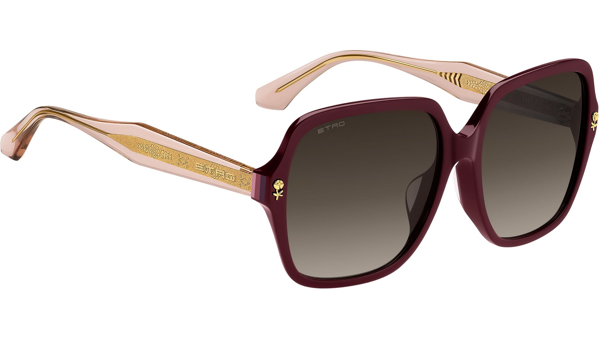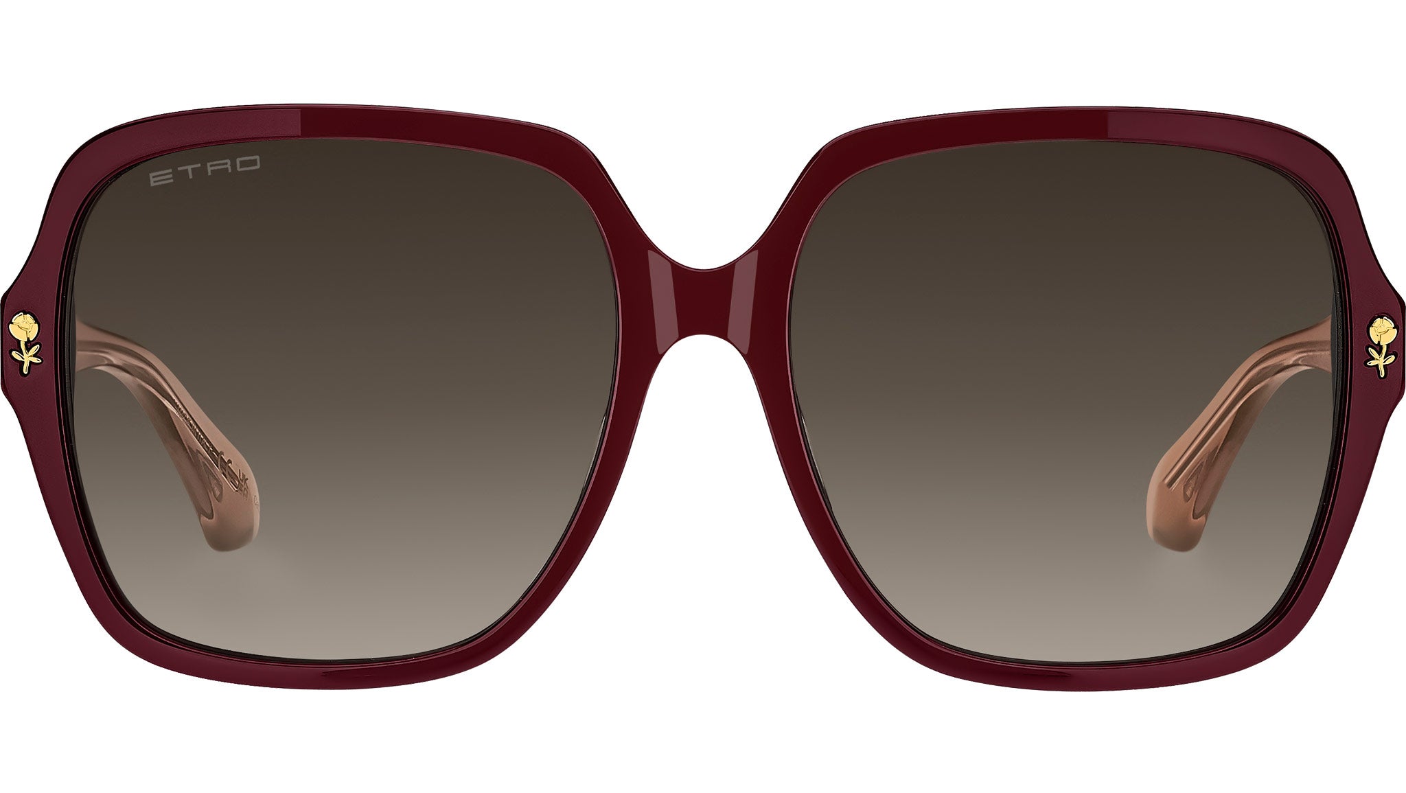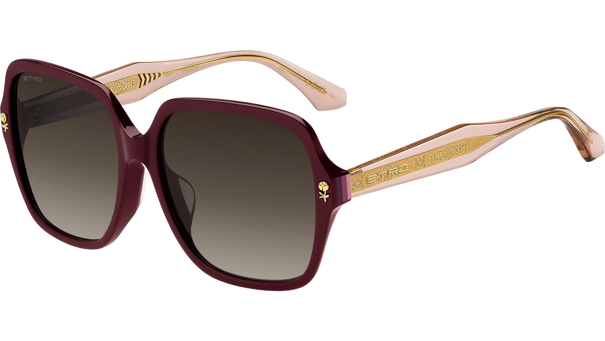 Occhiali da sole Etro 0064/F/S LHF 86 donna con montatura squadrata in acetato bordeaux e lenti in CR-39 nero marrone verde antireflex. Parte della collezione eyewear Asian Fitting di ETRO, la linea "Colour Stripes" è una sintesi dei codici stilistici della casa di moda Milanese. Questi eleganti occhiali da sole sono realizzati in acetato leggero dalle linee smussate, accentuate da inserti a righe multicolor e ricchi motivi floreali sui lati, un omaggio alle caratteristiche lavorazioni artigianali del brand. La silhouette morbida e femminile è completata da aste sottili rifinite con il logo ETRO e terminali iconici. Linea: Etromania. Codice modello: 207341. Codice colore: LHF 86. Rivenditore autorizzato Etro online. Gli occhiali vengono consegnati con custodia e accessori originali e sono coperti dalla garanzia ufficiale di 12 mesi del produttore.
