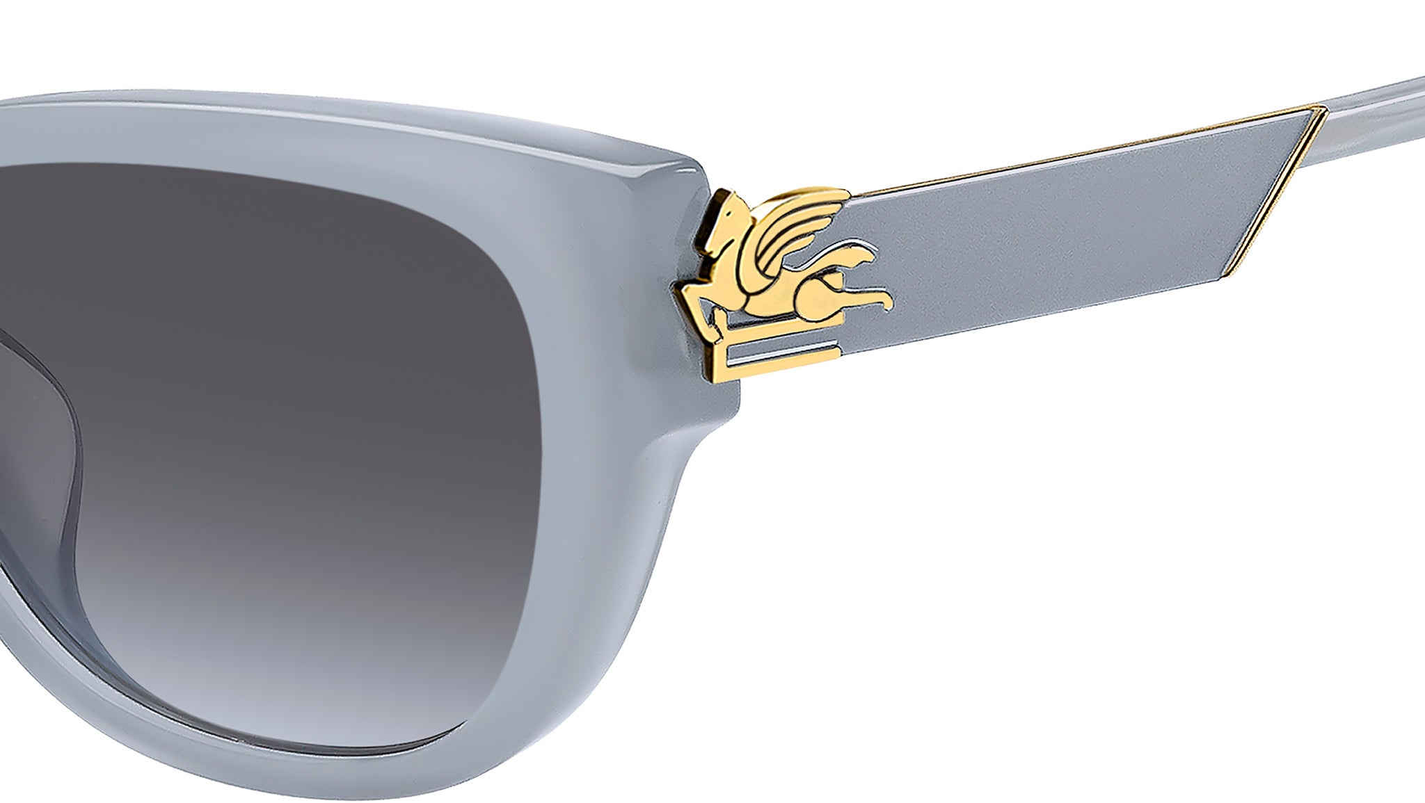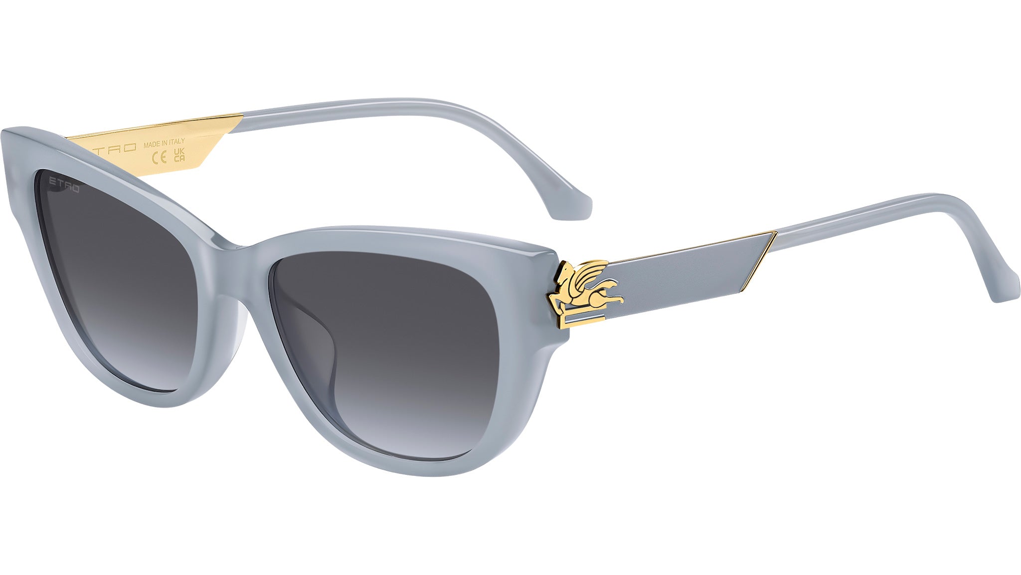 Occhiali da sole Etro 0063/F/S MVU FZ donna con montatura rettangolare in acetato azzurro e lenti in CR-39 grigio sfumato blu antireflex. Temi mitologici e futuristici si combinano nella collezione eyewear "Bold Pegaso" di ETRO, un omaggio alla figura dell'omonimo cavallo alato, simbolo della Maison. Parte della collezione Asian Fitting, questi occhiali da sole presentano un frontale in acetato smussato e aste in metallo ultra-glamour, con una finitura laccata che ricorda le lavorazioni di gioielleria. I terminali dalla forma iconica e il logo presente sulle lenti colorate completano la montatura con un inconfondibile tocco di eleganza. Linea: Etromania. Codice modello: 207343. Codice colore: MVU FZ. Rivenditore autorizzato Etro online. Gli occhiali vengono consegnati con custodia e accessori originali e sono coperti dalla garanzia ufficiale di 12 mesi del produttore.