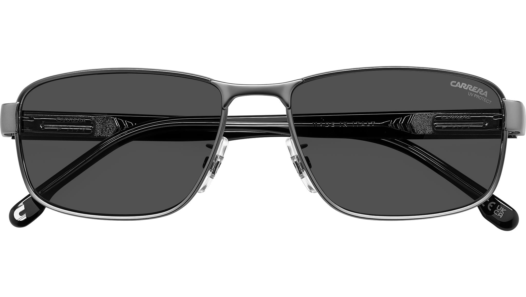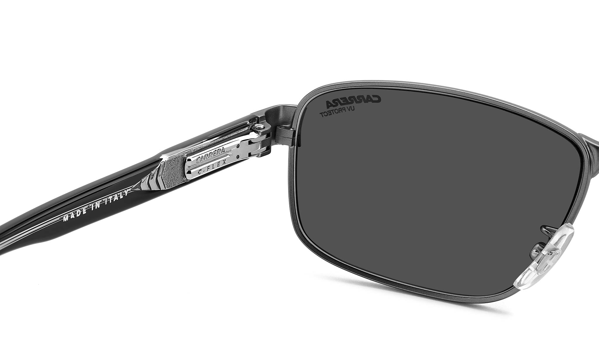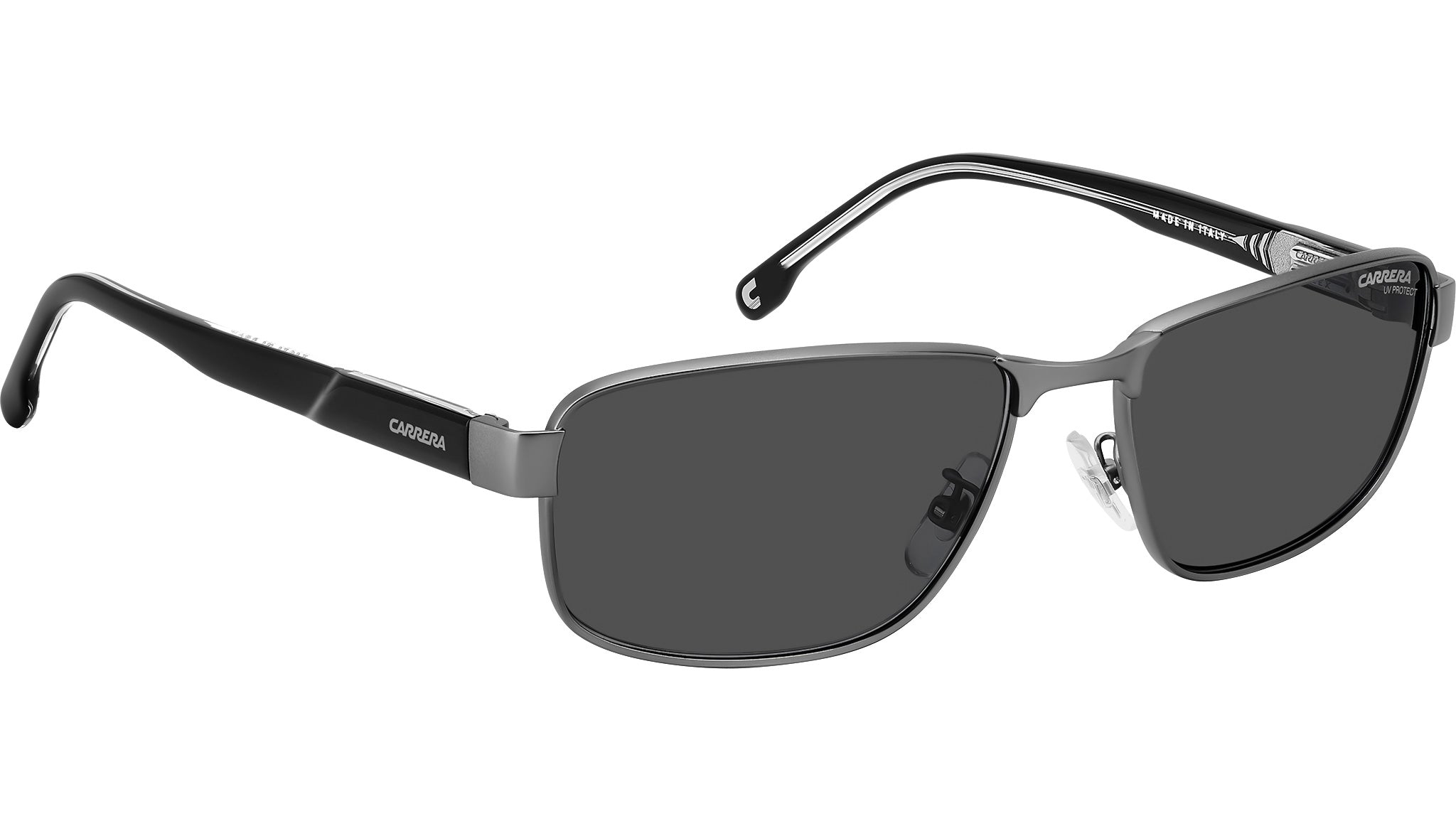 Occhiali da sole Carrera C FLEX 09/G/S R81 IR uomo con montatura rettangolare in metallo rutenio opaco e lenti demo. Qualità e praticità distinguono un occhiale da sole Carrera. Sono realizzati in Italia, come attesta la dicitura sul lato interno dell’asta. La montatura avvolgente è Global Fit, dotata di naselli regolabili e cerniere “C Flex” elastiche e resistenti all’uso. Il modello può montare lenti graduate, diventando così più che un semplice accessorio, ma un alleato da avere sempre con sé. Disponibile nelle versioni polar e ultrapolar per un’esperienza visiva superiore. Linea: Signature. Codice modello: 207561. Codice colore: R81 IR. Rivenditore autorizzato Carrera online. Gli occhiali vengono consegnati con custodia e accessori originali e sono coperti dalla garanzia ufficiale di 12 mesi del produttore.