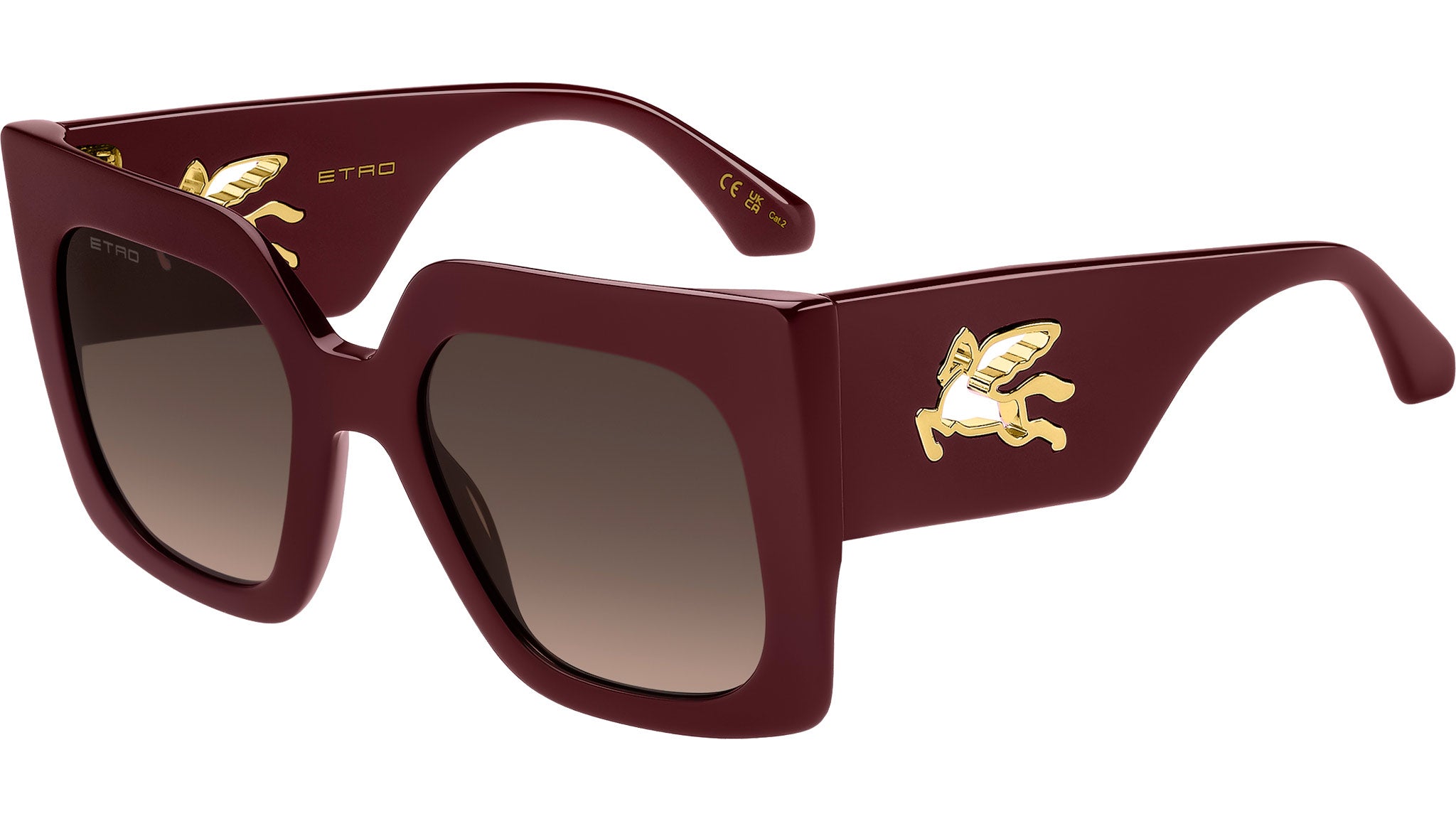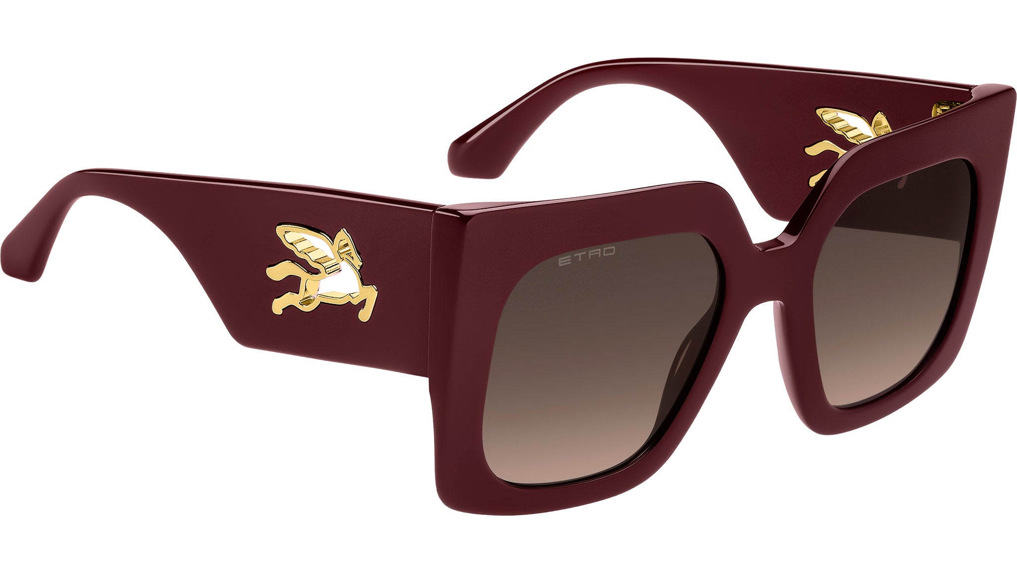 Occhiali da sole Etro 0075/S LHF HA donna con montatura squadrata in acetato bordeaux e lenti in CR-39 marrone sfumato. Autenticamente ETRO, questi occhiali da sole sono una vera dichiarazione di stile. La forma audace e la costruzione raffinata sono esaltate dall'inaspettato dettaglio Pegaso cut-out in metallo. Realizzati in acetato premium sviluppato esclusivamente per il brand, sono rifiniti con un processo di fresatura che garantisce un design impeccabile. Le varianti disponibili spaziano dai classici nero e bordeaux di ETRO al motivo Paisley, che dona una nuova energia ai codici iconici del brand. Linea: Etromania. Codice modello: 207797. Codice colore: LHF HA. Rivenditore autorizzato Etro online. Gli occhiali vengono consegnati con custodia e accessori originali e sono coperti dalla garanzia ufficiale di 12 mesi del produttore.