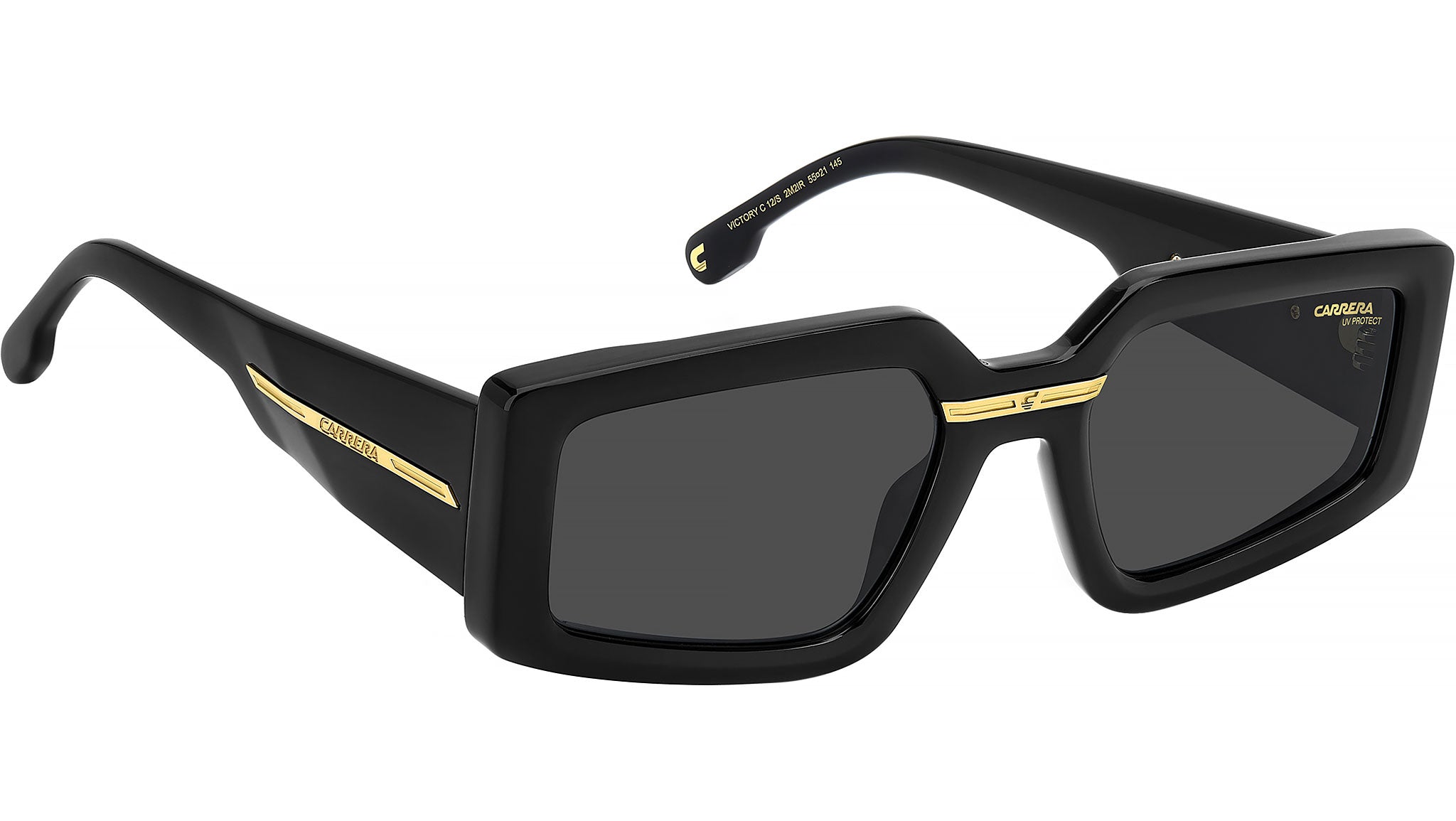 Occhiali da sole Carrera VICTORY C 12/S 2M2 IR donna con montatura rettangolare in poliammide ecologica oro nero e lenti demo. Ogni elemento di un occhiale da sole Carrera è determinante: il design, i dettagli, il carattere. La montatura è Made in Italy, realizzata con maestria. Sul frontale, la placca metallica con la “C” è la moderna rivisitazione del simbolo Carrera. Questa appare anche sulle aste bold, esagerate come la confidence che questo stile emana. Linea: Flag. Codice modello: 207887. Codice colore: 2M2 IR. Rivenditore autorizzato Carrera online. Gli occhiali vengono consegnati con custodia e accessori originali e sono coperti dalla garanzia ufficiale di 12 mesi del produttore.