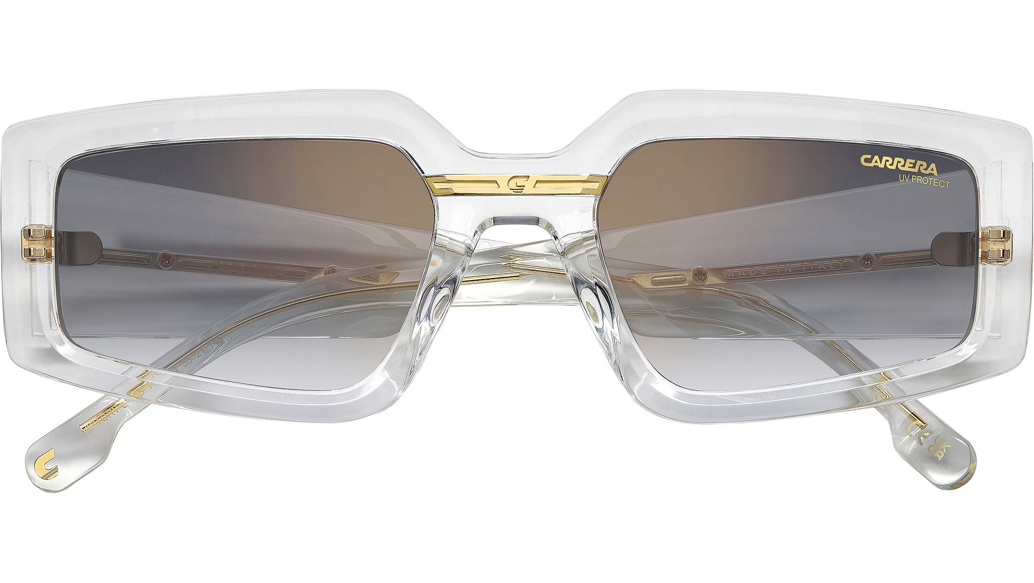 Occhiali da sole Carrera VICTORY C 12/S REJ FQ donna con montatura rettangolare in poliammide ecologica cristallo oro e lenti demo. Ogni elemento di un occhiale da sole Carrera è determinante: il design, i dettagli, il carattere. La montatura è Made in Italy, realizzata con maestria. Sul frontale, la placca metallica con la “C” è la moderna rivisitazione del simbolo Carrera. Questa appare anche sulle aste bold, esagerate come la confidence che questo stile emana. Linea: Flag. Codice modello: 207887. Codice colore: REJ FQ. Rivenditore autorizzato Carrera online. Gli occhiali vengono consegnati con custodia e accessori originali e sono coperti dalla garanzia ufficiale di 12 mesi del produttore.