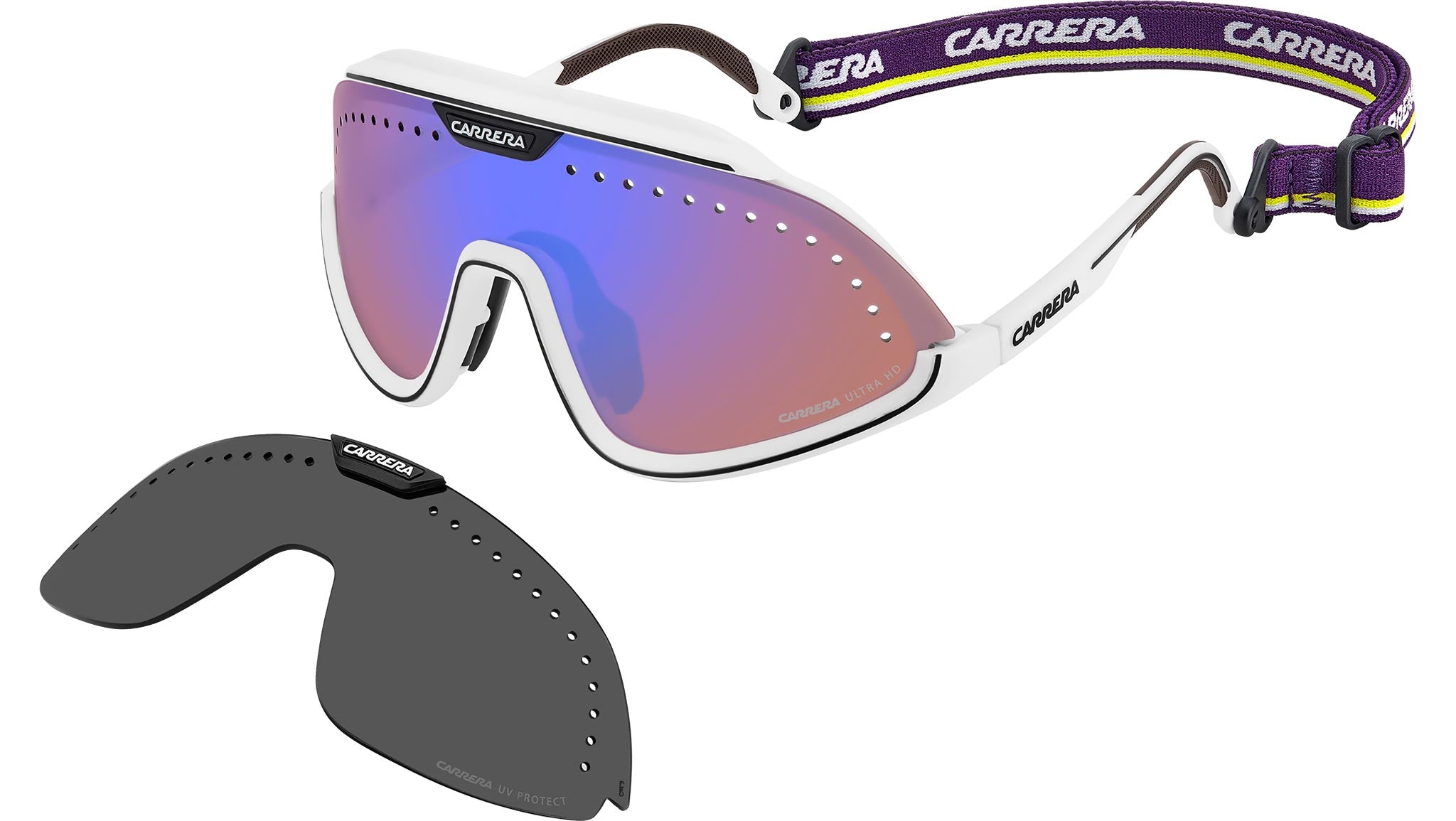 Occhiali da sole Carrera C SPORT 01/S 6HT ZS uomo con montatura mascherina in Injected bianco opaco e lenti demo. I collezionisti non si lasciano sfuggire un occhiale da sole sportivi Carrera in edizione speciale. La maschera con fori di ventilazione arriva dall’archivio Carrera, oggi più che mai contemporanea. Include due lenti intercambiabili, dal diverso colore e grado di protezione. Il sistema di cambio lente con clip magnetiche è un brevetto Carrera. Il cordino elastico removibile è un ulteriore elemento estetico e pratico insieme. Linea: Sport. Codice modello: 207990. Codice colore: 6HT ZS. Rivenditore autorizzato Carrera online. Gli occhiali vengono consegnati con custodia e accessori originali e sono coperti dalla garanzia ufficiale di 12 mesi del produttore.