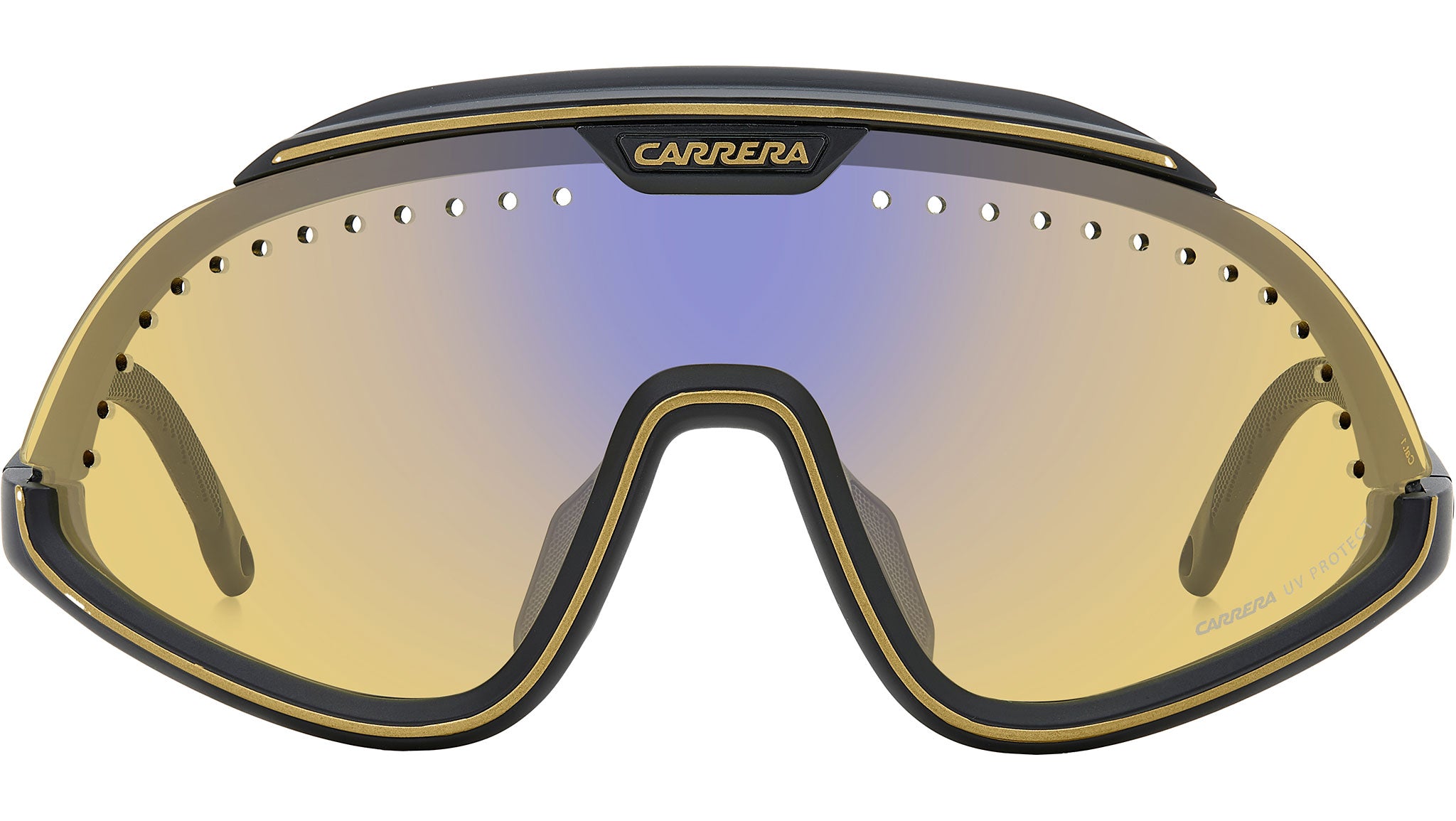 Occhiali da sole Carrera C SPORT 01/S I46 HW uomo con montatura mascherina in Injected nero opaco oro e lenti demo. I collezionisti non si lasciano sfuggire un occhiale da sole sportivi Carrera in edizione speciale. La maschera con fori di ventilazione arriva dall’archivio Carrera, oggi più che mai contemporanea. Include due lenti intercambiabili, dal diverso colore e grado di protezione. Il sistema di cambio lente con clip magnetiche è un brevetto Carrera. Il cordino elastico removibile è un ulteriore elemento estetico e pratico insieme. Linea: Sport. Codice modello: 207990. Codice colore: I46 HW. Rivenditore autorizzato Carrera online. Gli occhiali vengono consegnati con custodia e accessori originali e sono coperti dalla garanzia ufficiale di 12 mesi del produttore.