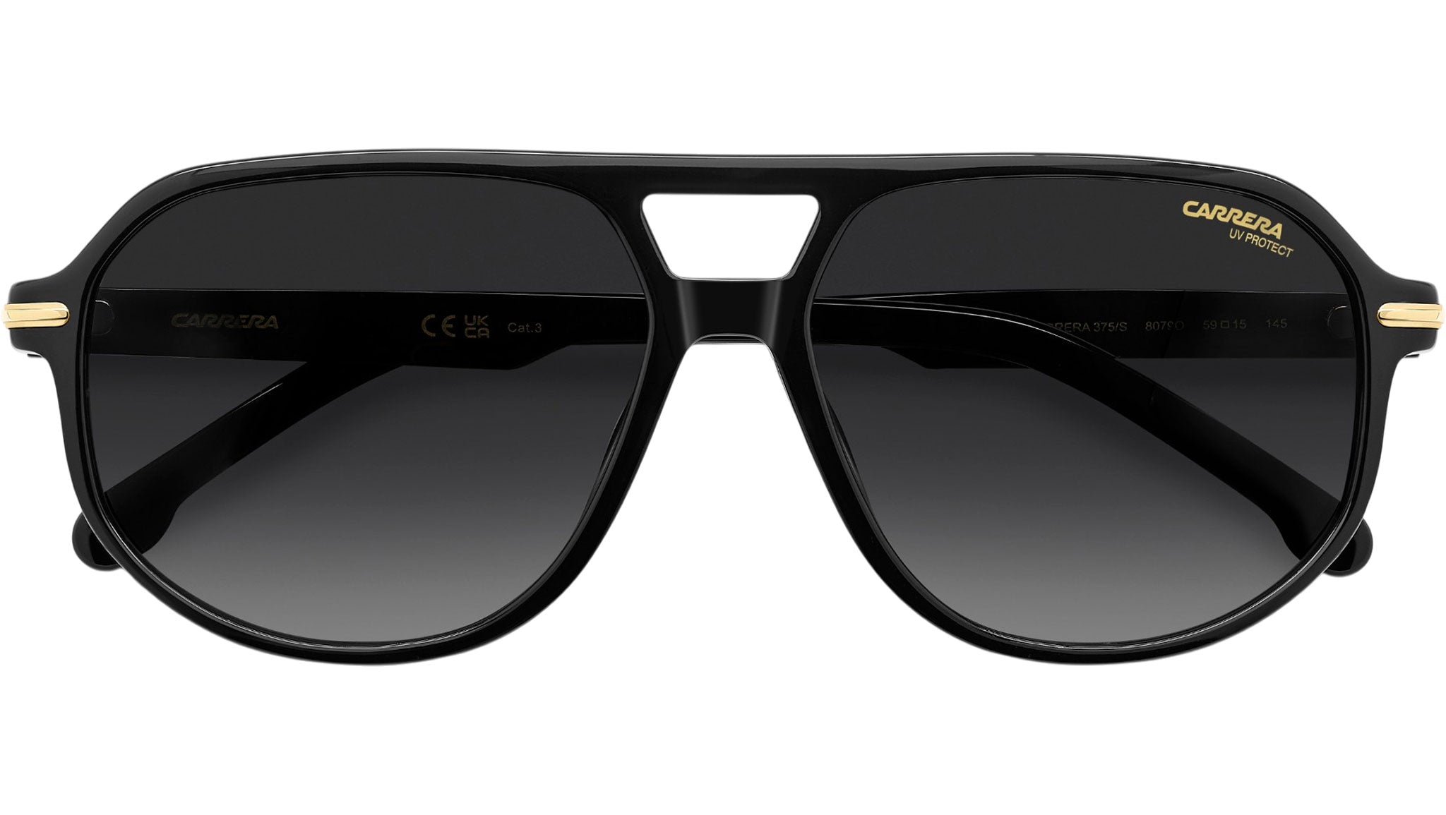 Occhiali da sole Carrera 375/S 807 9O uomo con montatura aviatore in acetato nero e lenti demo. Linea: Signature. Codice modello: 208706. Codice colore: 807 9O. Rivenditore autorizzato Carrera online. Gli occhiali vengono consegnati con custodia e accessori originali e sono coperti dalla garanzia ufficiale di 12 mesi del produttore.