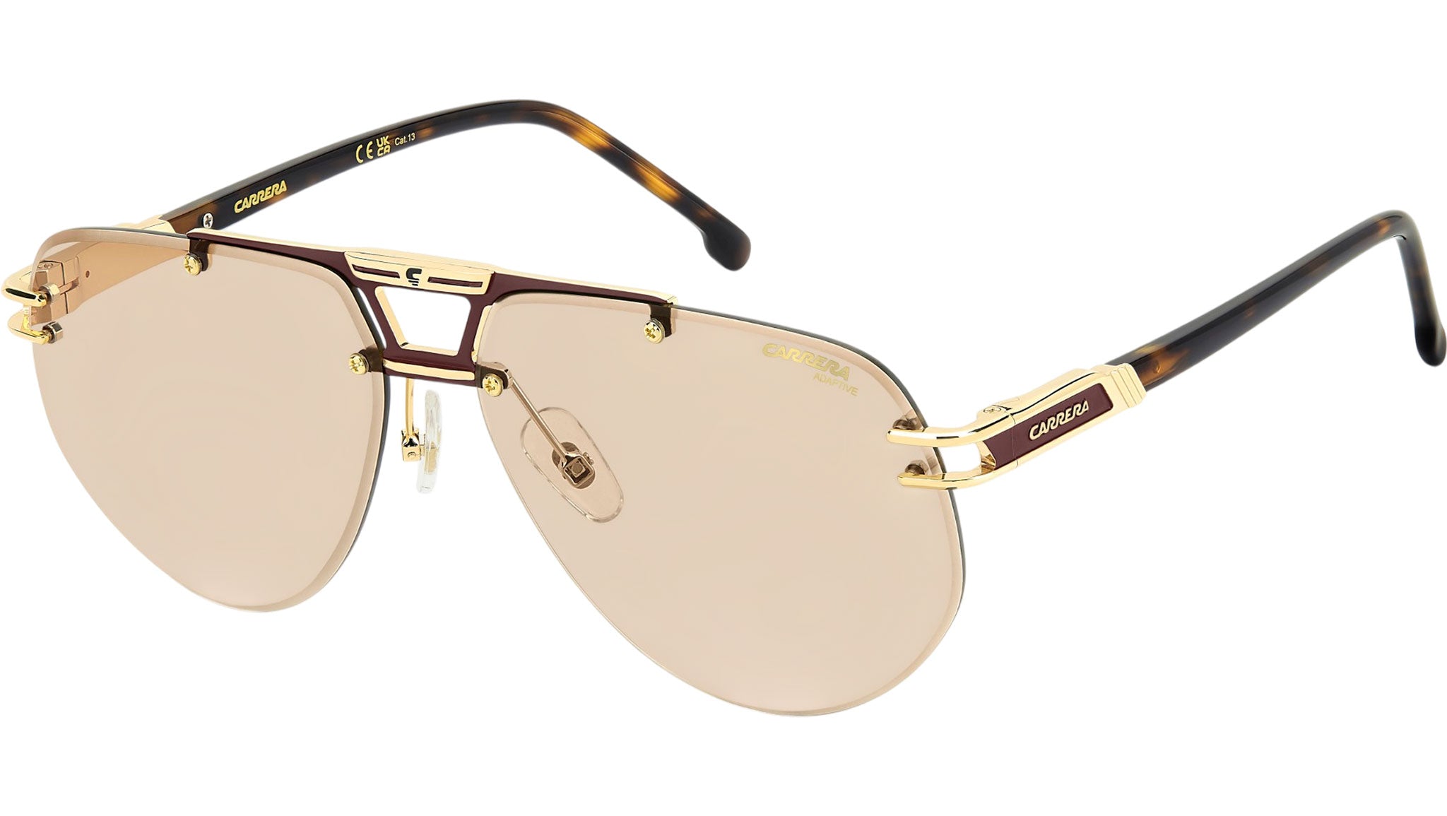 Occhiali da sole Carrera 1087/S 06J II uomo con montatura rettangolare in metallo oro avana e lenti demo. Linea: Flag. Codice modello: 208715. Codice colore: 06J II. Rivenditore autorizzato Carrera online. Gli occhiali vengono consegnati con custodia e accessori originali e sono coperti dalla garanzia ufficiale di 12 mesi del produttore.