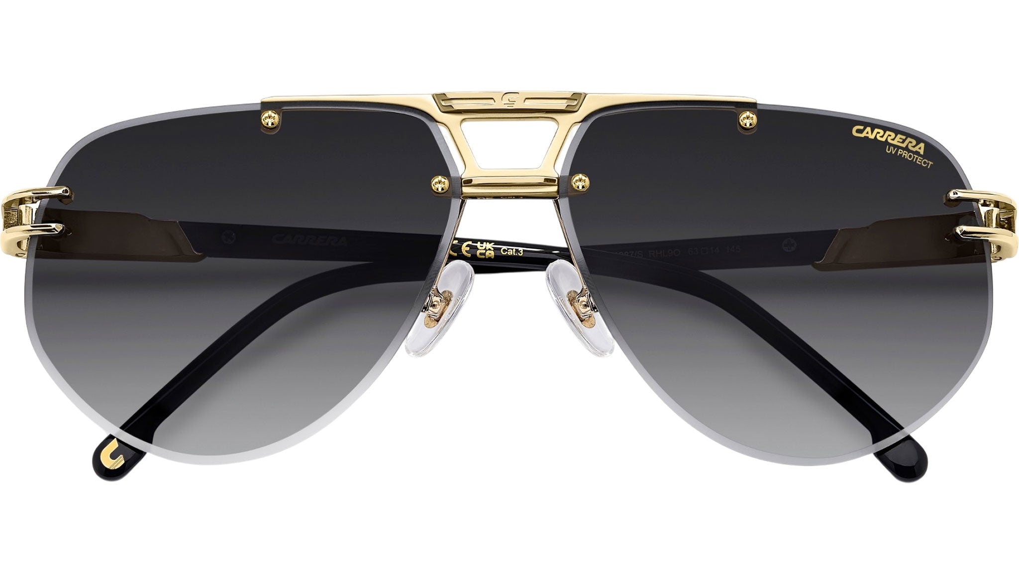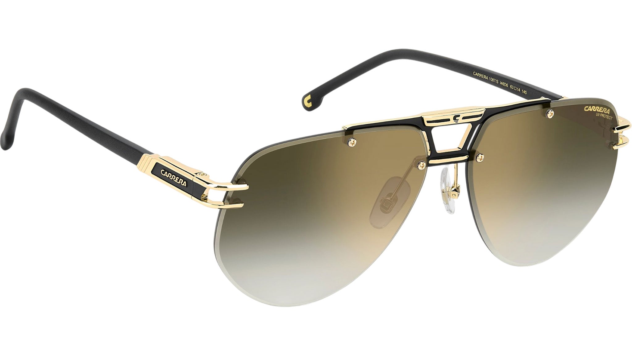 Occhiali da sole Carrera 1087/S I46 D6 uomo con montatura rettangolare in metallo nero opaco oro e lenti demo. Linea: Flag. Codice modello: 208715. Codice colore: I46 D6. Rivenditore autorizzato Carrera online. Gli occhiali vengono consegnati con custodia e accessori originali e sono coperti dalla garanzia ufficiale di 12 mesi del produttore.