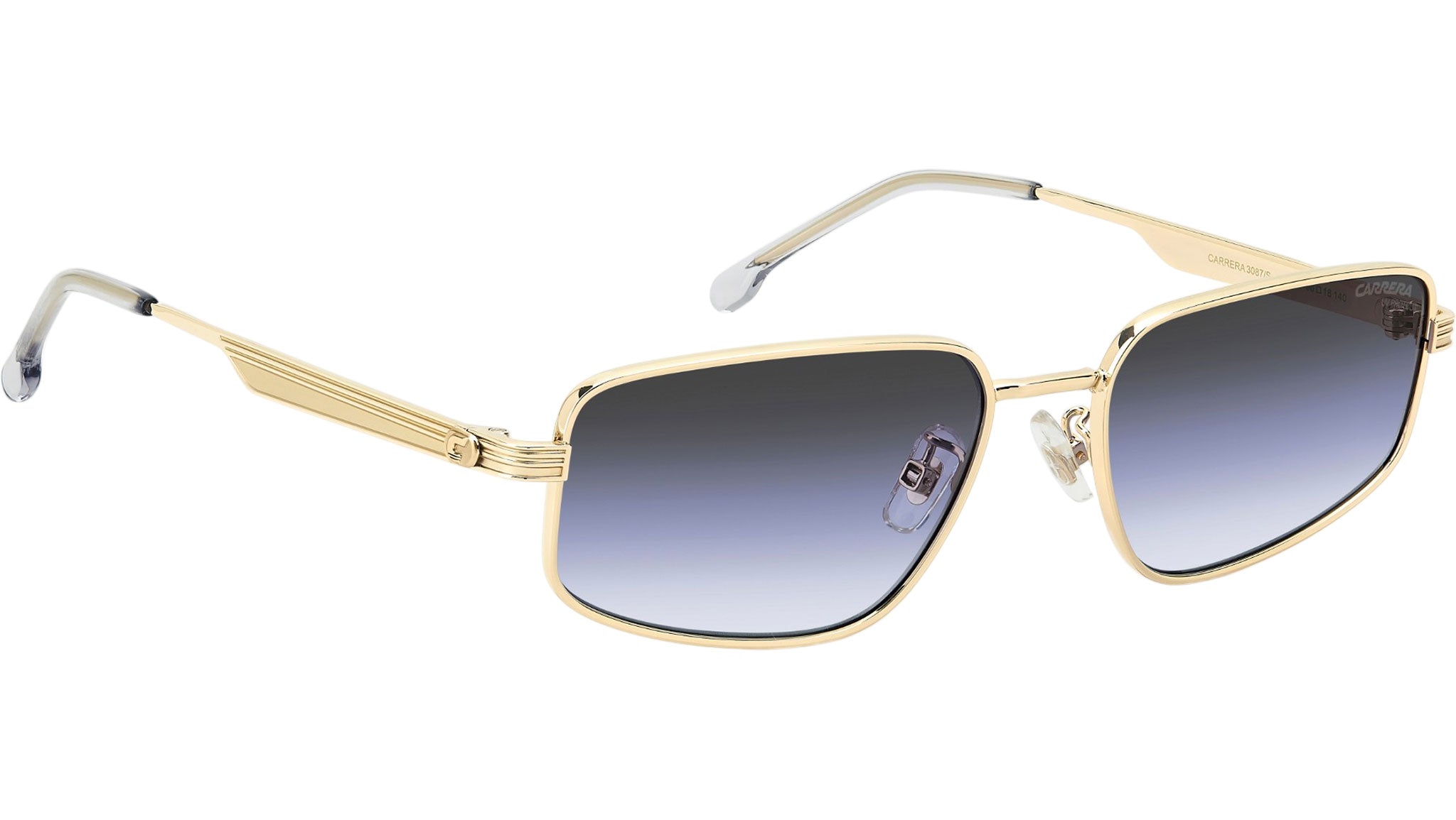 Occhiali da sole Carrera 3087/S J5G GB donna con montatura rettangolare in metallo oro e lenti demo. Linea: Signature. Codice modello: 208733. Codice colore: J5G GB. Rivenditore autorizzato Carrera online. Gli occhiali vengono consegnati con custodia e accessori originali e sono coperti dalla garanzia ufficiale di 12 mesi del produttore.