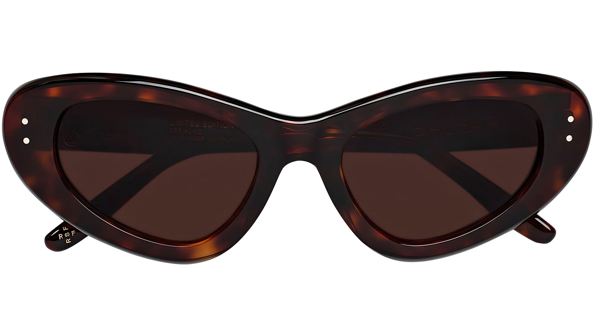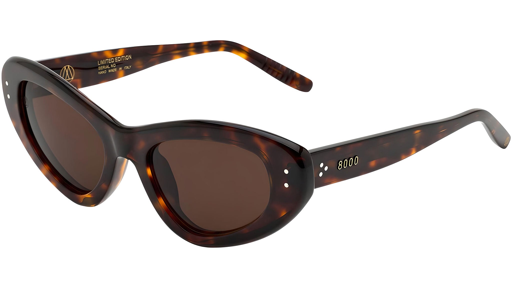 Creato per il marchio italo-americano di alta gamma Ottomila, Baleari è un occhiale da sole dalla silhouette giocosa che cattura lo stile iconico degli anni '80. Riletta per una sensibilità moderna più decisa, questa forma ovale cat-eye ha una montatura spessa che enfatizza la sua materialità e la forma scolpita con cura. Pur mantenendo un carattere giocoso, Baleari vanta le finiture di lusso distintive di Ottomila, come il logo metallico e i rivetti realizzati a mano. Questa versione è realizzata in acetato Havana vibrante con lenti marroni. Disponibile nella misura R, con larghezza lente di 55 mm e lunghezza delle aste di 145 mm. Codice prodotto: R2F.