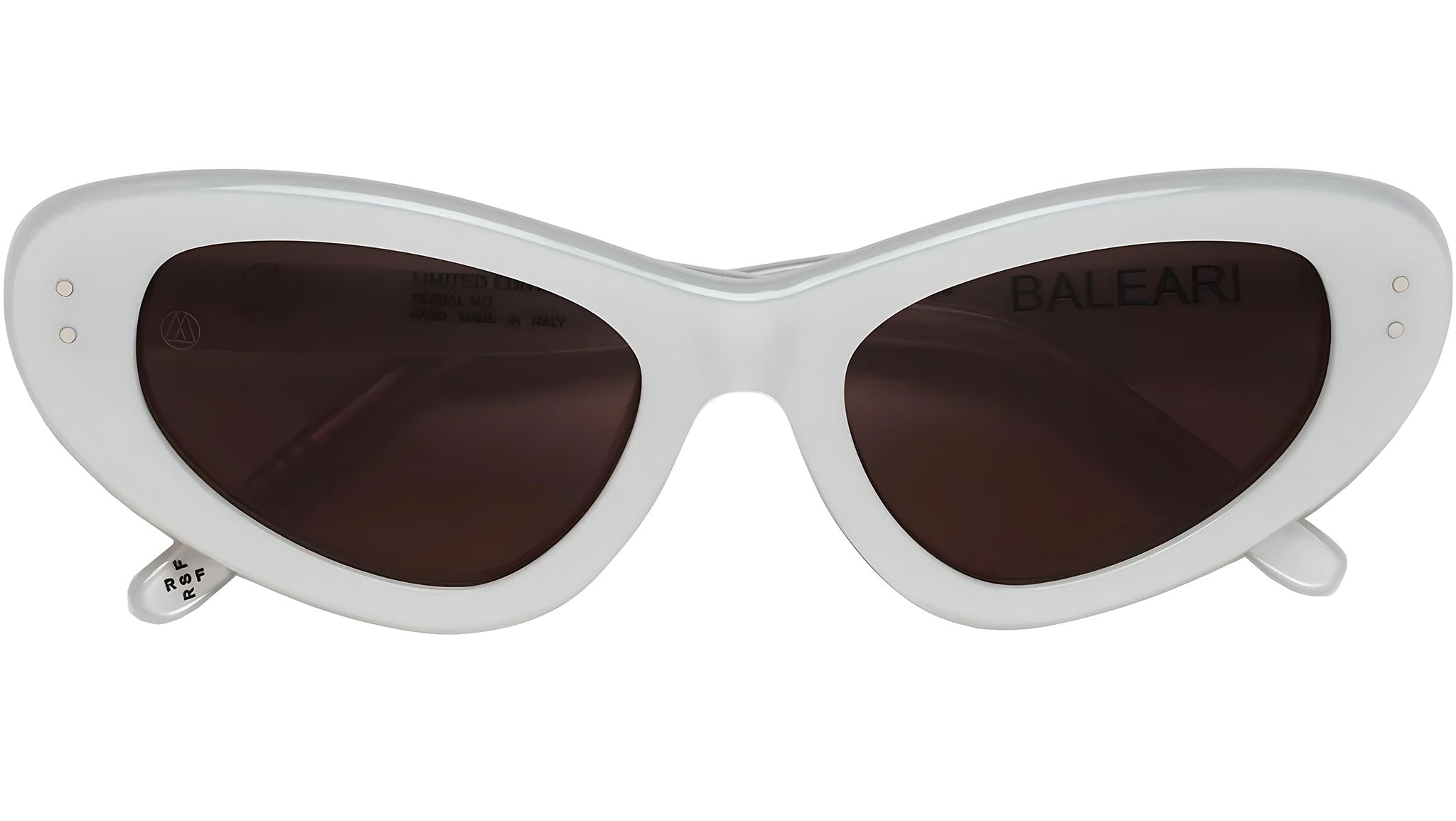 Creato per il marchio italo-americano di alta gamma Ottomila, Baleari è un occhiale da sole dalla silhouette giocosa che cattura lo stile iconico degli anni '80. Riletta per una sensibilità moderna più decisa, questa forma ovale cat-eye ha una montatura spessa che enfatizza la sua materialità e la forma scolpita con cura. Pur mantenendo un carattere giocoso, Baleari vanta le finiture di lusso distintive di Ottomila, come il logo metallico e i rivetti realizzati a mano. Questa versione è realizzata in acetato bianco perla con finitura lucida e lenti colorate vivaci. Disponibile nella misura R, con larghezza lente di 55 mm e lunghezza delle aste di 145 mm. Codice prodotto: VE0.