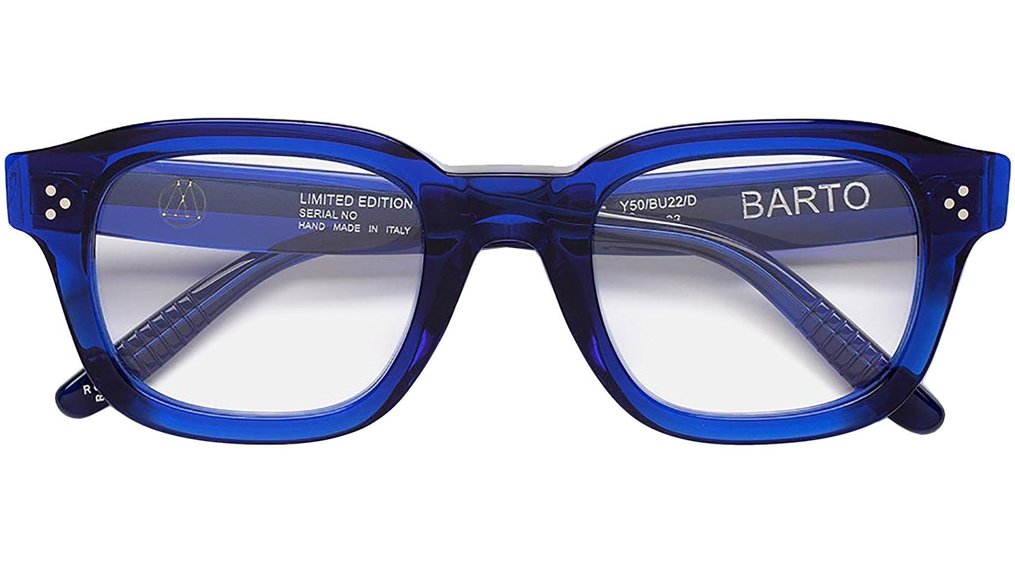 Barto ha una montatura angolare senza tempo, ispirata al glamour audace del cinema degli anni '50. Questo occhiale essenziale si distingue per le geometrie accuratamente definite, un frontale robusto con bordi scolpiti e aste modellate. Progettato come una versione raffinata delle classiche montature squadrate, Barto è realizzato in un acetato blu intenso che rivela dettagli sofisticati nel nucleo metallico. Dimensioni: larghezza lenti 51 mm, lunghezza aste 145 mm, codice prodotto Y50.