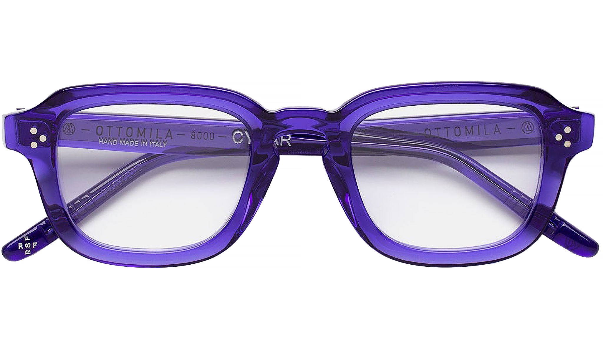 Creata per il marchio di occhiali di lusso Ottomila, Cynar ha una silhouette senza tempo che cattura l'estetica del cinema italiano degli anni '50 e '60. Una montatura squadrata e maschile per occhiali che richiamano lo stile geometrico e deciso indossato da Marcello Mastroianni. Il modello presenta bordi spessi, scolpiti sui lati per garantire leggerezza e comfort, evidenziando l'eccezionale artigianato italiano. Le lenti larghe assicurano una vestibilità comoda e funzionale. Questa versione di Cynar è realizzata in acetato traslucido viola profondo, il cui effetto traslucido mette in risalto il nucleo metallico personalizzato con decorazioni ispirate ai motivi di Frank Lloyd Wright presenti nelle aste