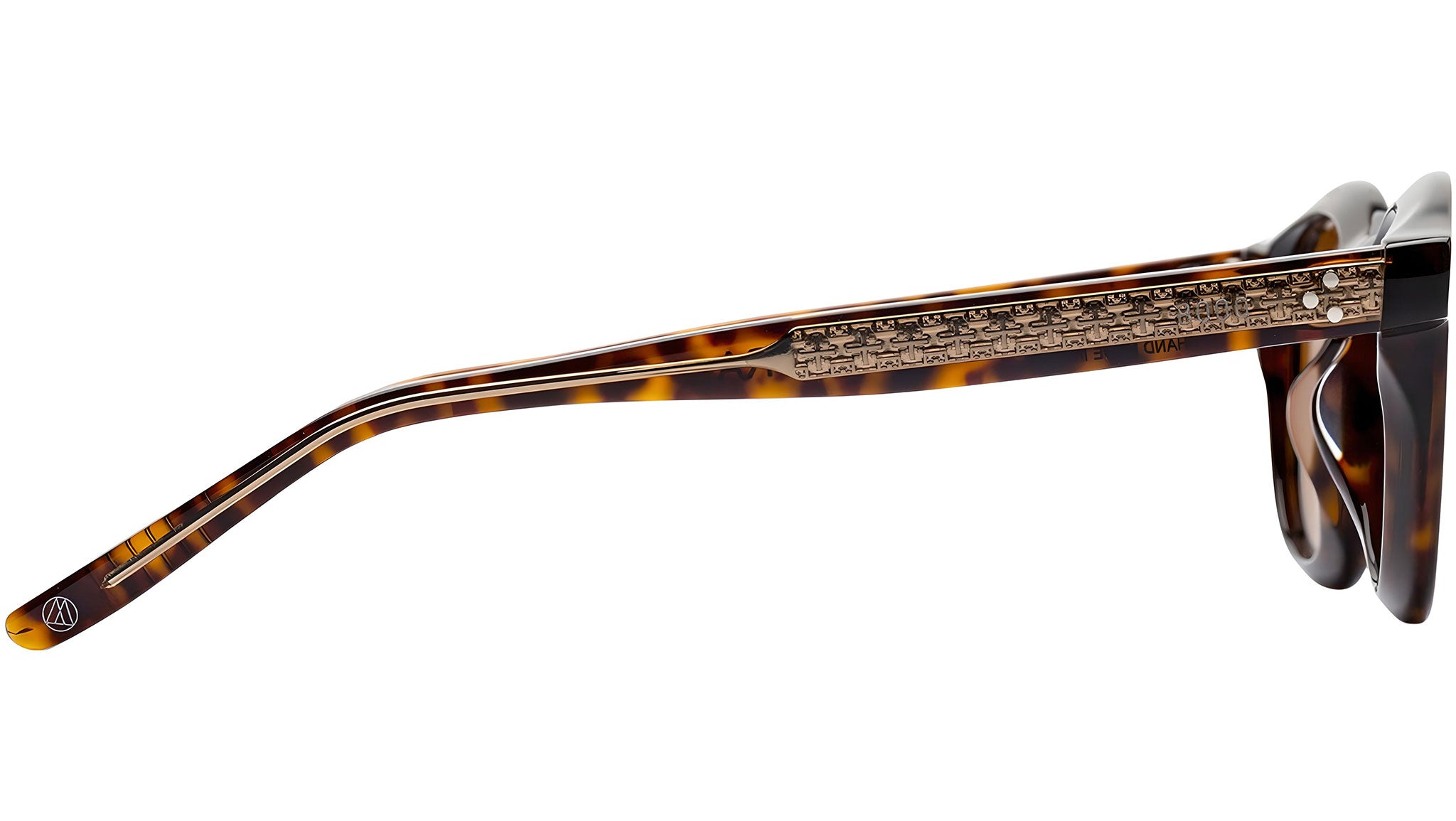Ombra Tabacco è un pezzo senza tempo creato per Ottomila, marchio di alta gamma noto per il suo approccio meticoloso al design e alla lavorazione. Questa montatura è una reinterpretazione contemporanea delle classiche silhouette degli anni '50, caratterizzata da un ponte nasale a chiave e lenti rotonde. Le sue linee curve sono realizzate in acetato italiano spesso e resistente, scolpito sui lati per rivelare bordi geometrici precisi. Dettagli metallici minuti e incisioni completano l'opera. Questa versione è dotata di lenti fumo vulcaniche e di un acetato semitrasparente verde scuro che mette in risalto il nucleo metallico personalizzato, decorato con il motivo di Frank Lloyd Wright sulle aste. Disponibile nella misura R con larghezza lente di 48 mm e lunghezza aste di 145 mm. Codice prodotto: M4I.