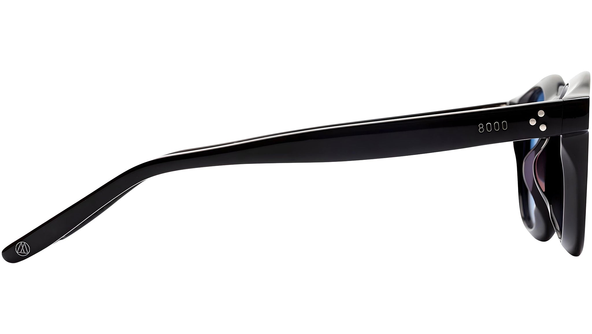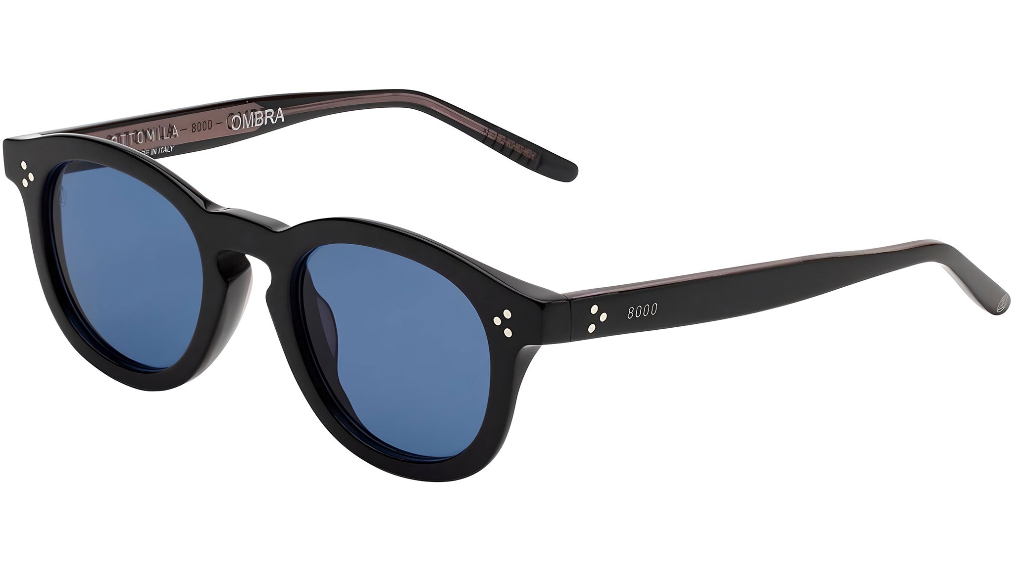 Ombra Tuxedo è un pezzo senza tempo creato per Ottomila, marchio di alta gamma noto per il suo approccio meticoloso al design e alla lavorazione. Questo modello è una reinterpretazione contemporanea delle silhouette classiche degli anni '50, caratterizzato da un ponte nasale a chiave e lenti rotonde. Le sue montature curve sono realizzate in acetato italiano spesso e resistente, scolpito sui lati per rivelare bordi geometrici precisi. Dettagli metallici minuti e incisioni completano il design. Questa versione è realizzata in acetato nero lucido con lenti azzurre scure. Disponibile nella misura R con larghezza lente di 48 mm e lunghezza aste di 145 mm. Codice prodotto: 8ZM.